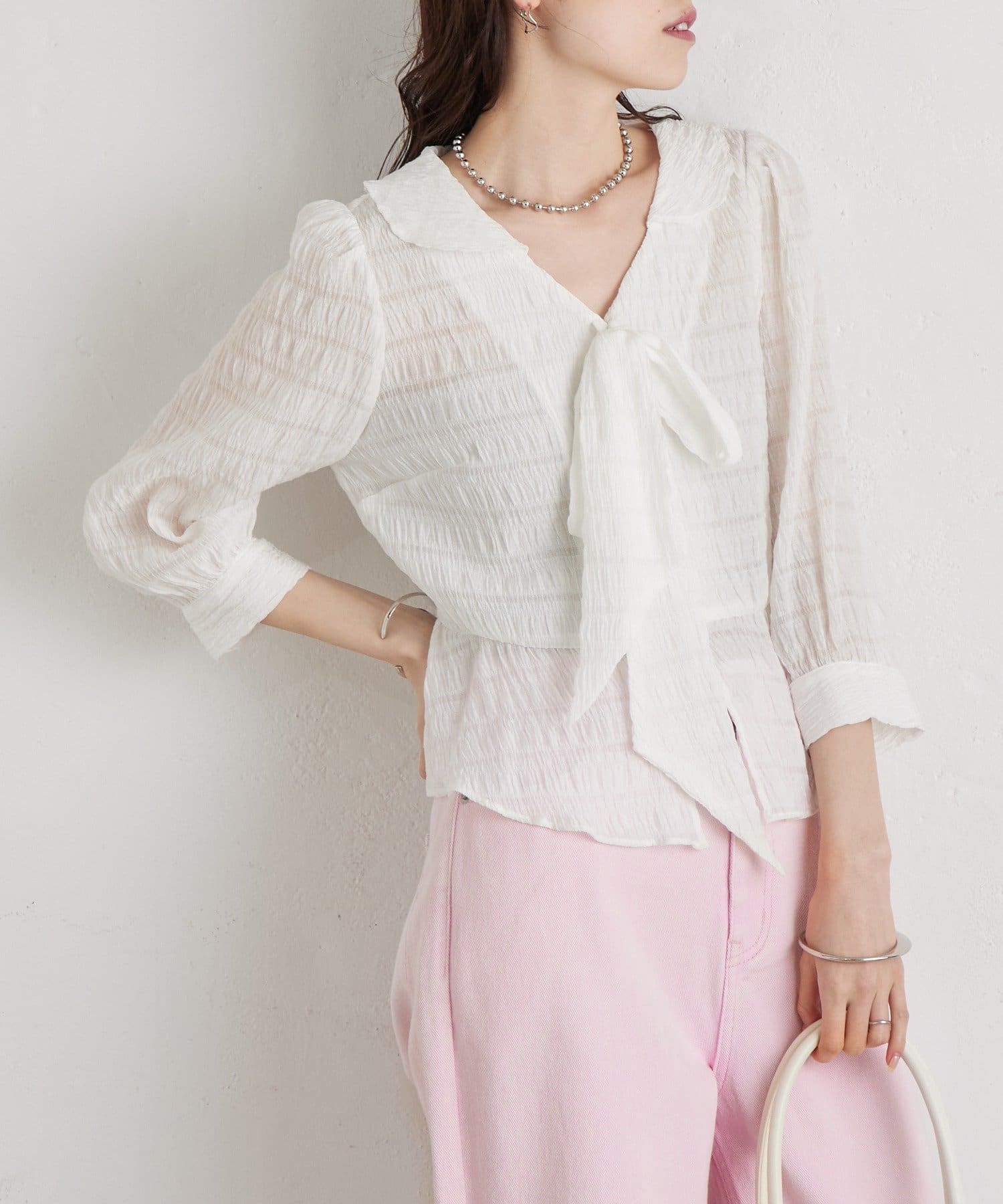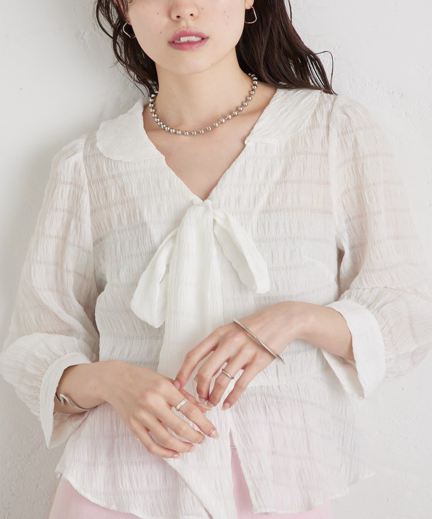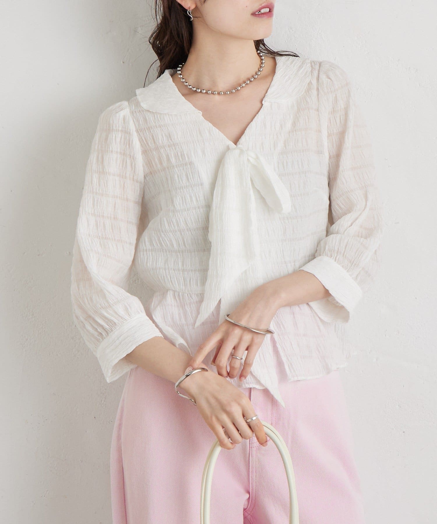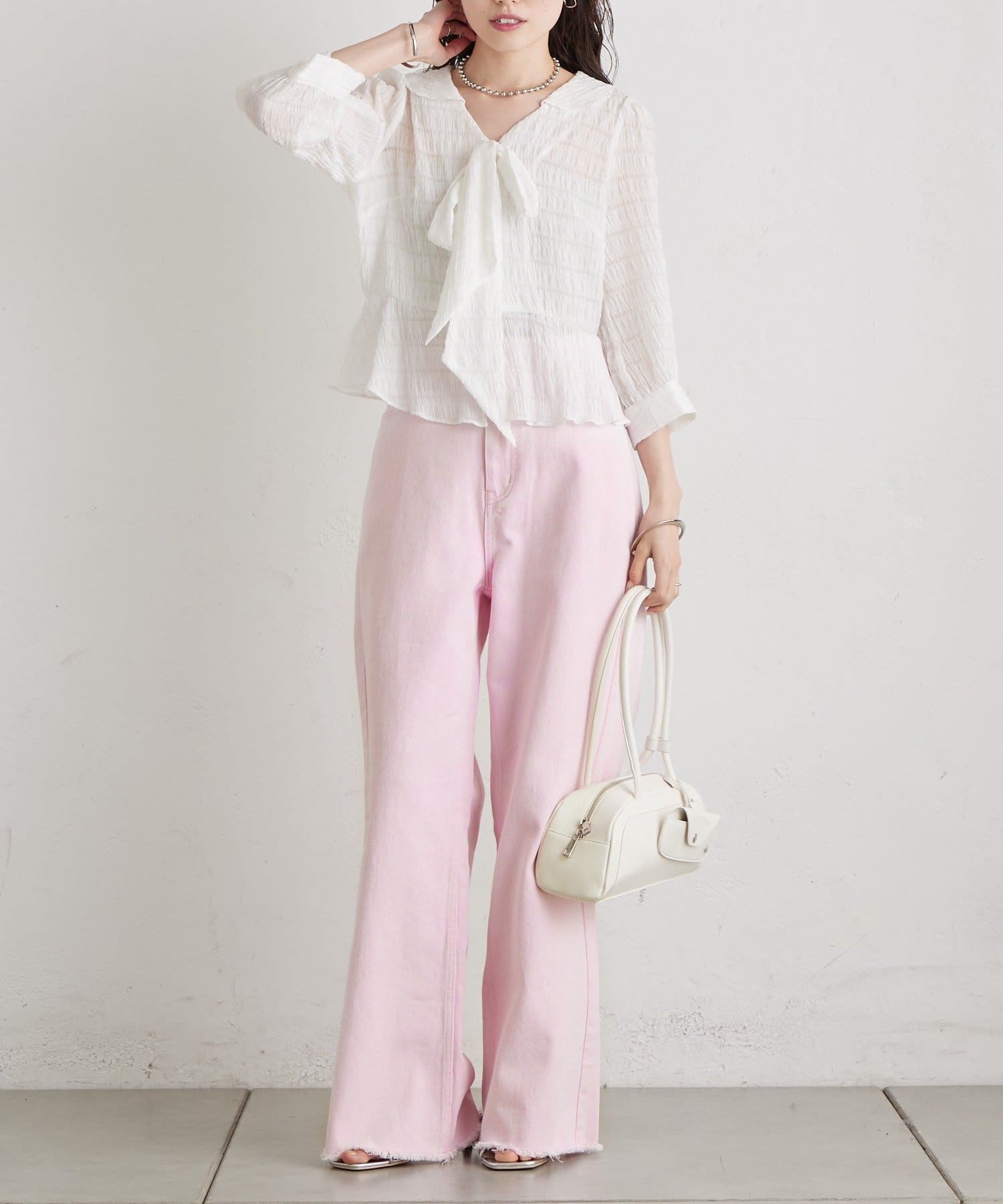 ・襟付きで甘さの中にきちんと感もプラスされ、様々なスタイリングに対応できるアイテムです。