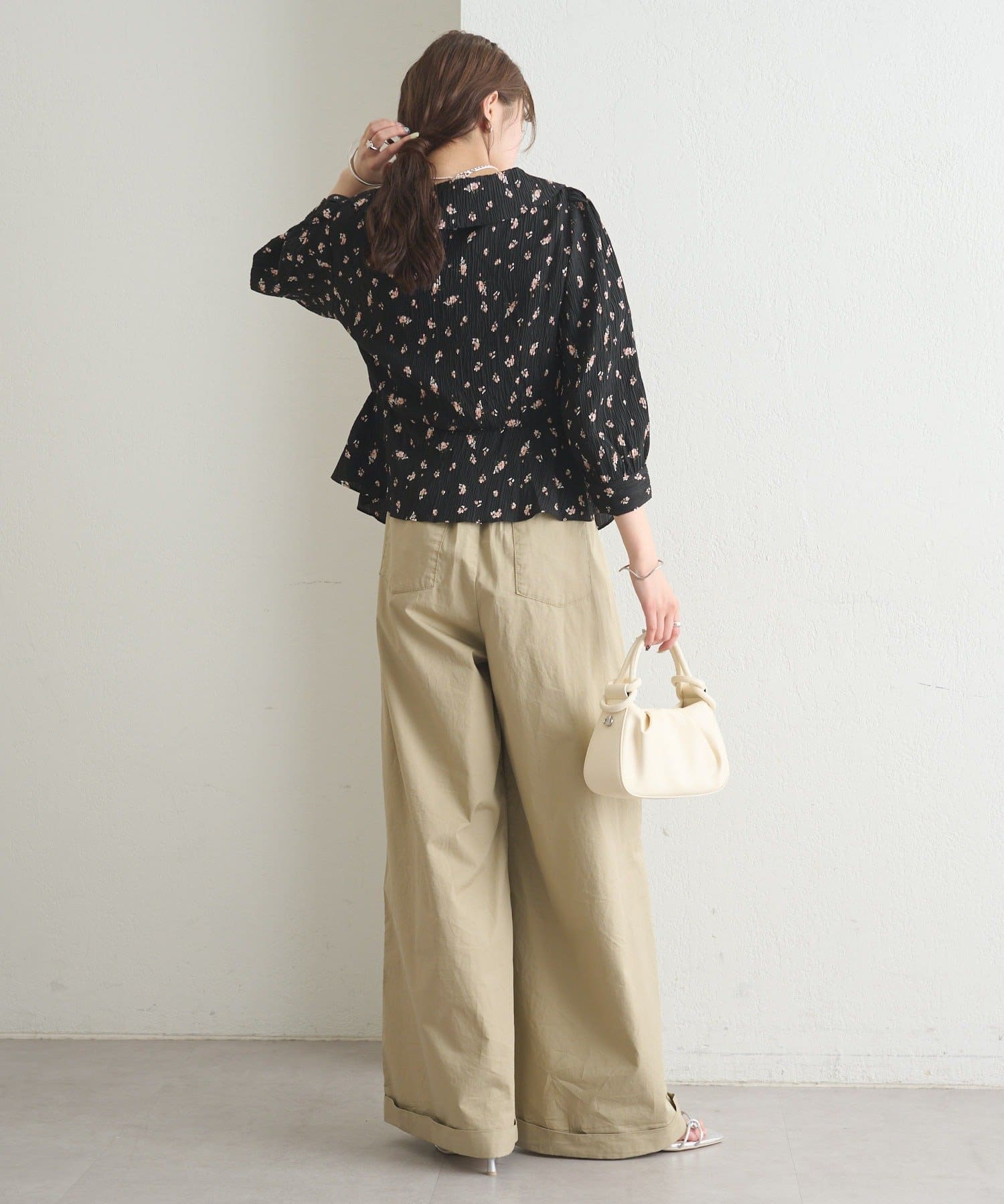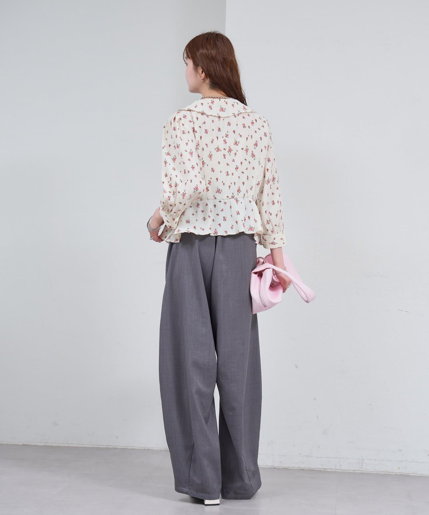 パフスリーブが柔らかなボリューム感をプラスし、印象的なシルエットに。