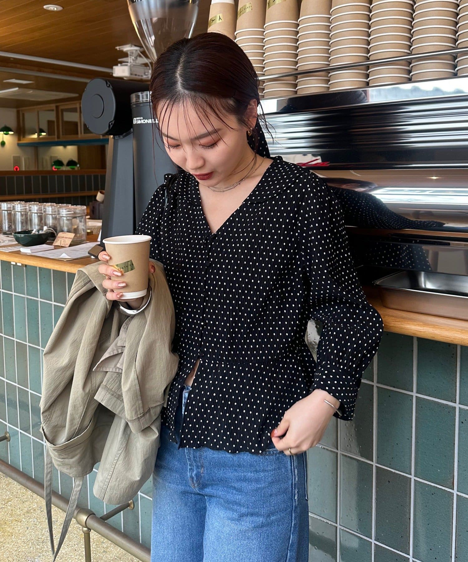 ペプラムデザインで丈が長すぎず、小柄な私でもバランス良く着られます。