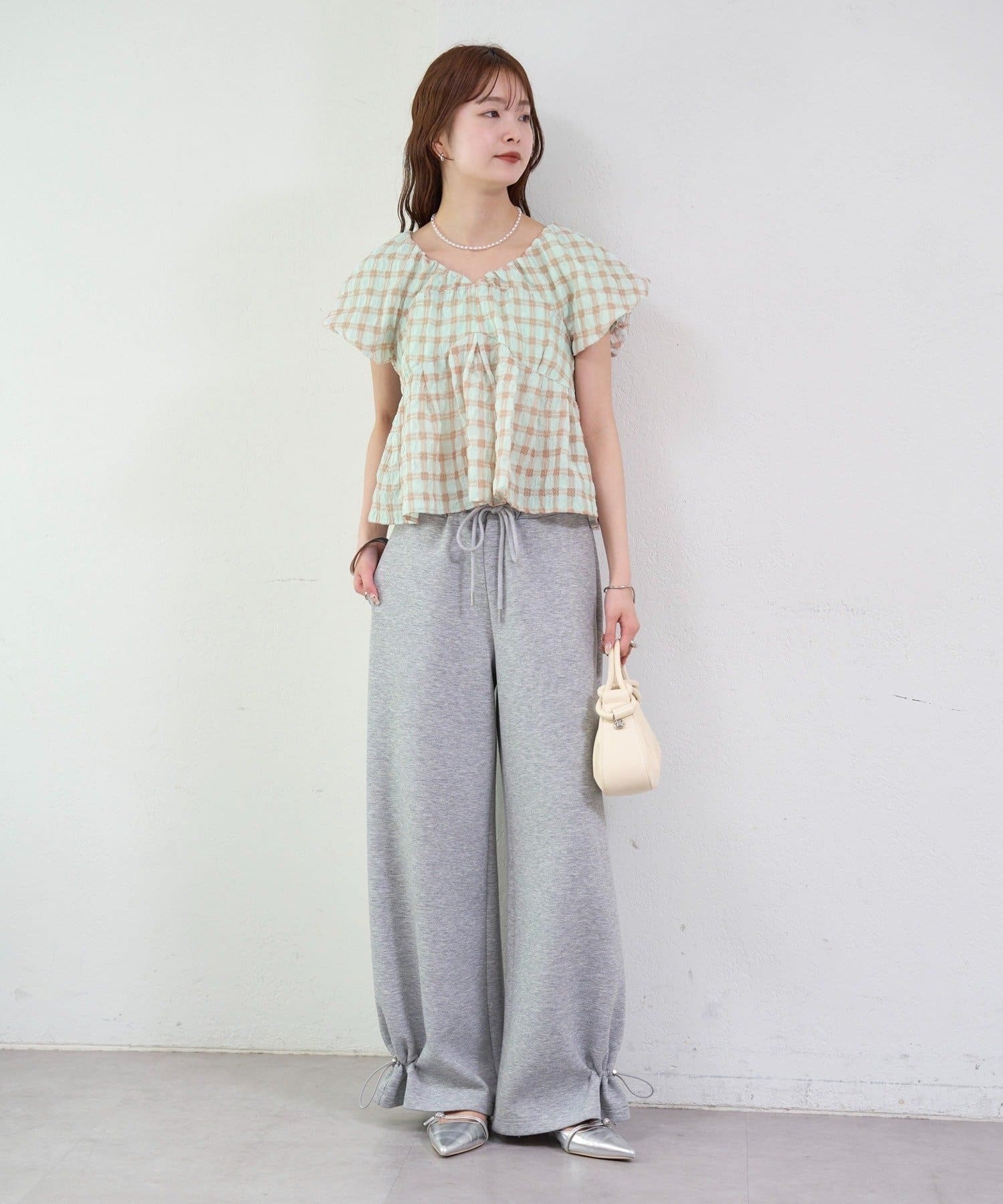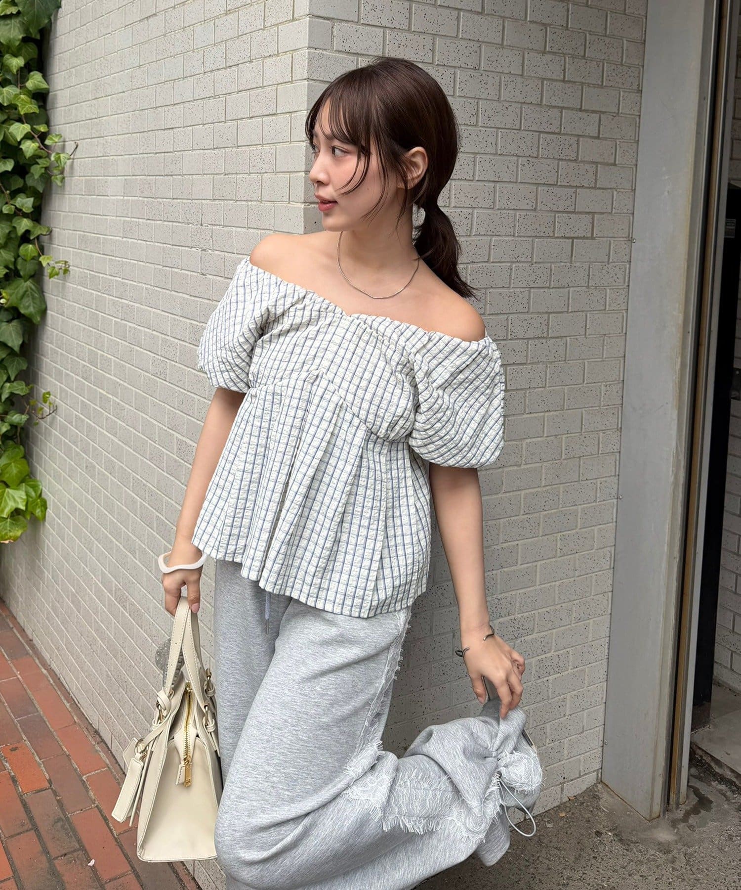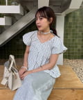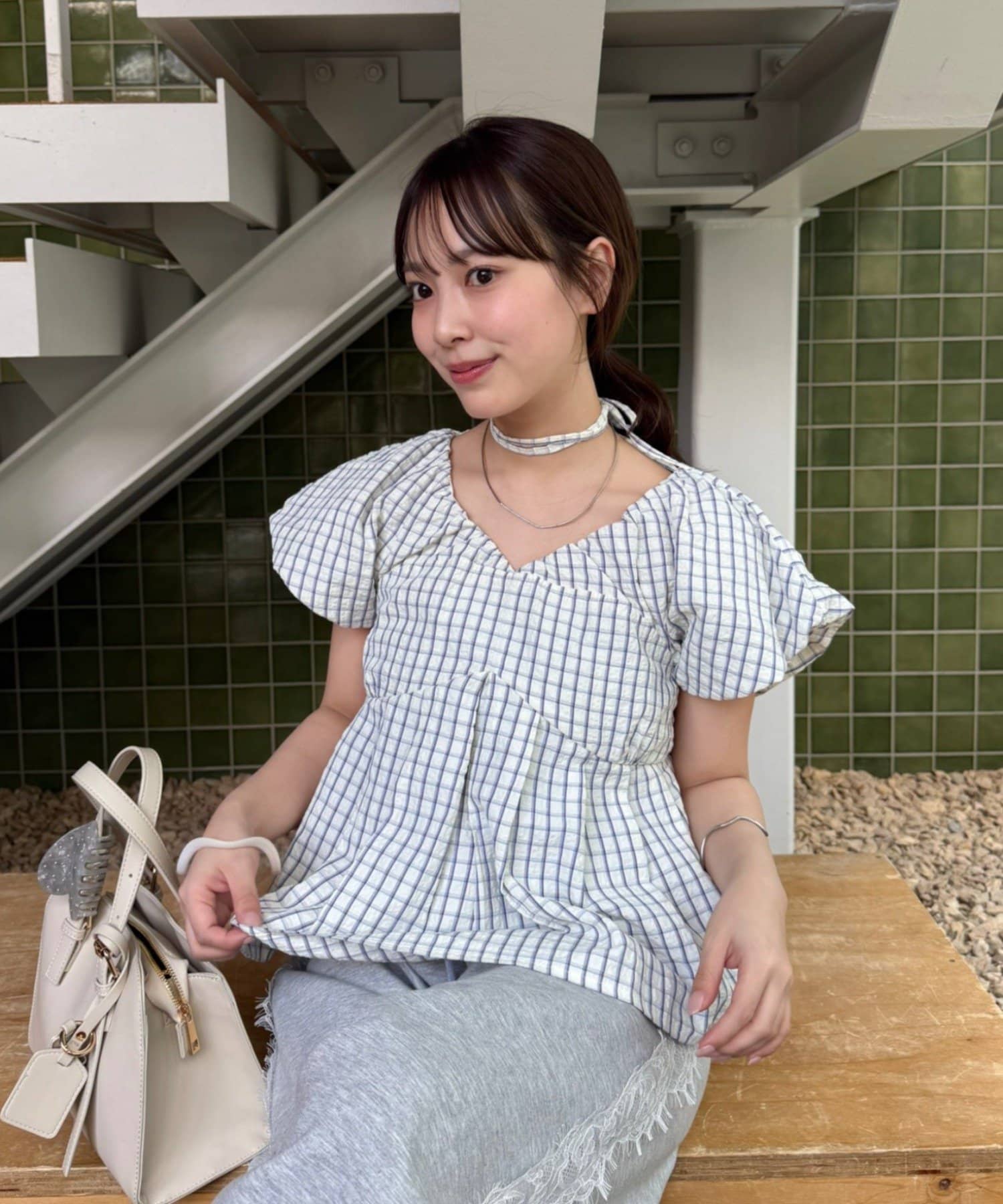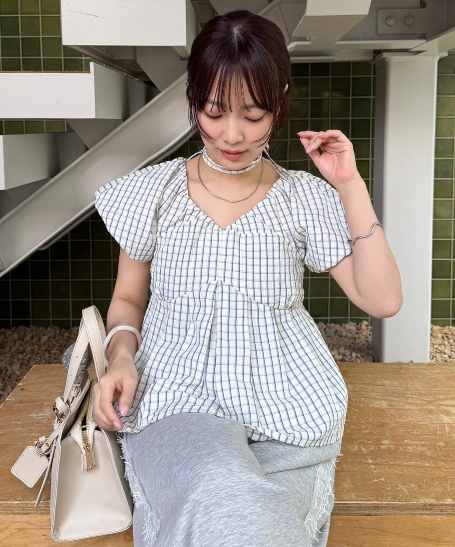 《@sktnnmセレクト/BLU》【4/2(THU) 12:00予約START】チェックパフブラウス