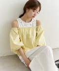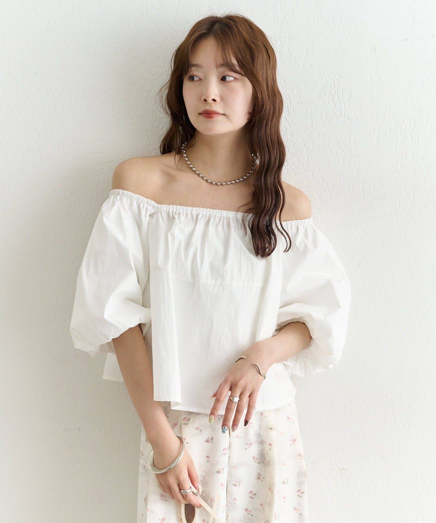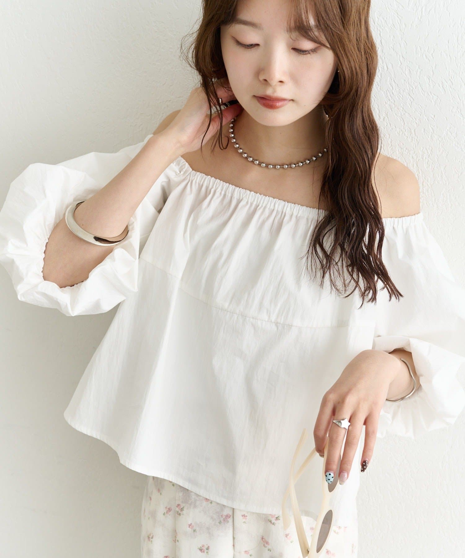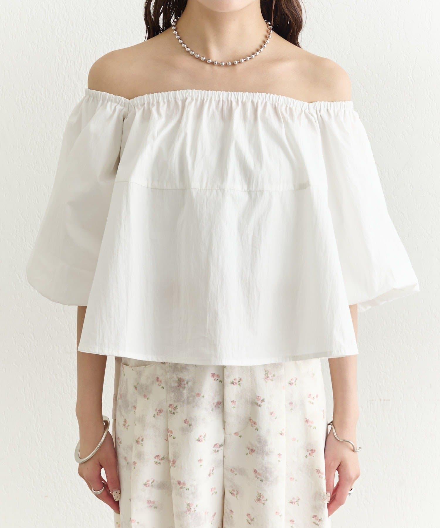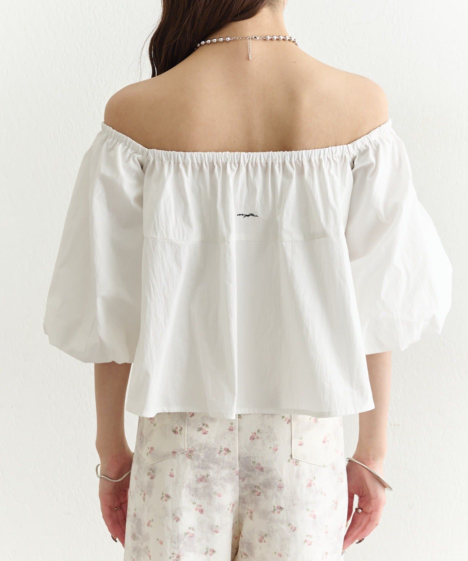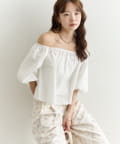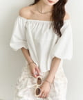 バルーンシルエットのふんわり袖が可愛いオフショルブラウス