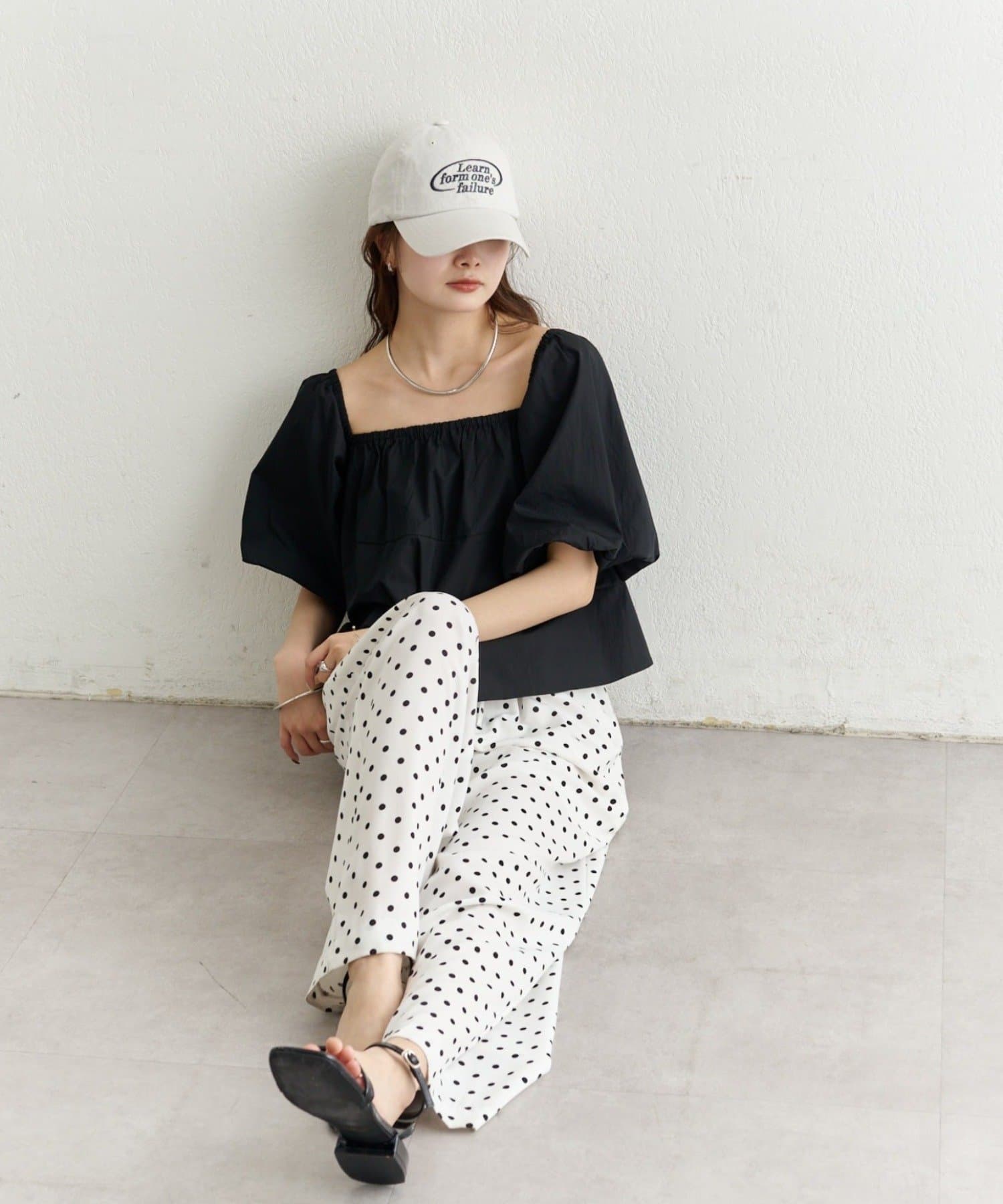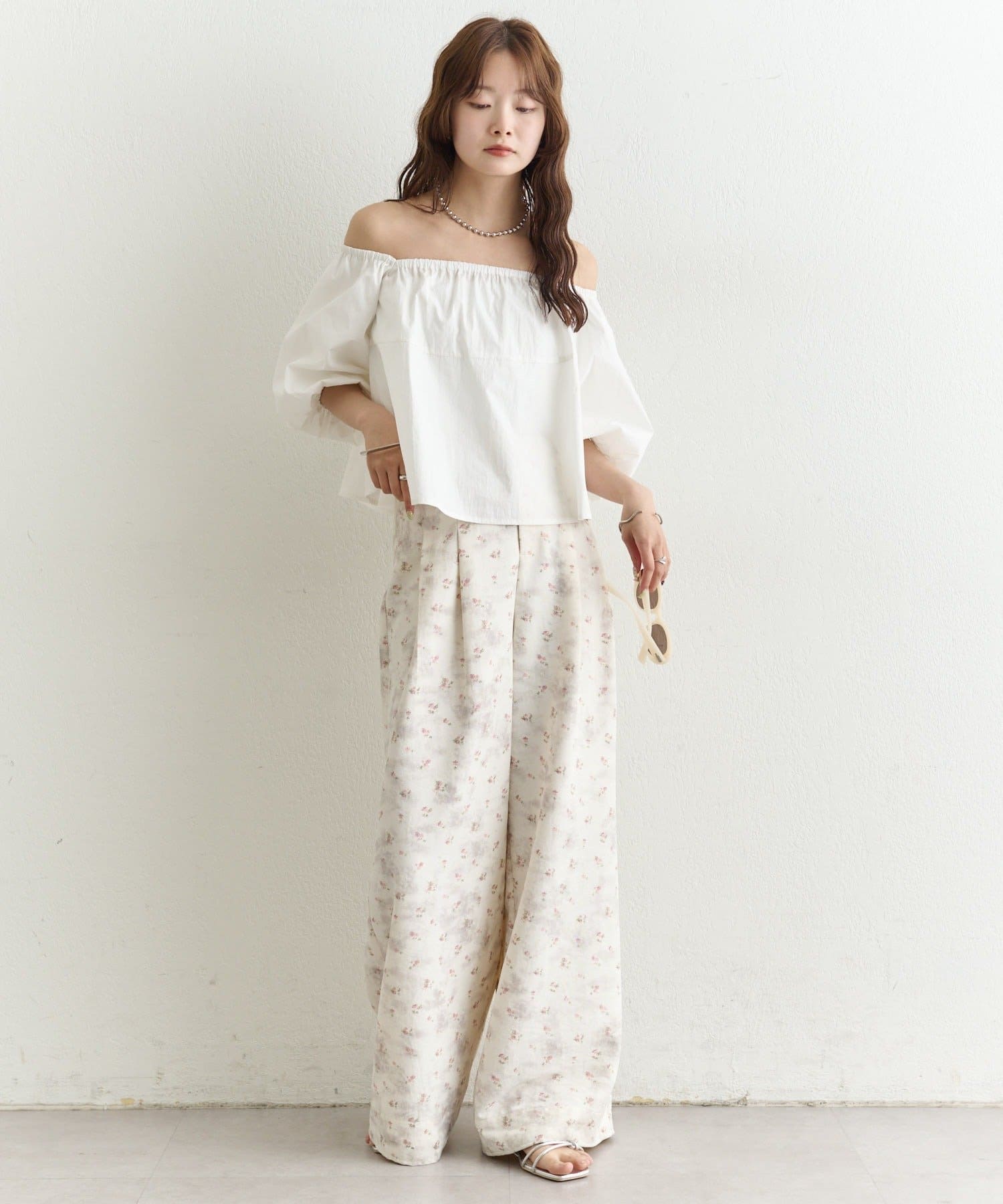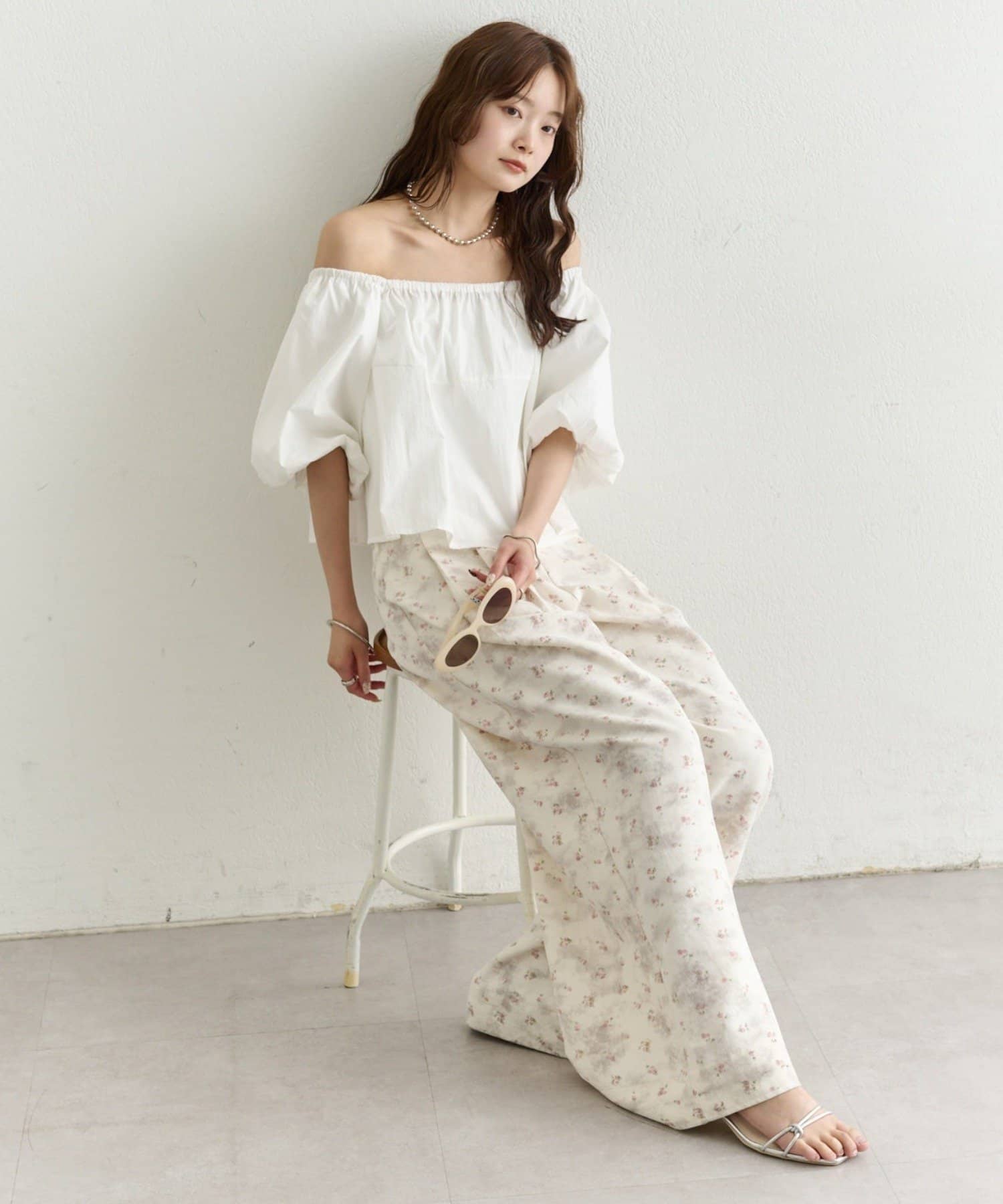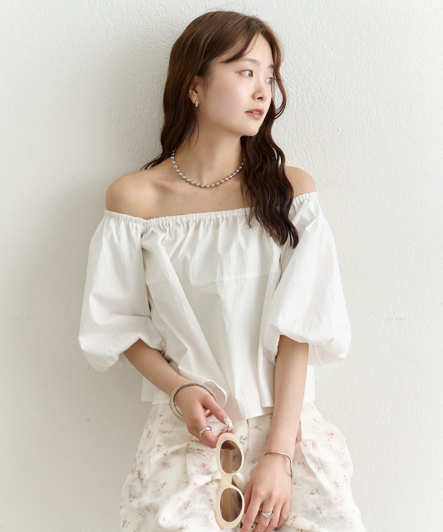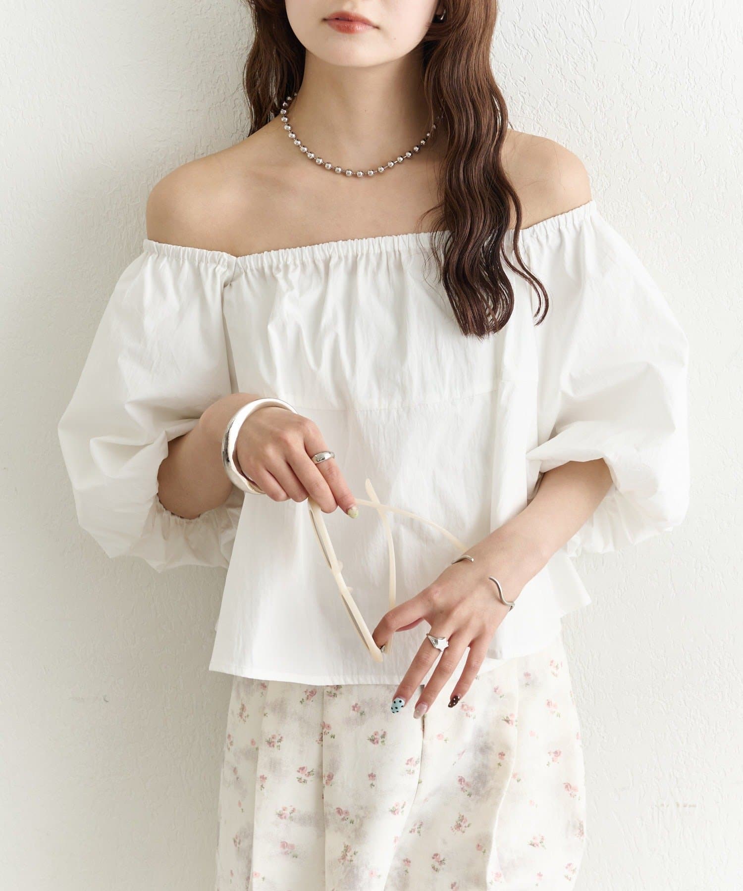バルーンシルエットのふんわり袖が可愛いオフショルブラウス