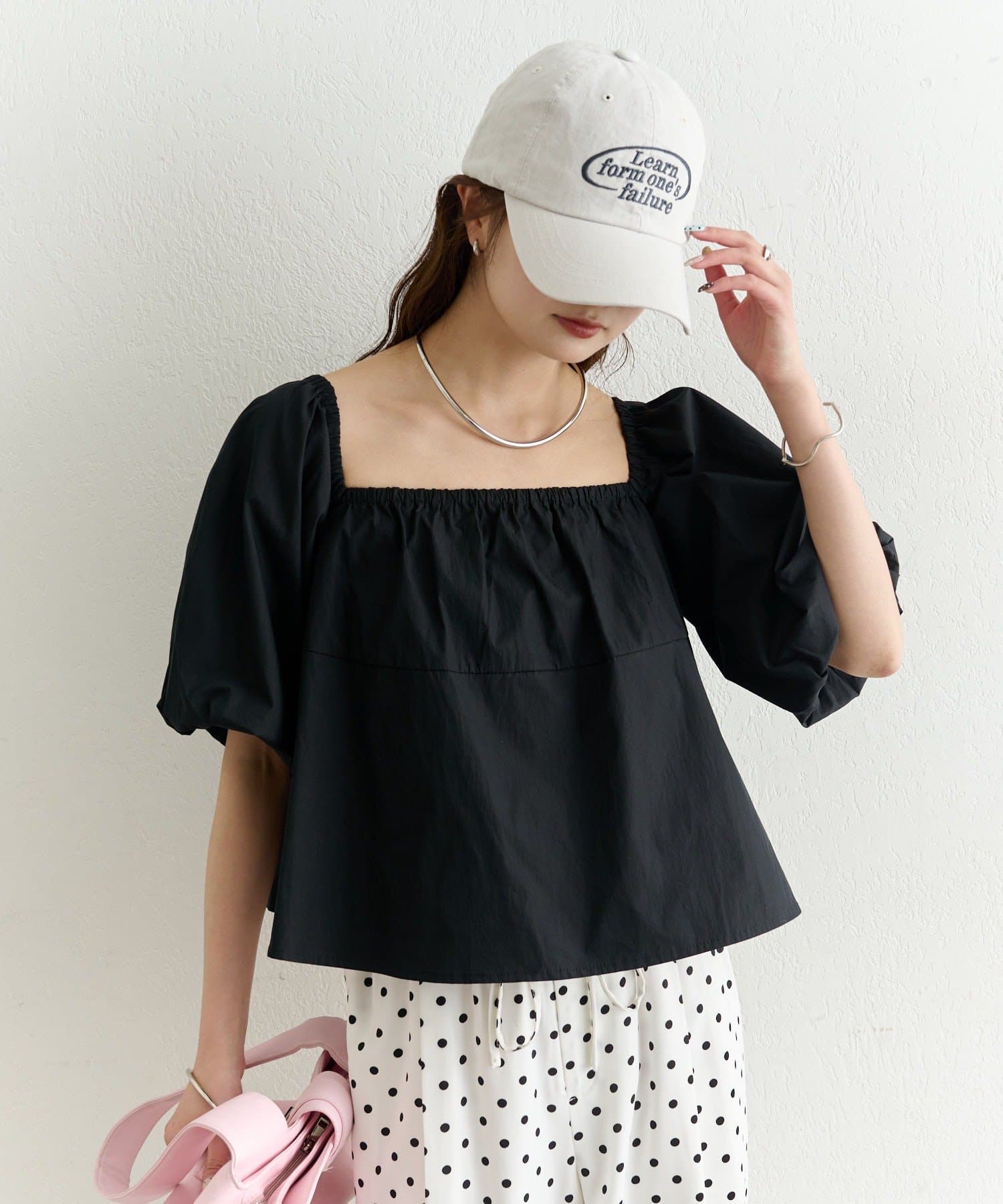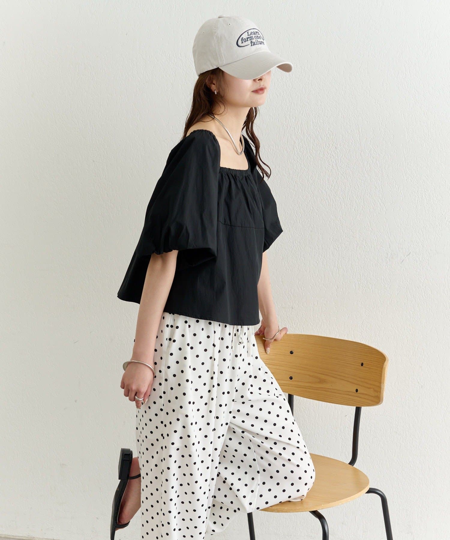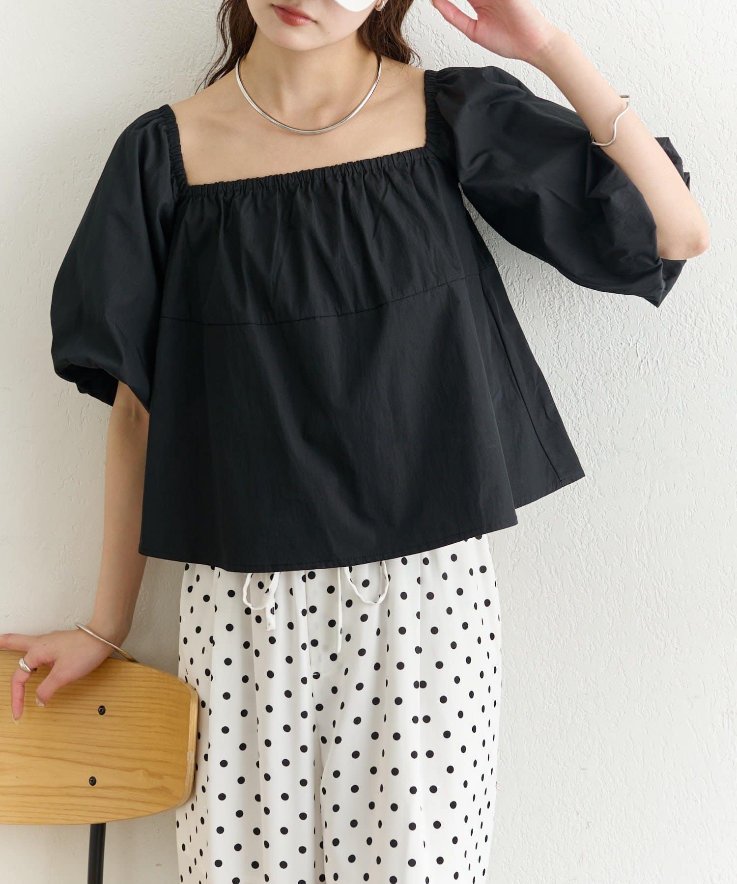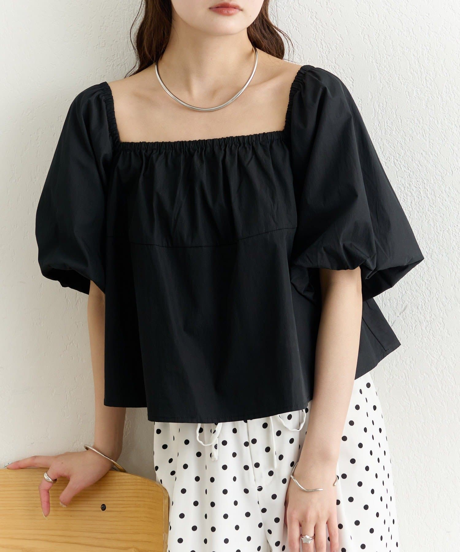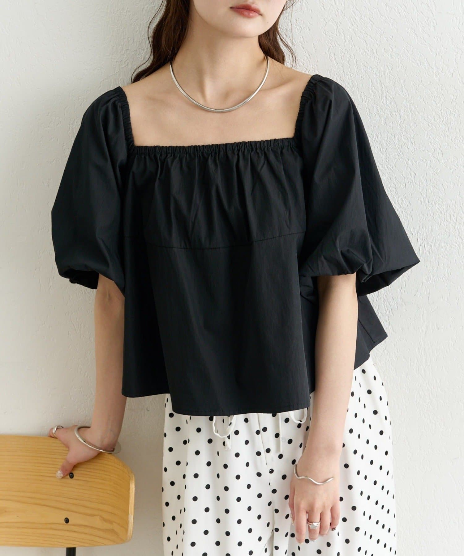 ・胸元はギャザー入りで、ふんわりとした立体的なシルエットに。