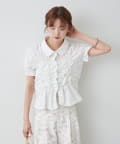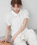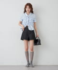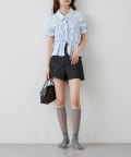 ・ミニボトムと合わせて、フェミニンさをプラスしたスタイリングにも。