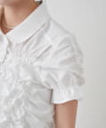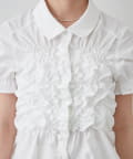 ・全体的に施されたシャーリングデザインが、立体感と華やかさを演出してくれます。