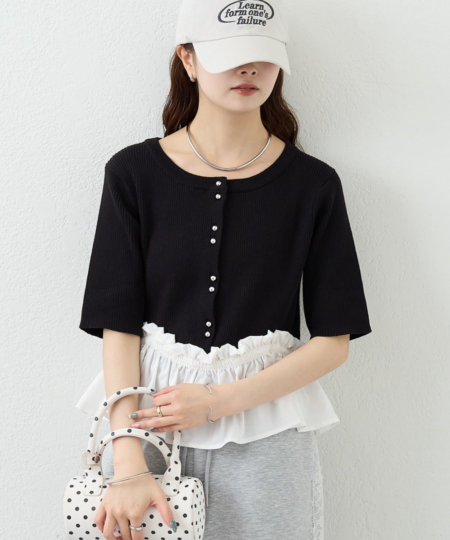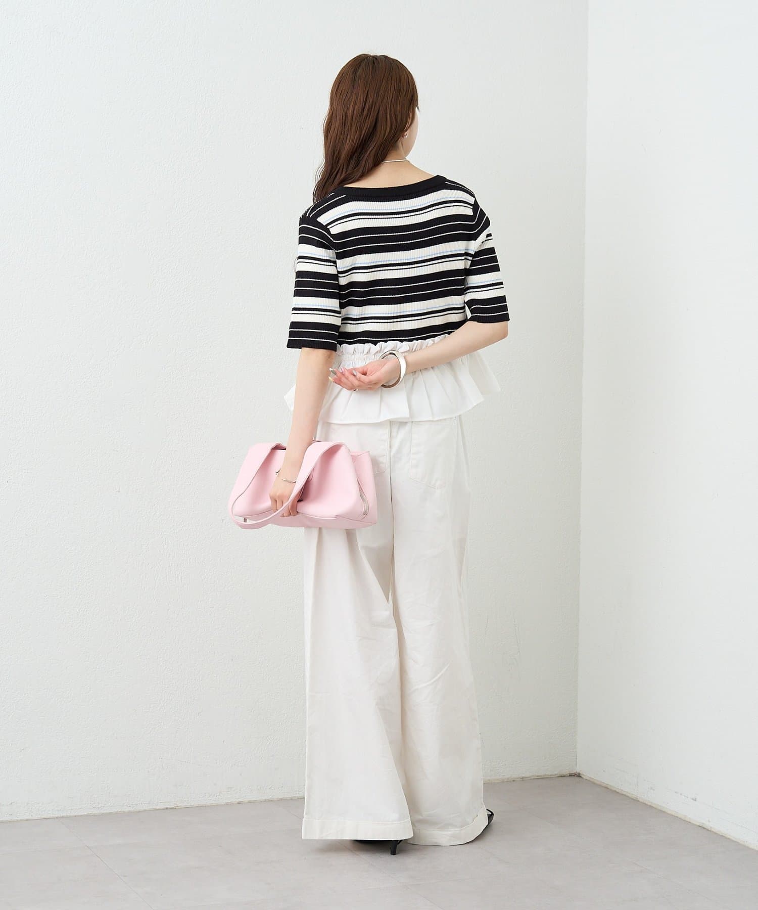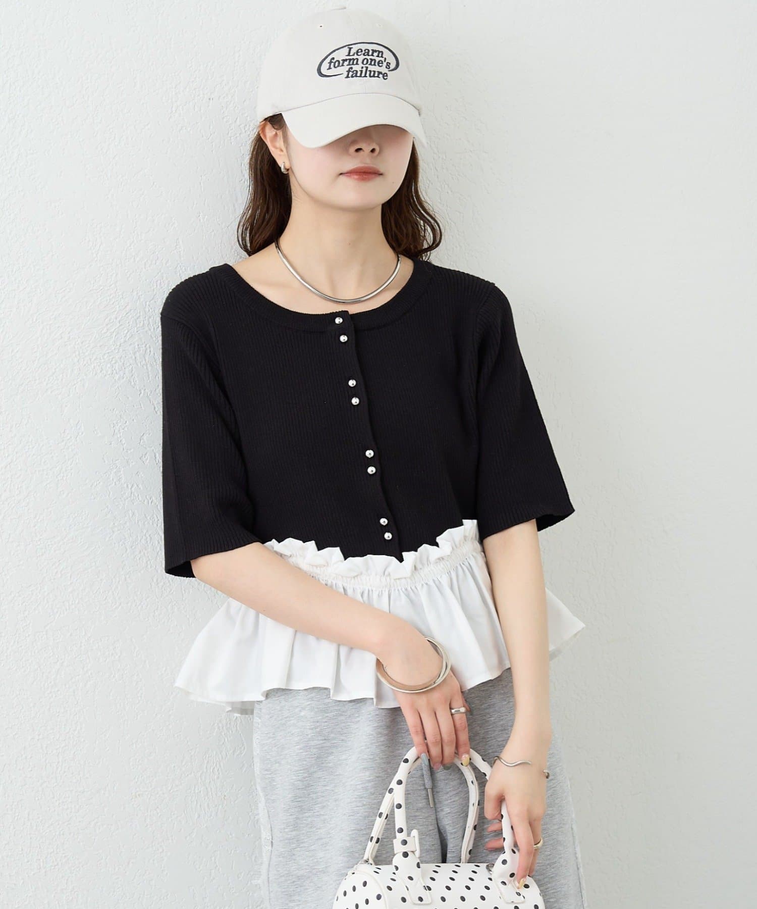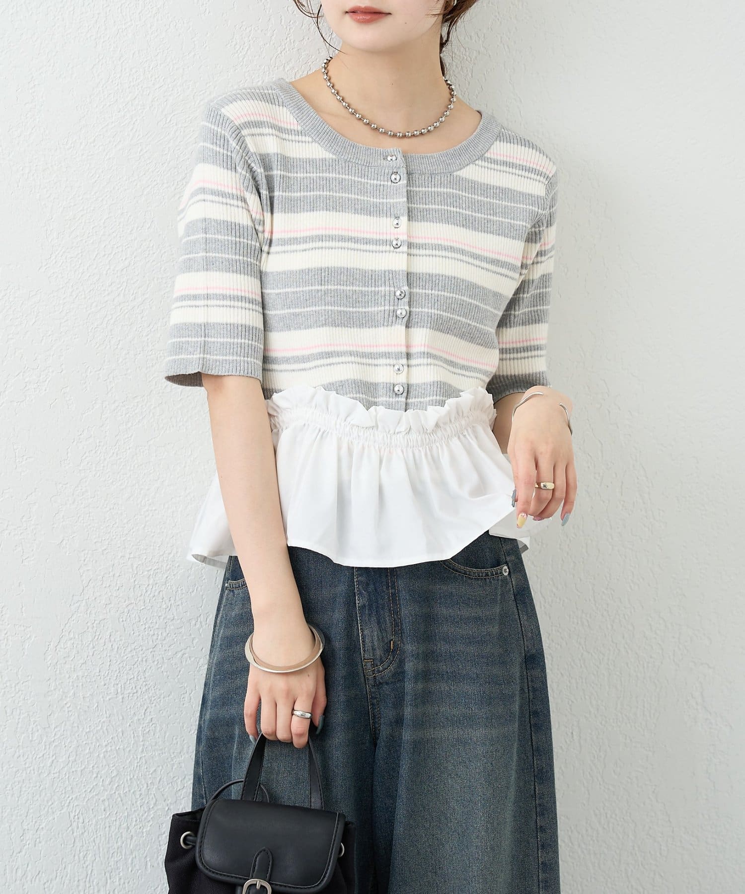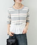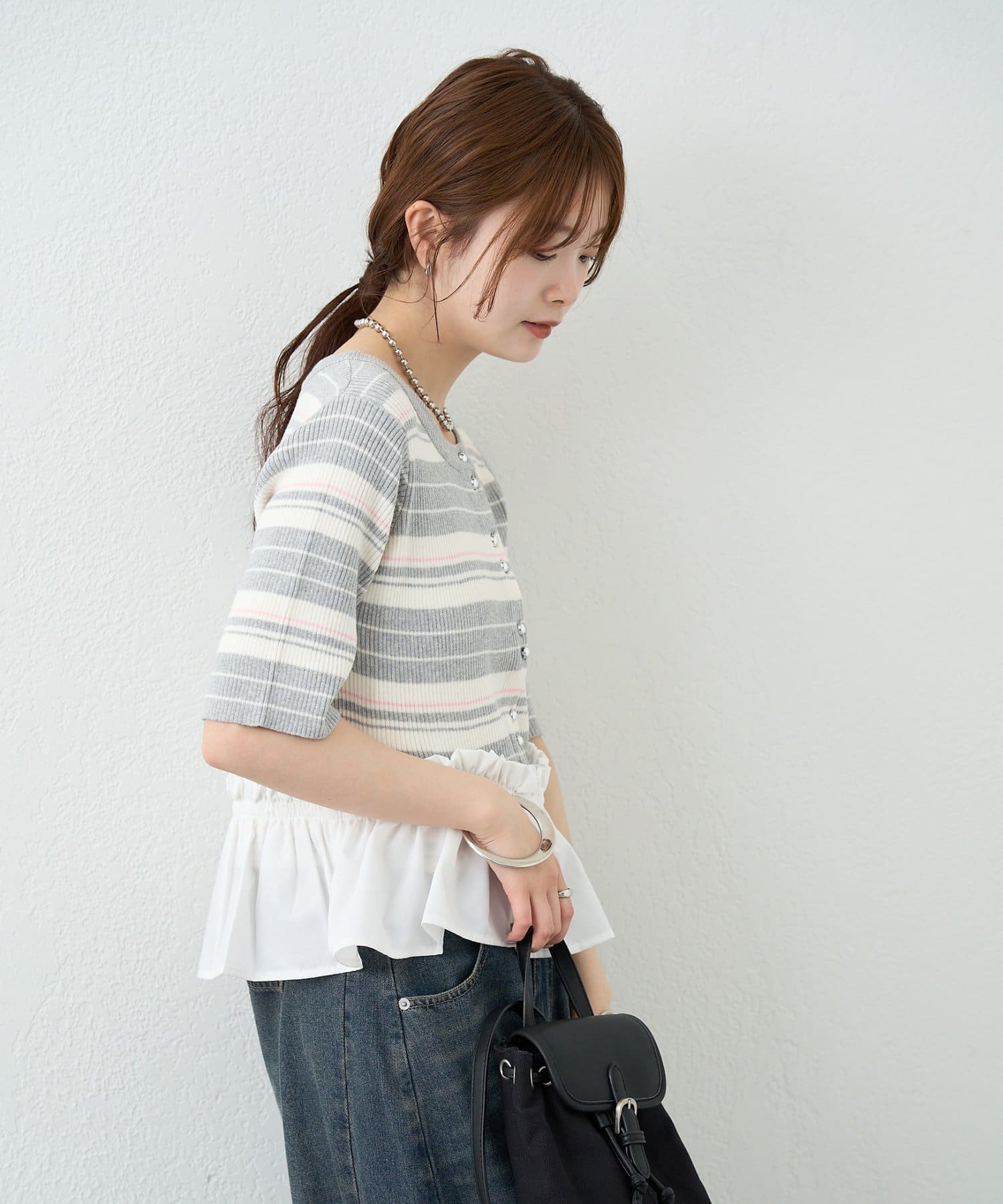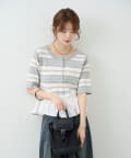 トレンドのペプラムデザインが目を惹く、上品な印象の半袖ニット。