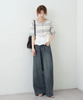 スラックスやデニムを合わせて、甘さを抑えた大人カジュアルスタイルに。
