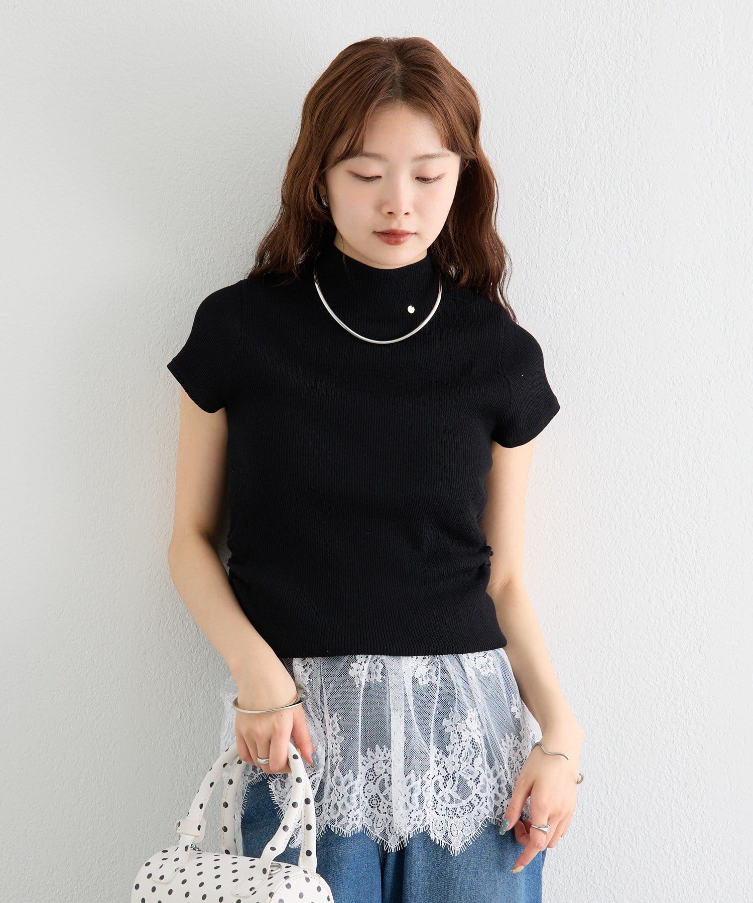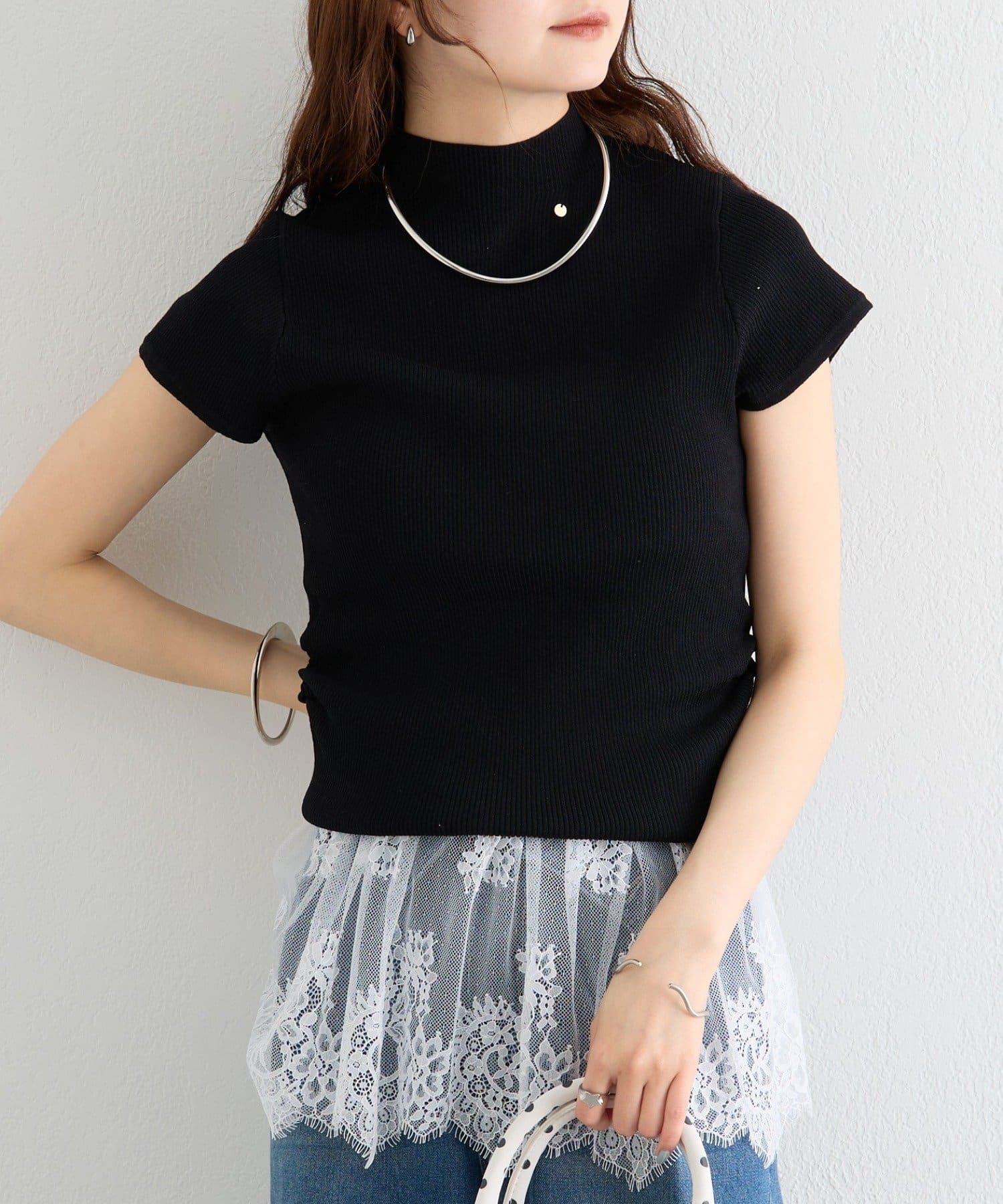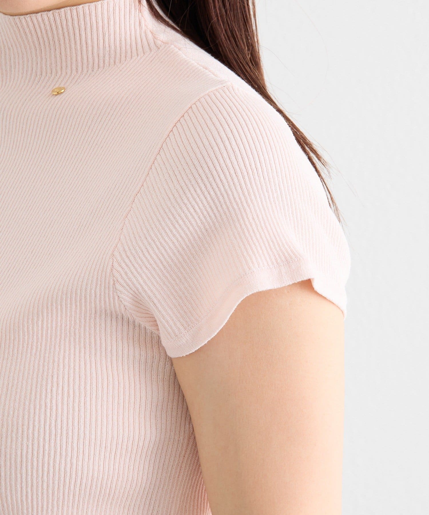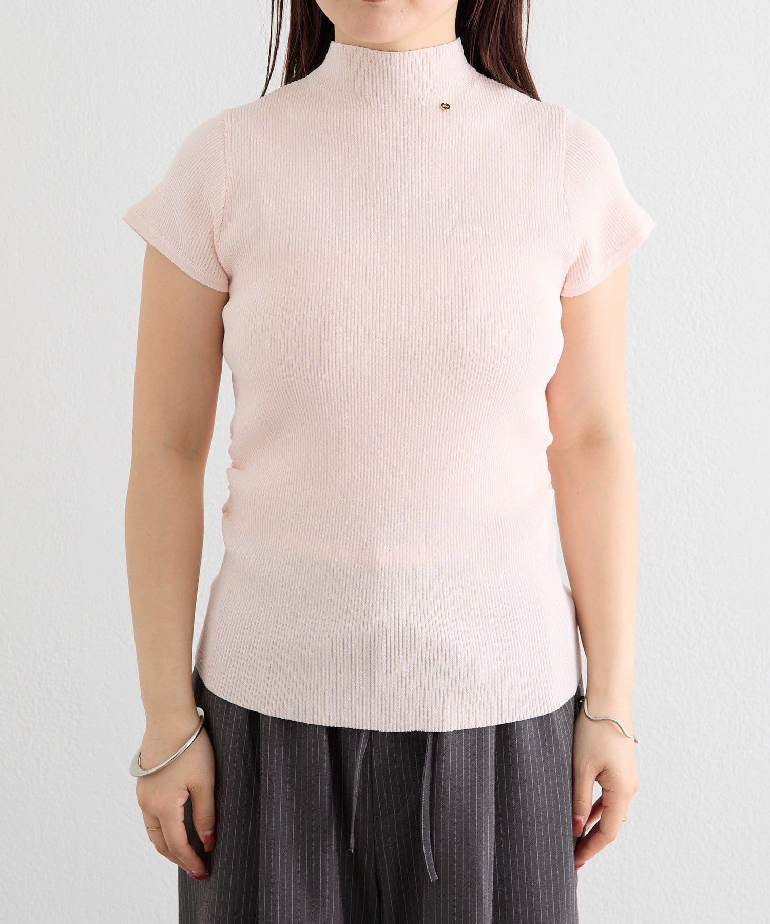 ・すっきりとしたハイネックデザインが上品な印象のトップス。