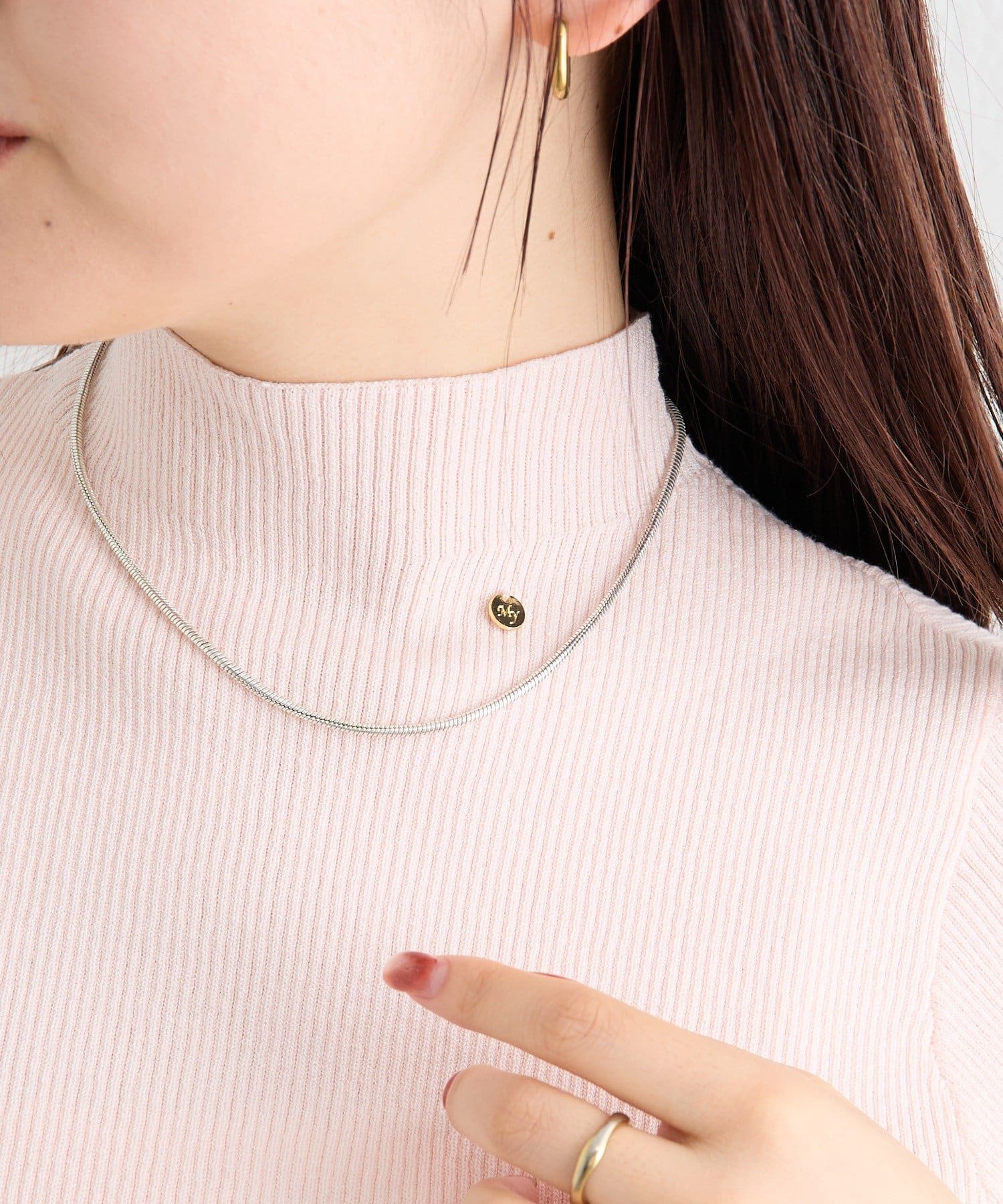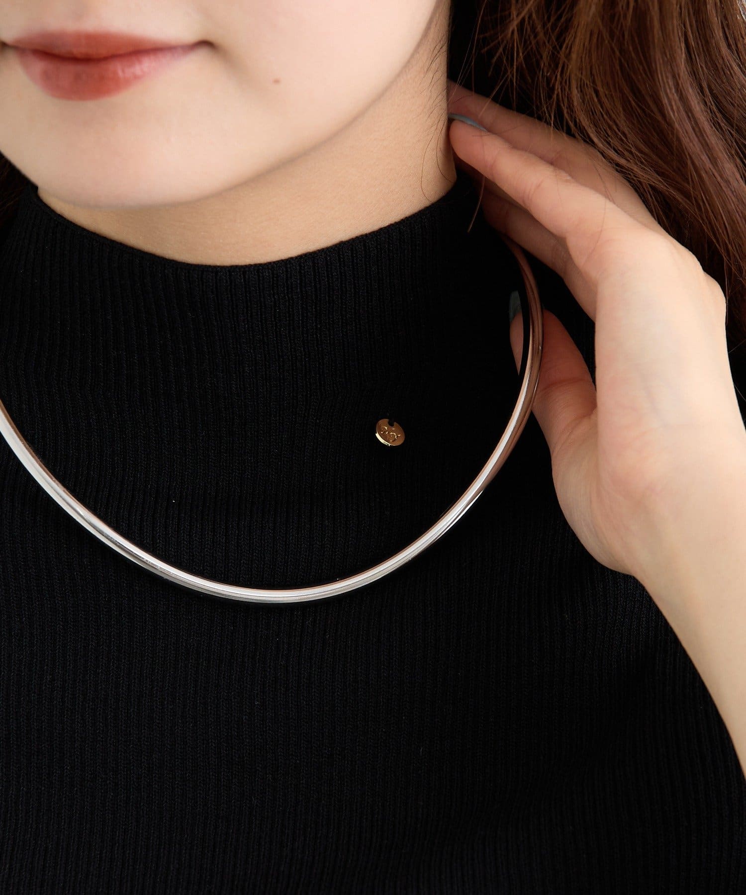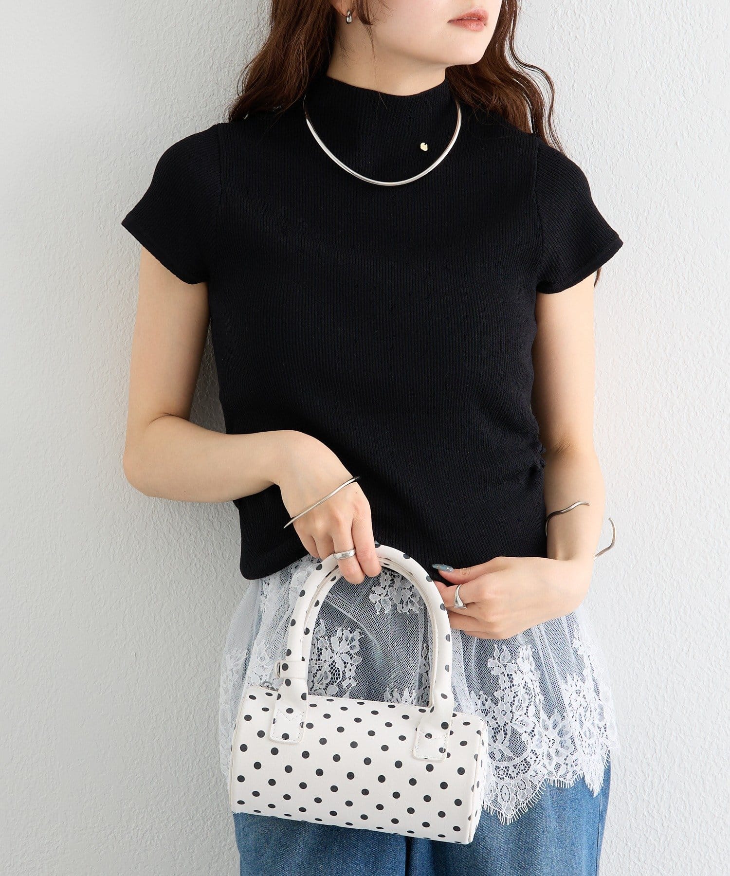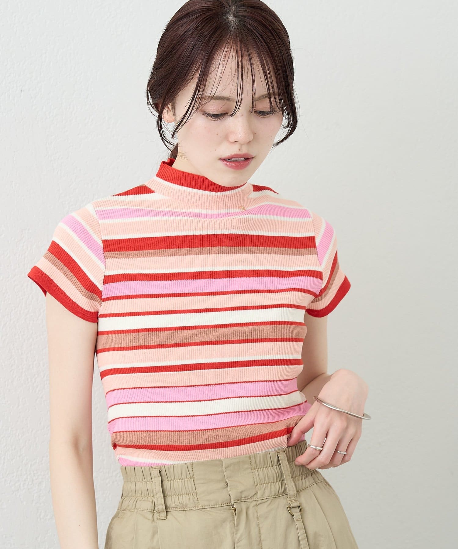 ・すっきりとしたハイネックデザインが上品な印象のトップス。