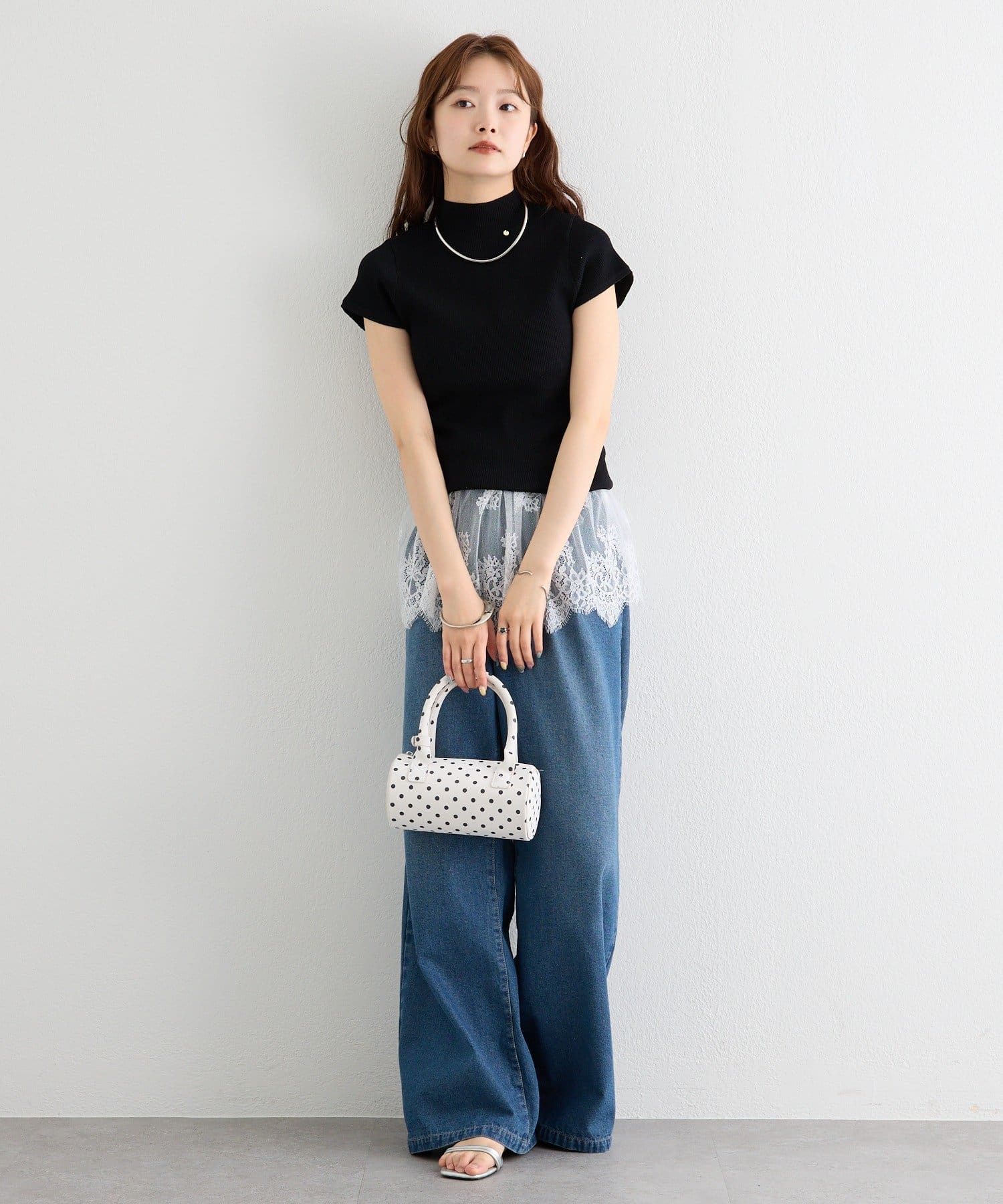 ・ボリュームのあるボトムスを合わせてメリハリにあるシルエットに。