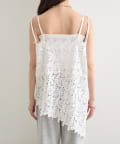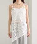 繊細なリーフレースを贅沢に使用し、裾のアシンメトリーなデザインが目を惹くキャミソール。