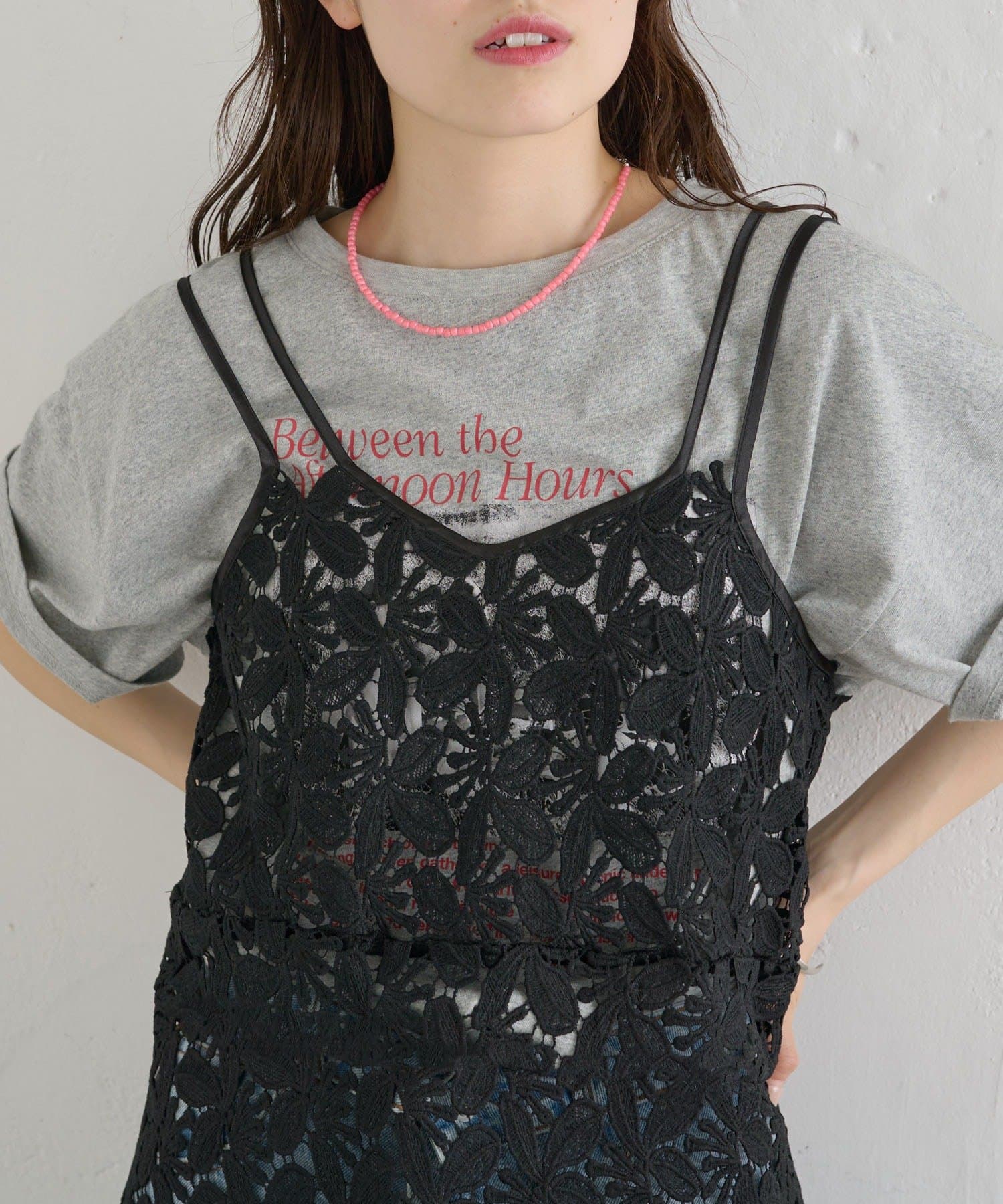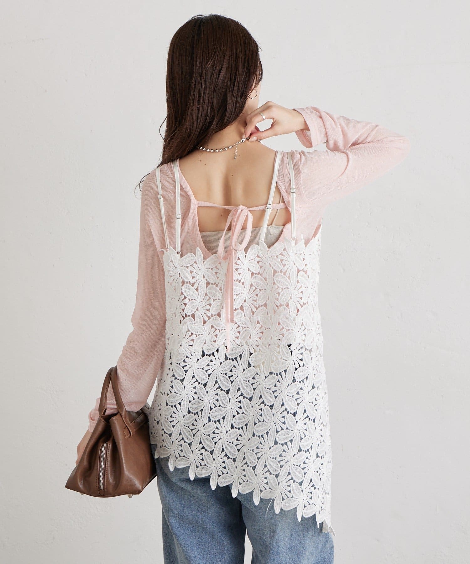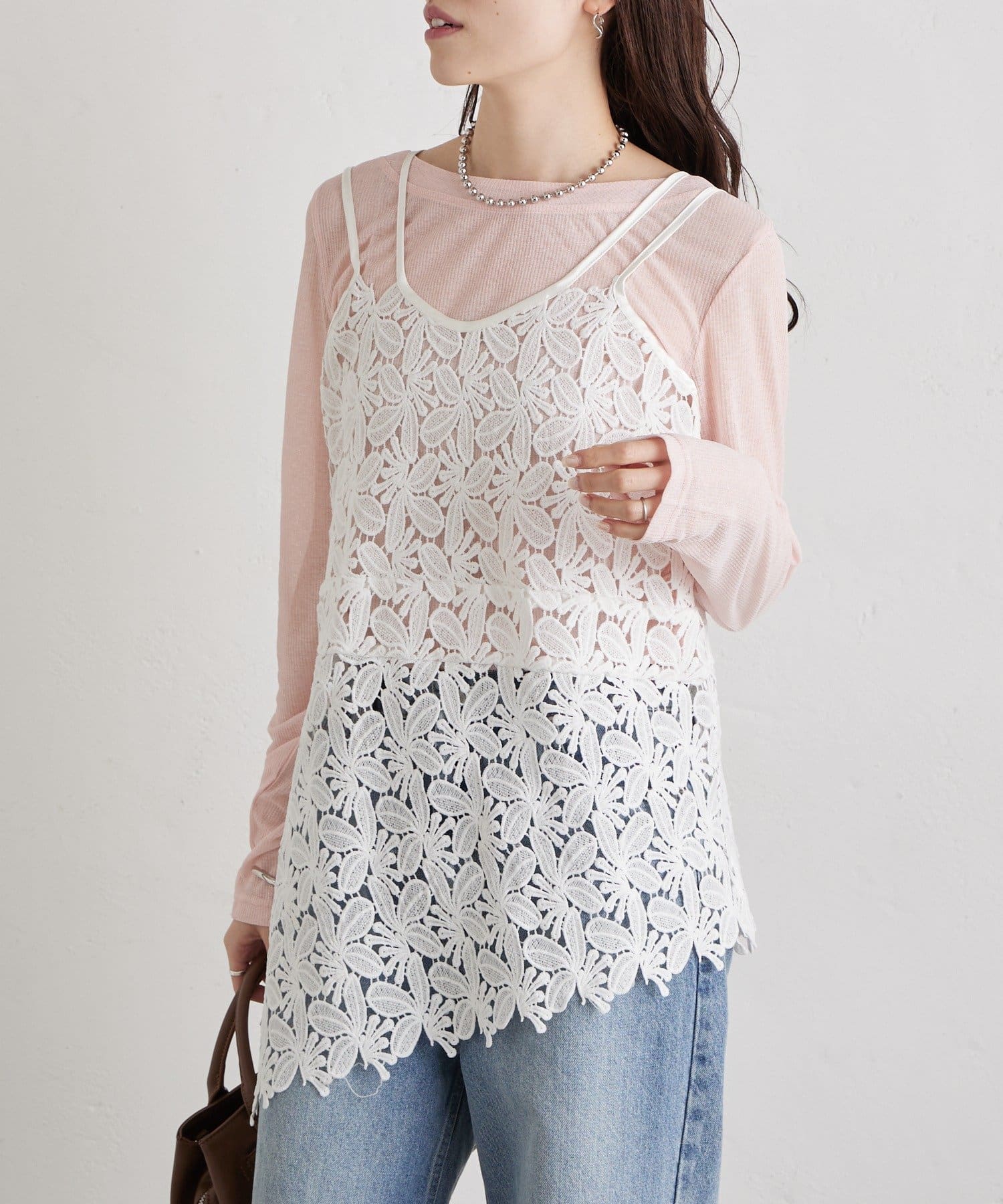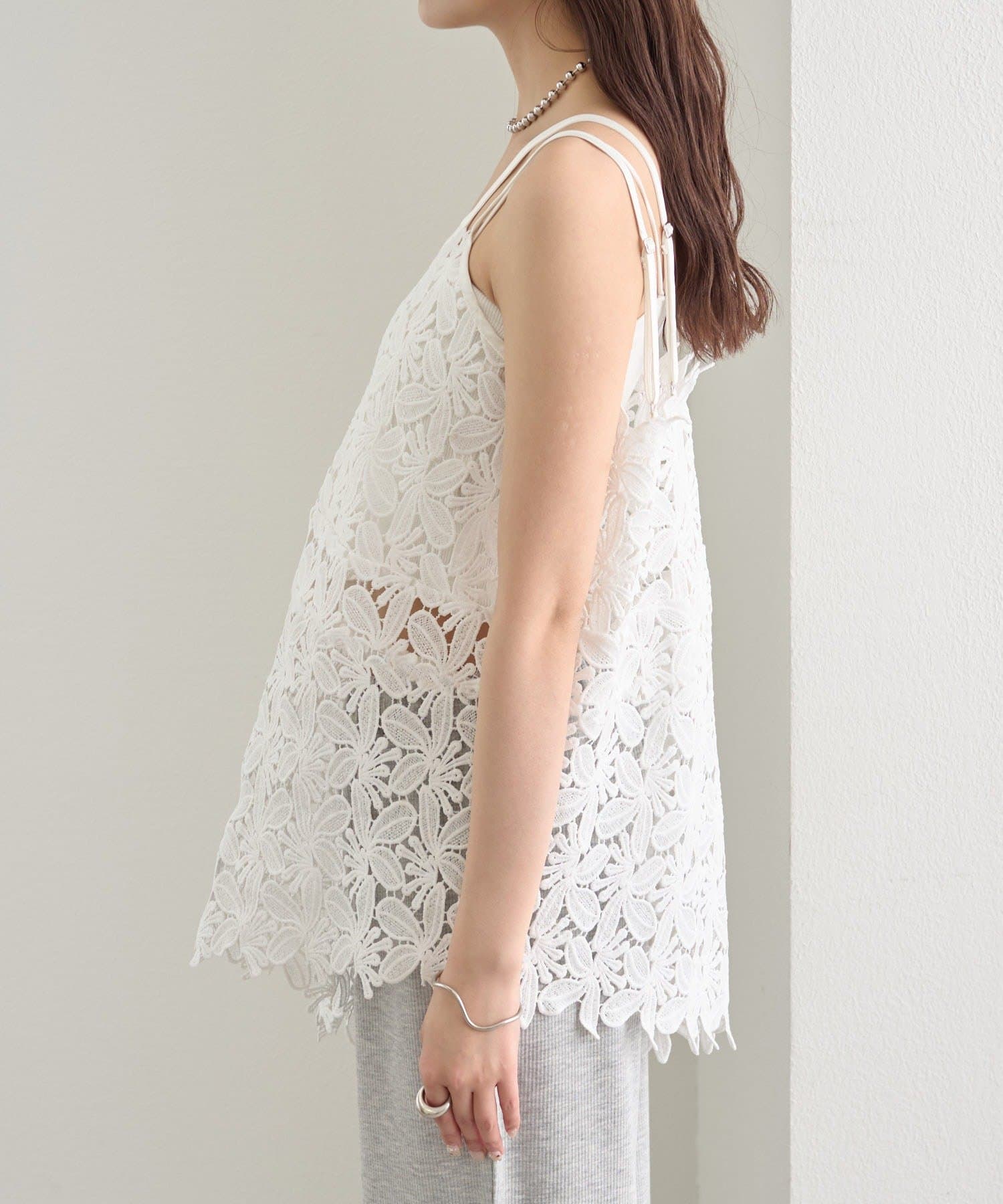 いつものスタイルをアップデート◎繊細なリーフレースが可愛いキャミ