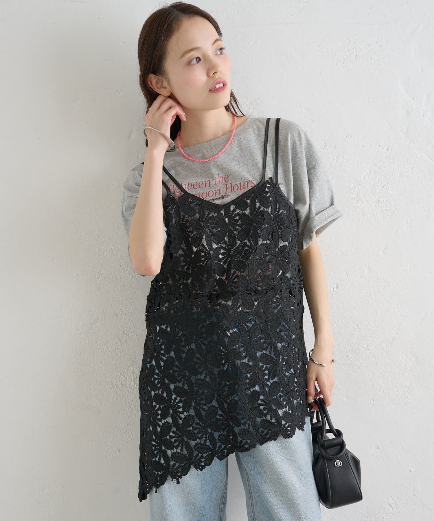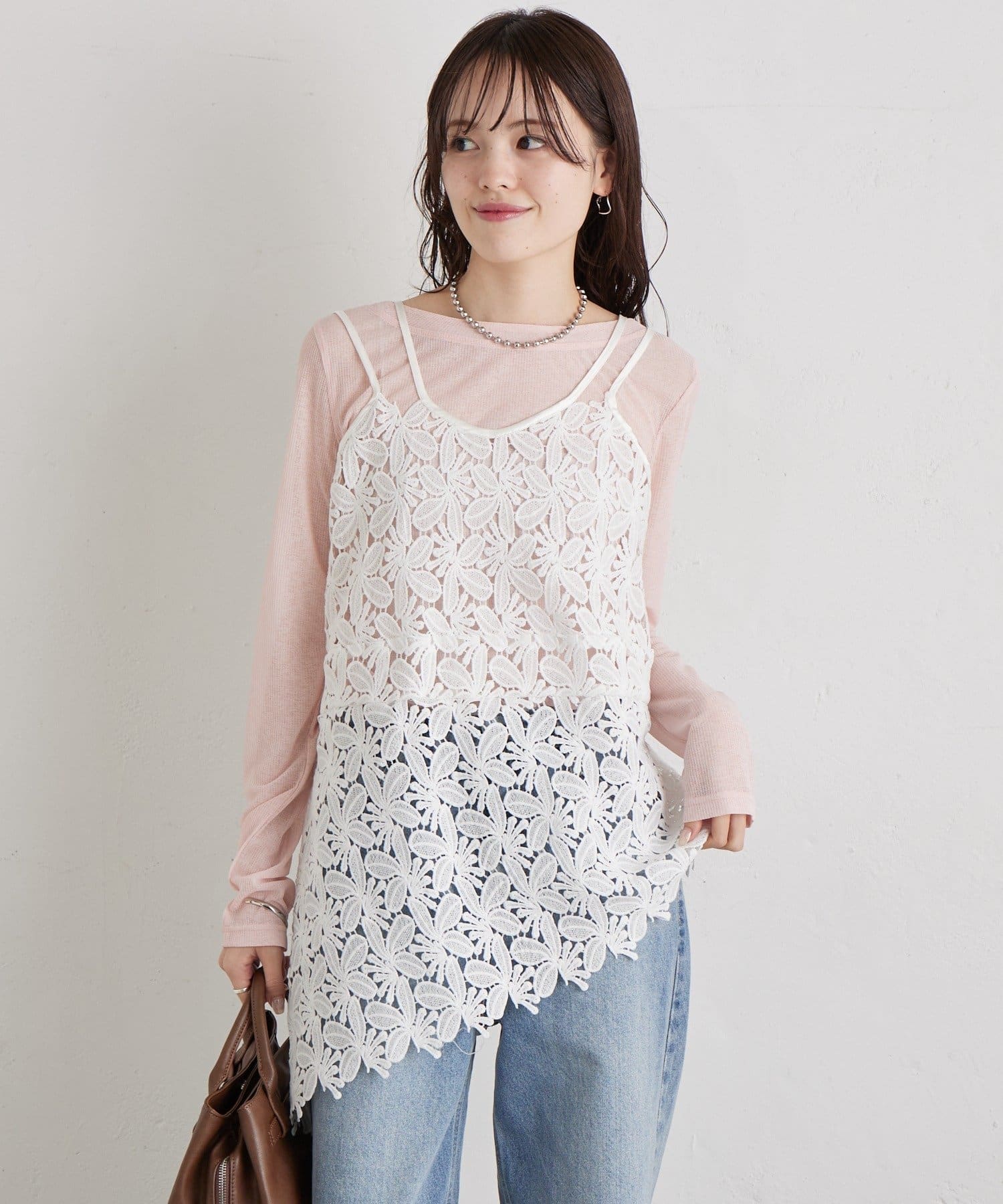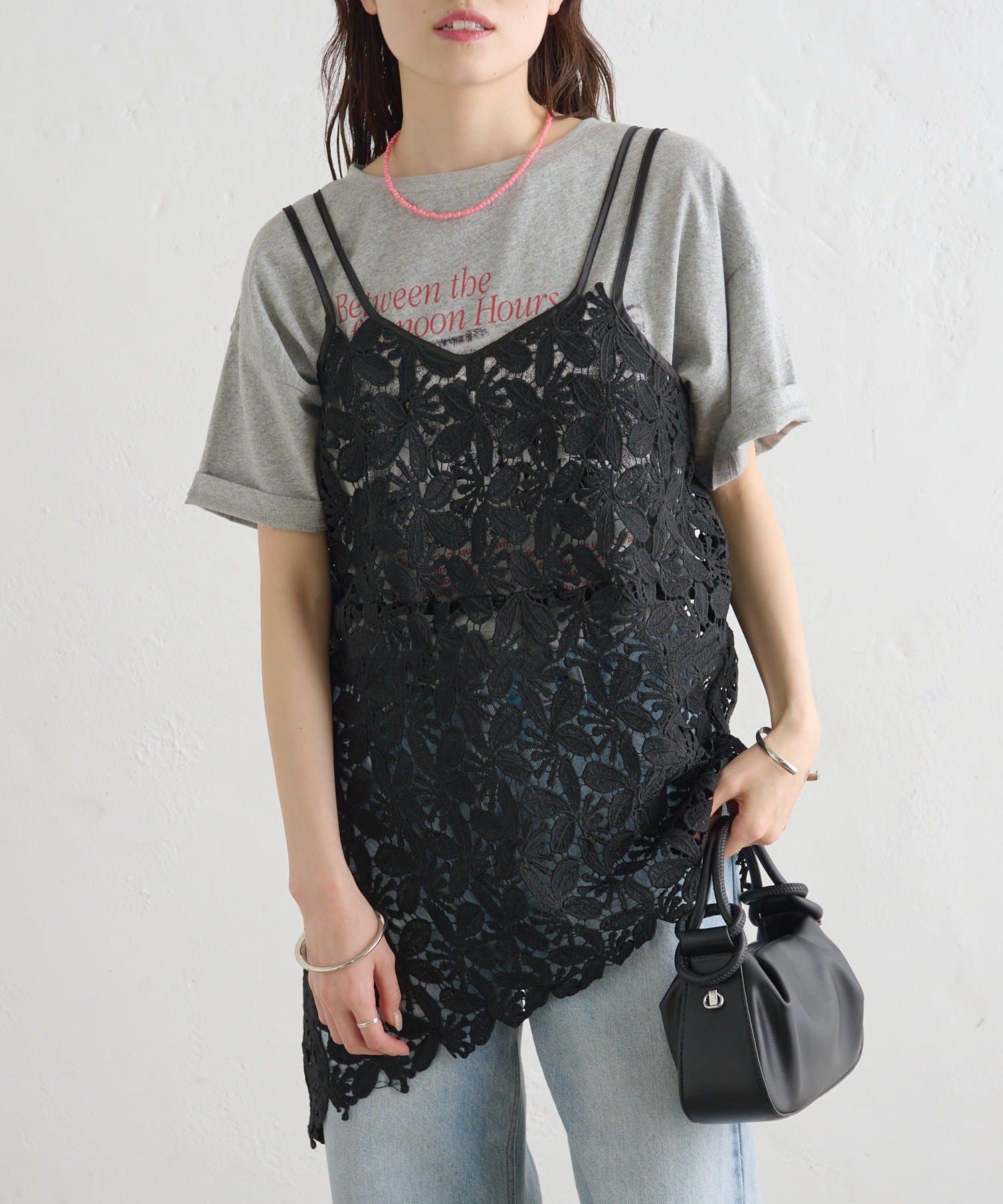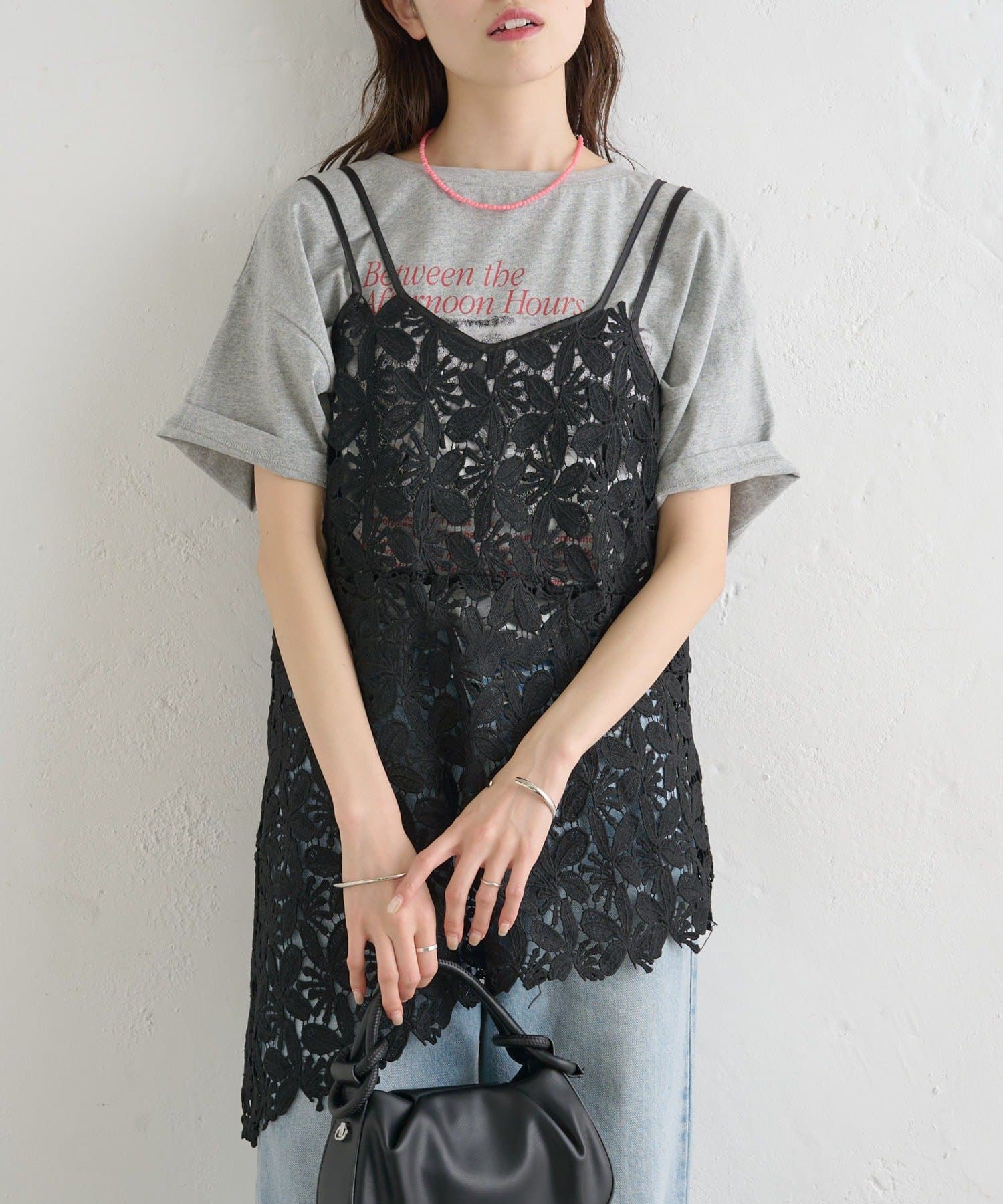 いつものスタイルをアップデート◎繊細なリーフレースが可愛いキャミ