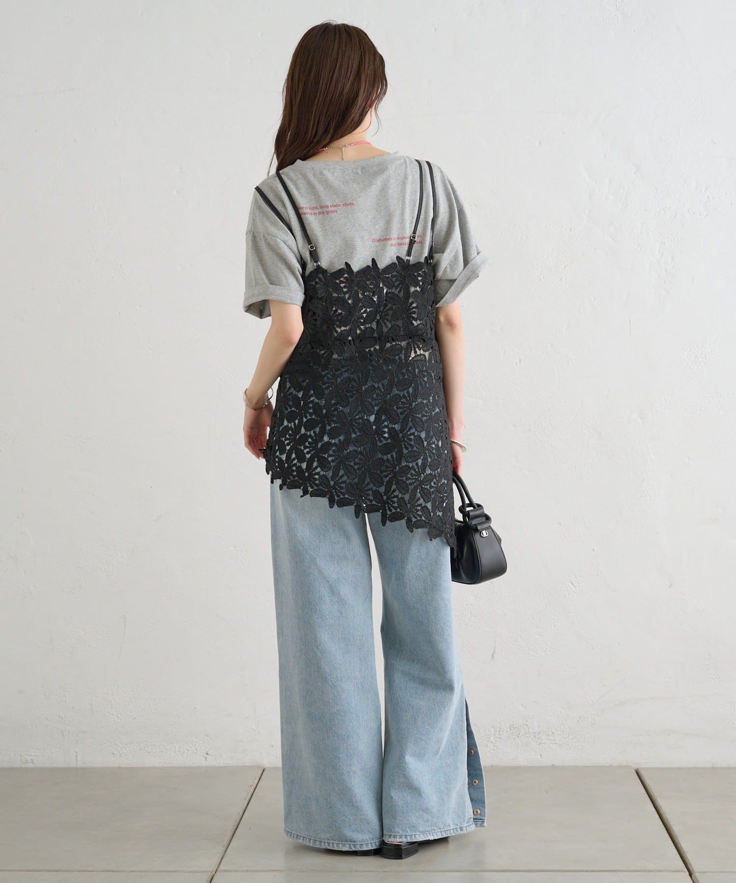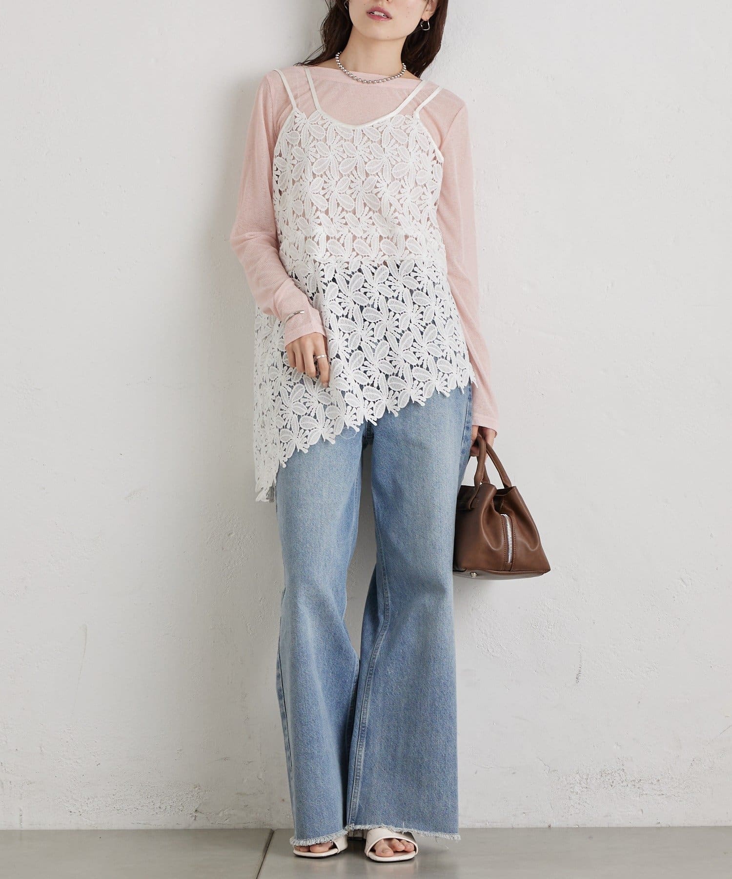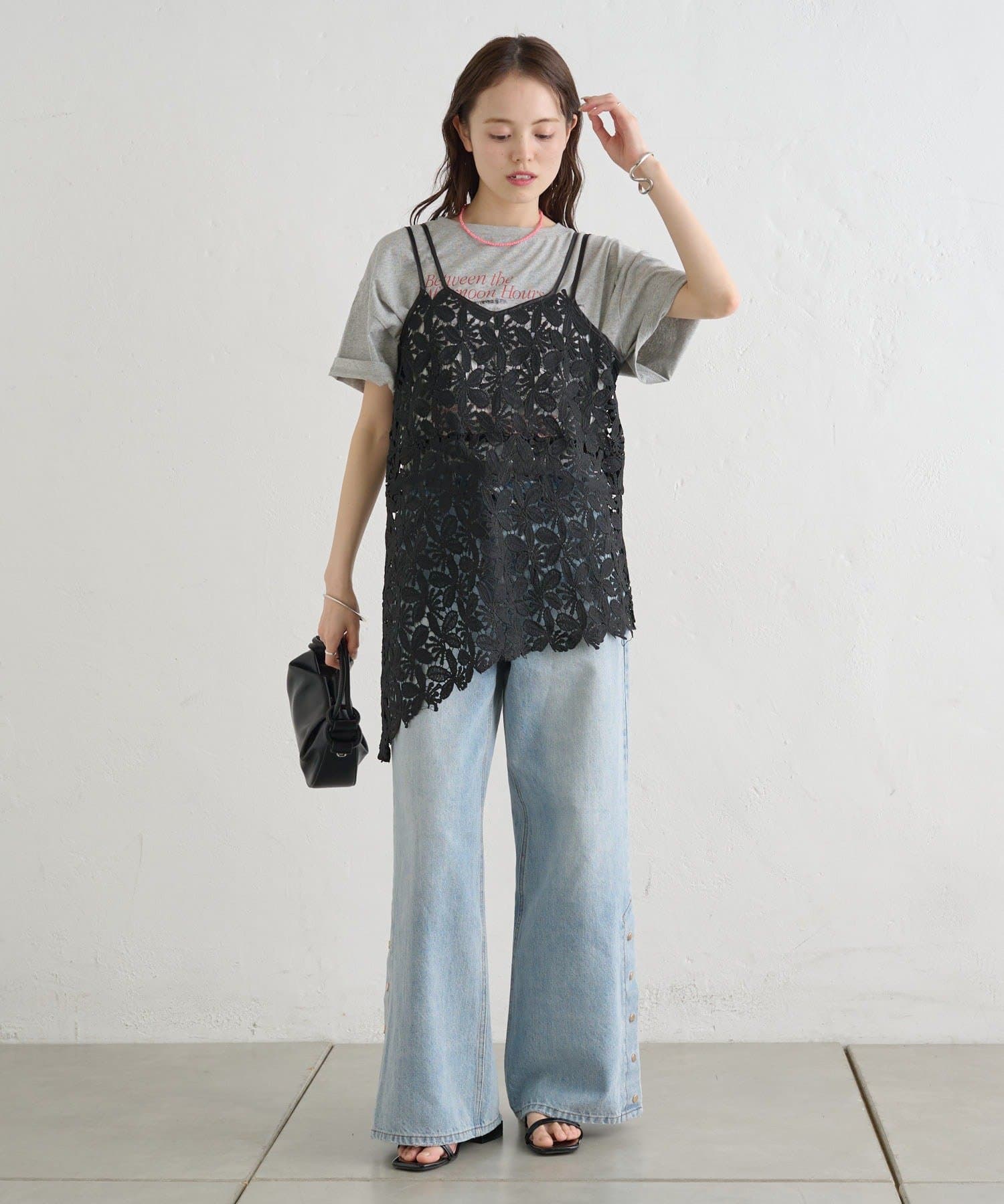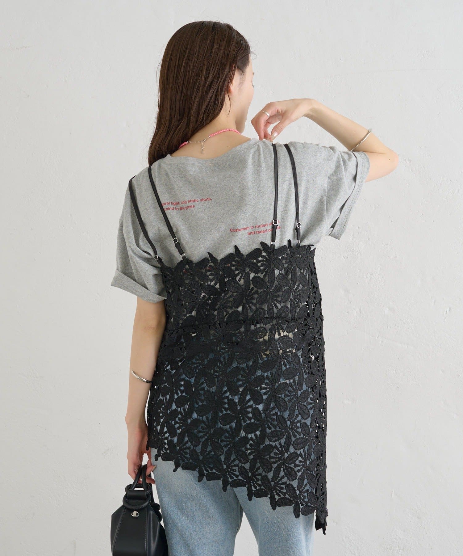 いつものスタイルをアップデート◎繊細なリーフレースが可愛いキャミ