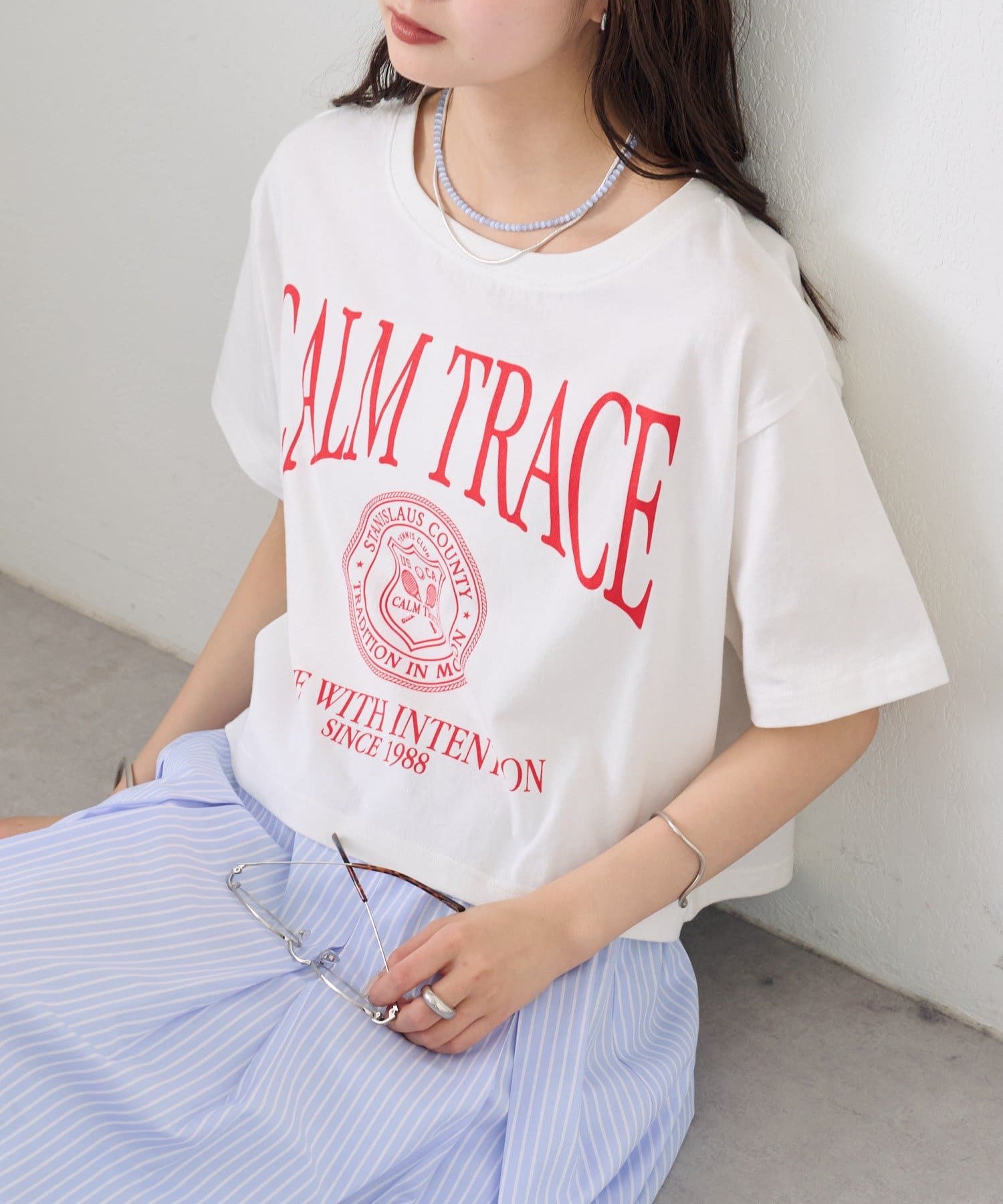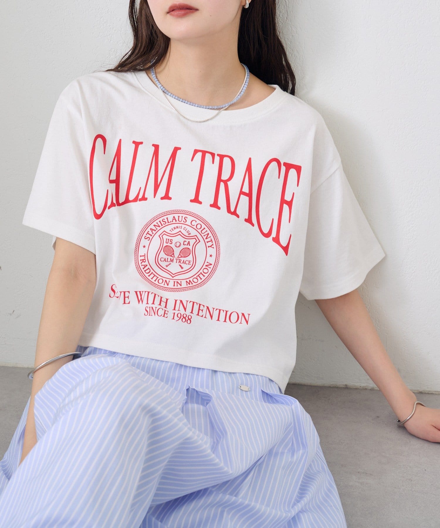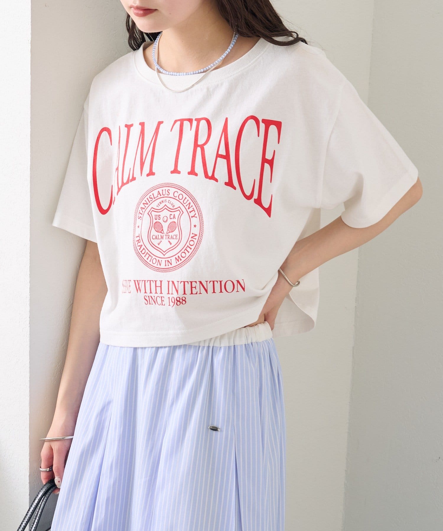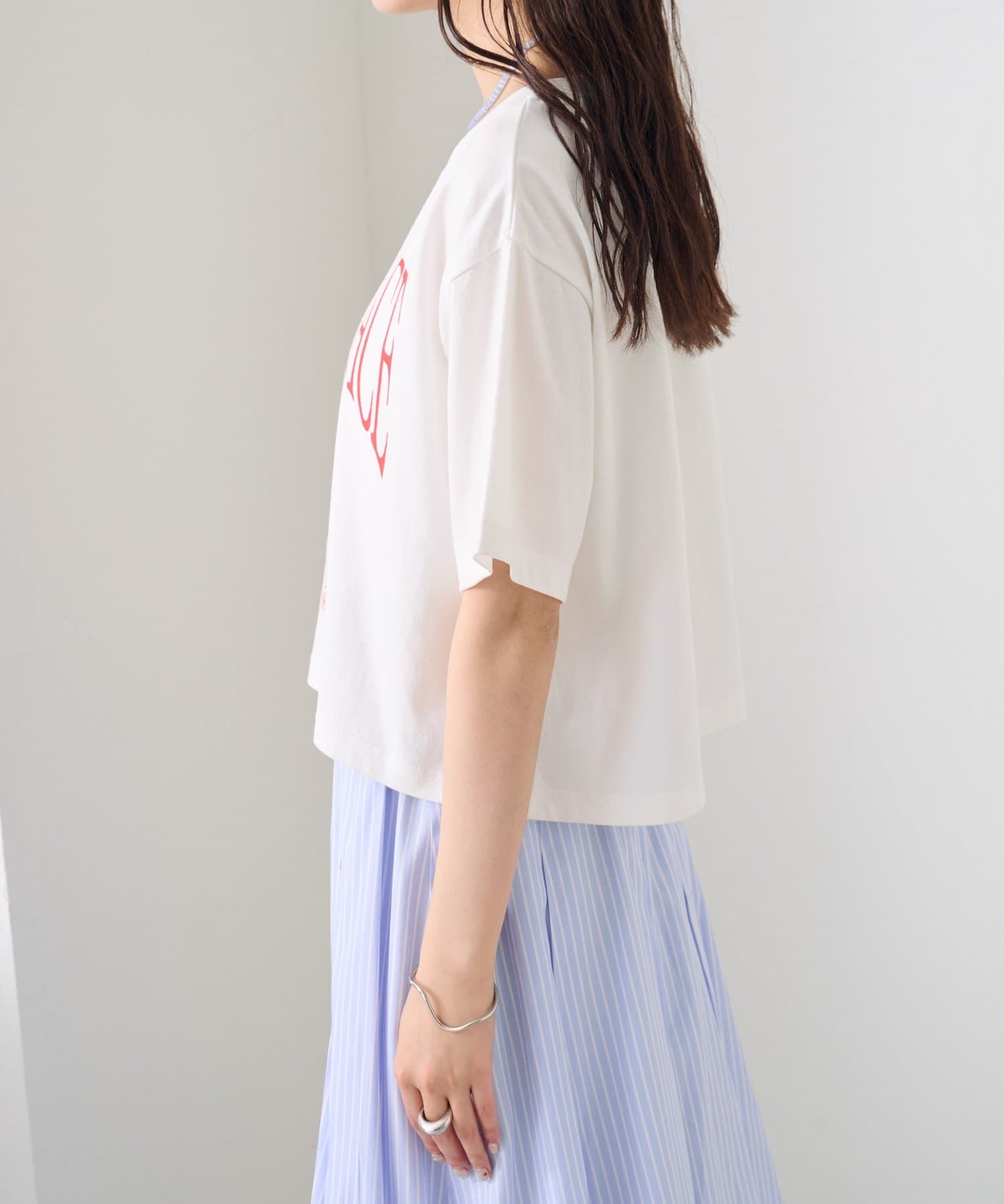 スタイリングのアクセントになるショートロゴTシャツ