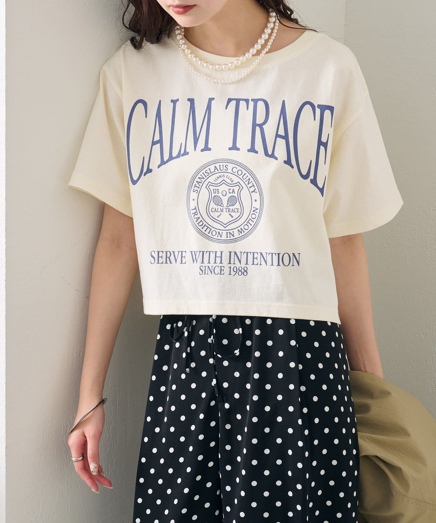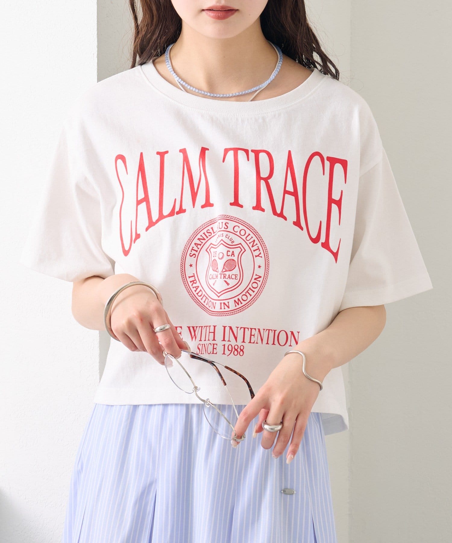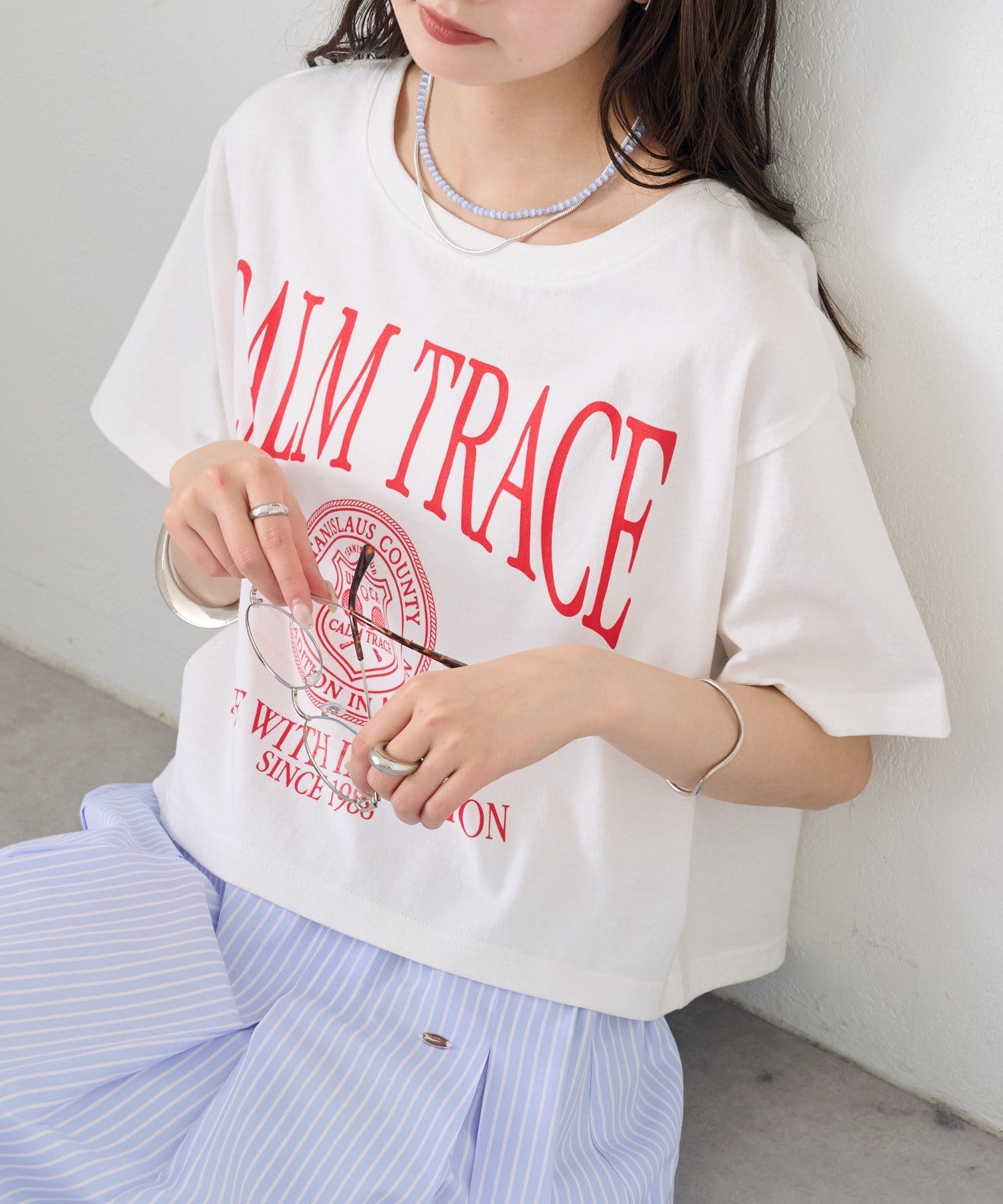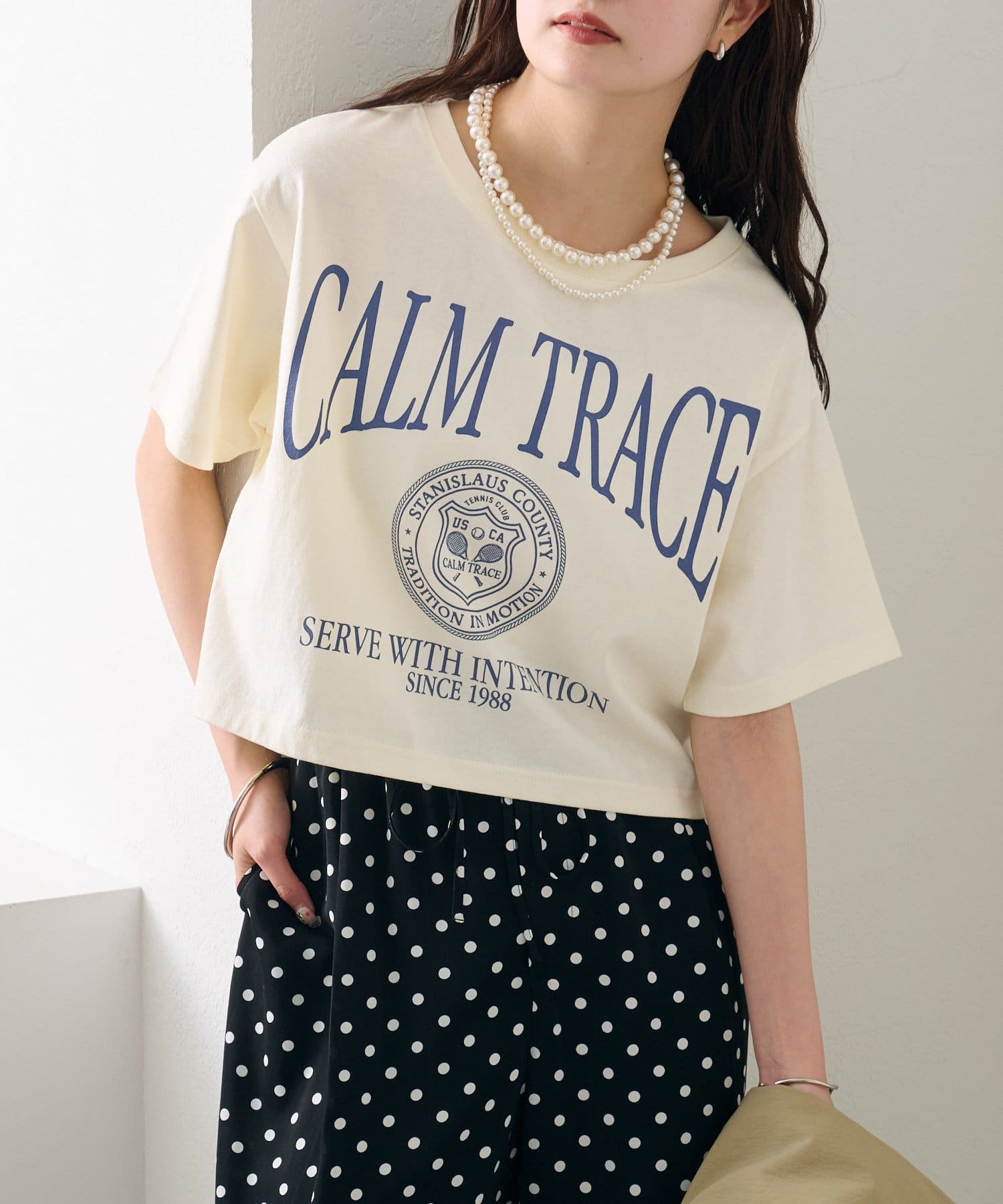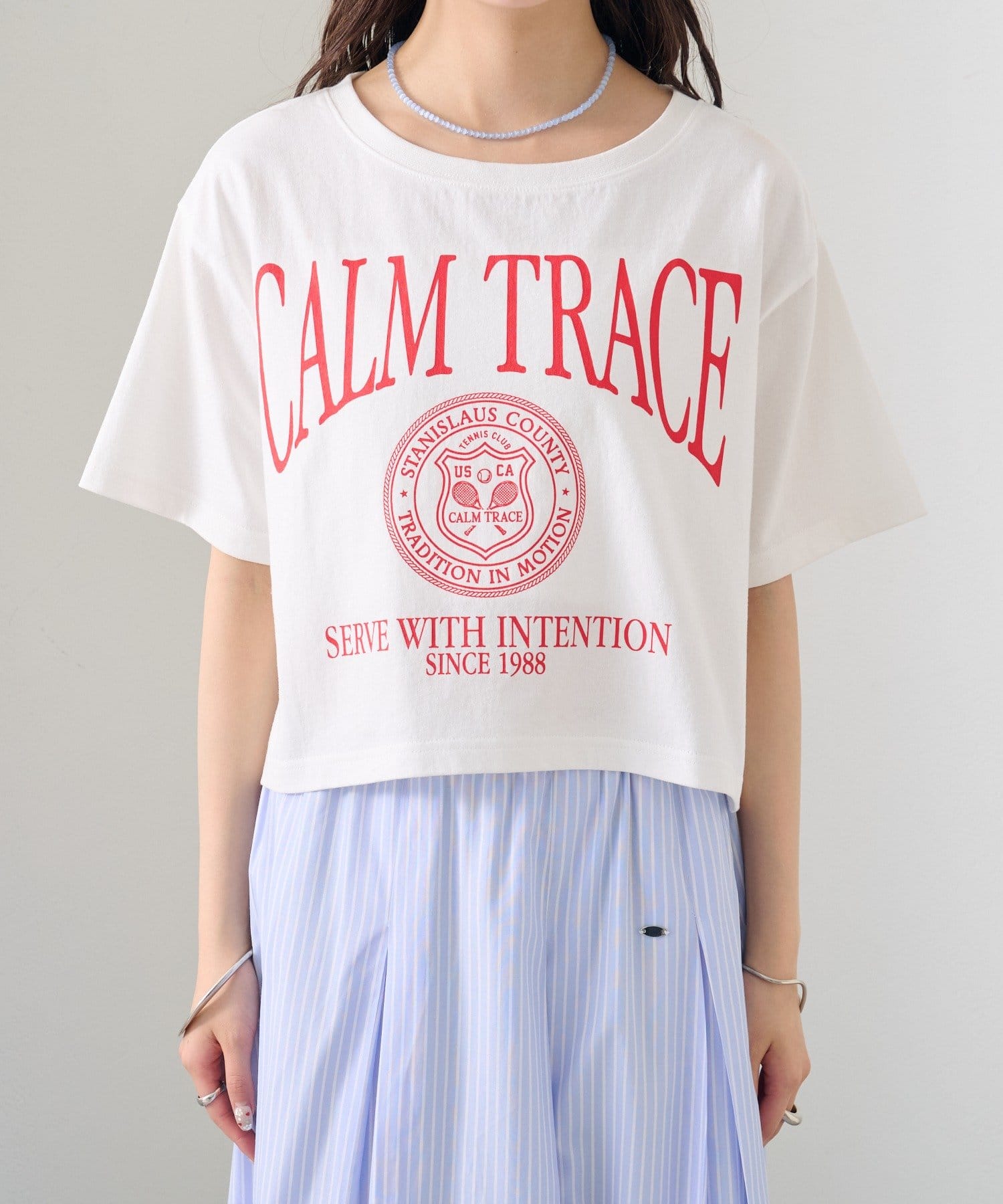 スタイリングのアクセントになるショートロゴTシャツ