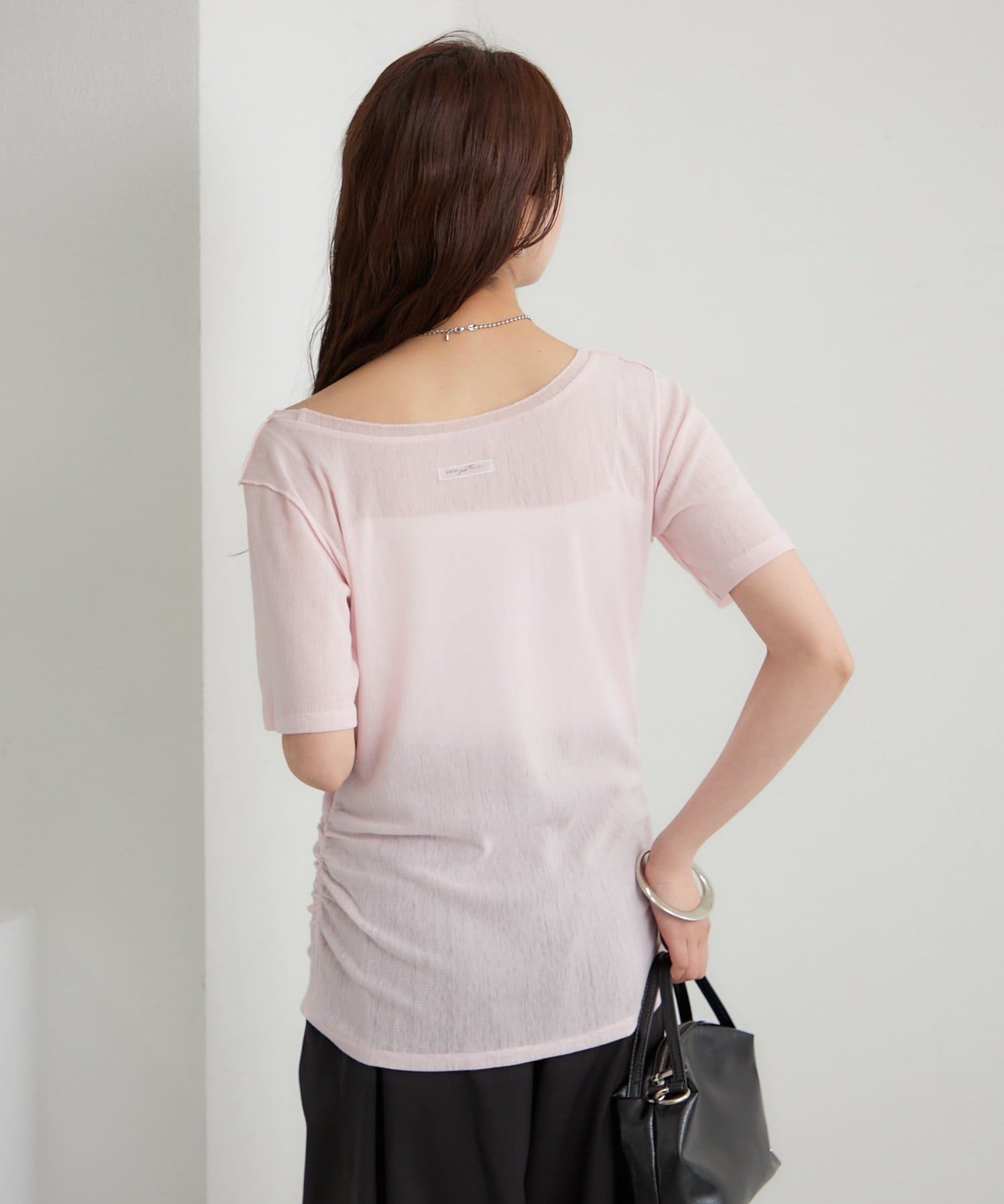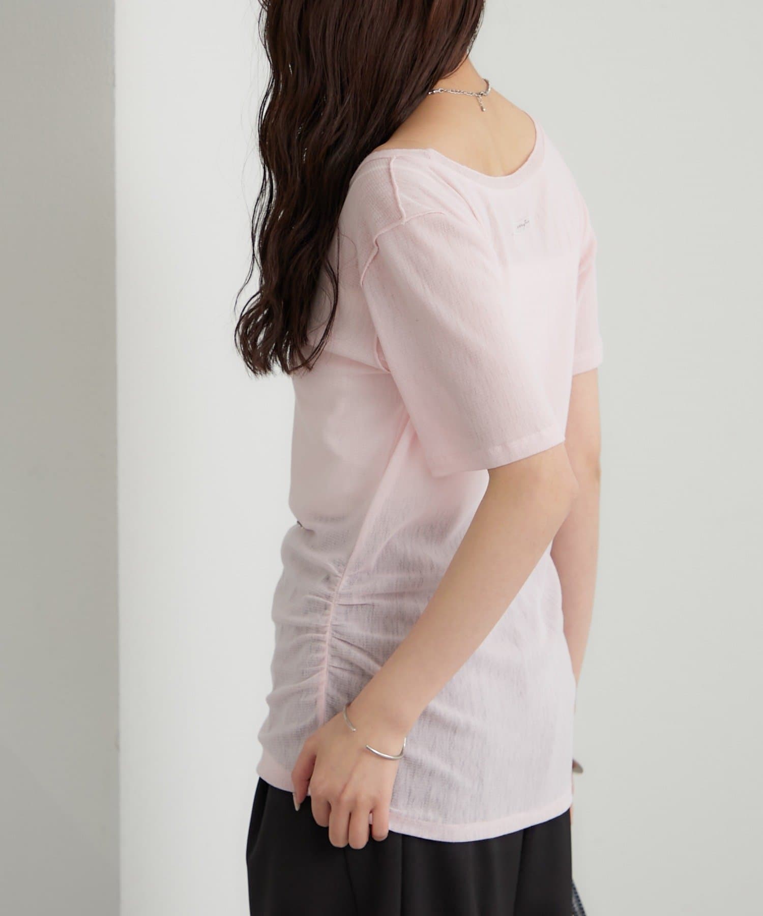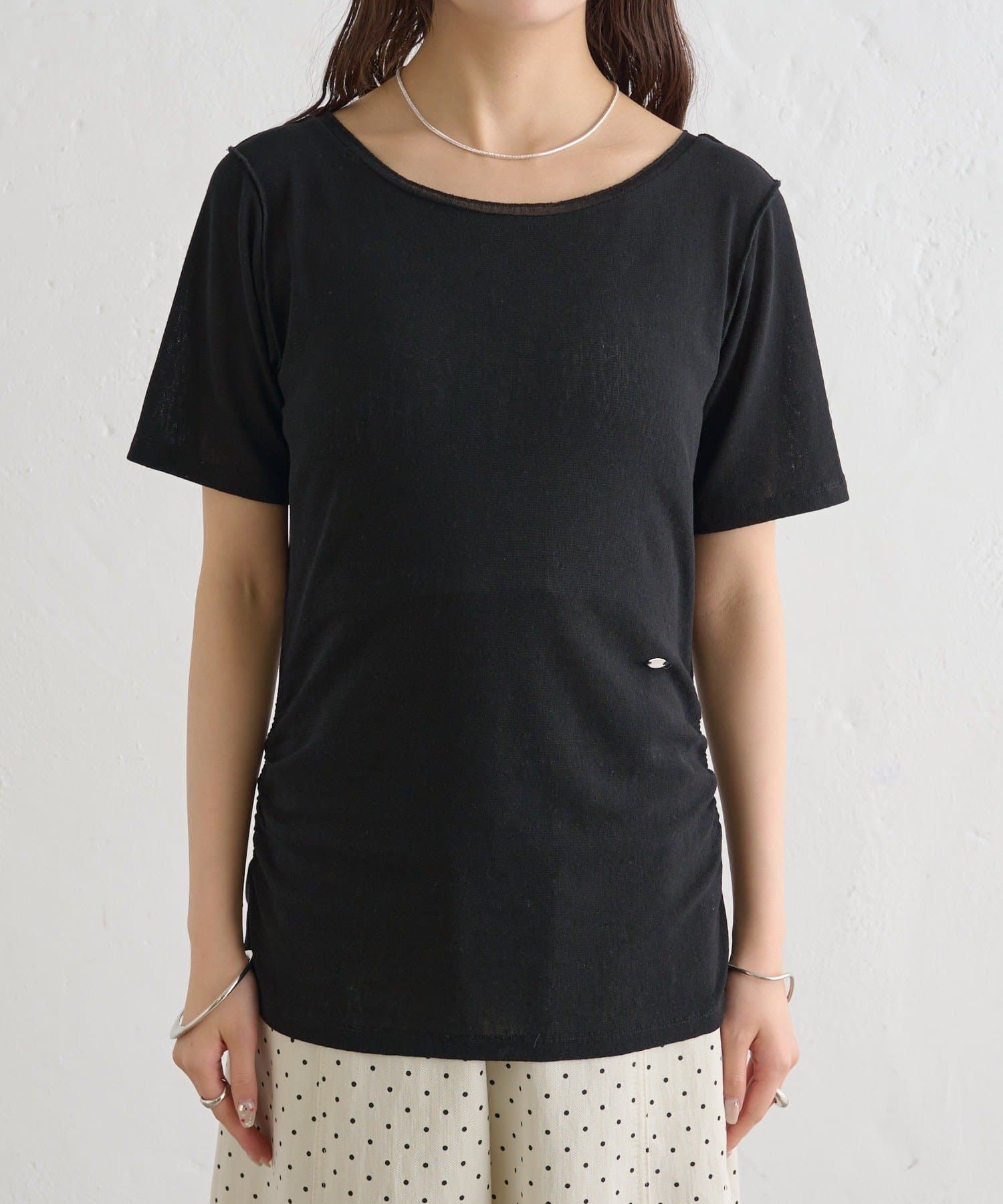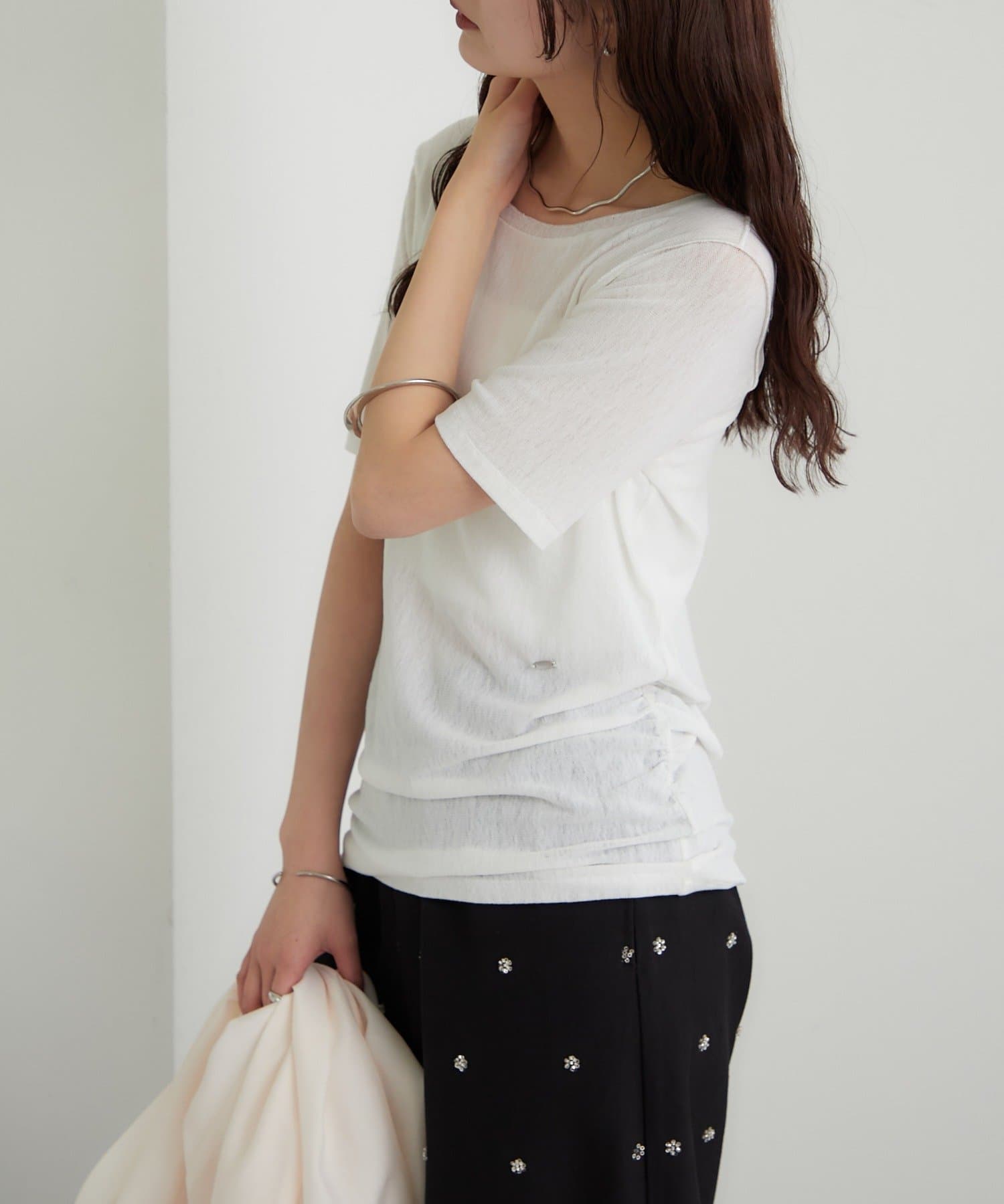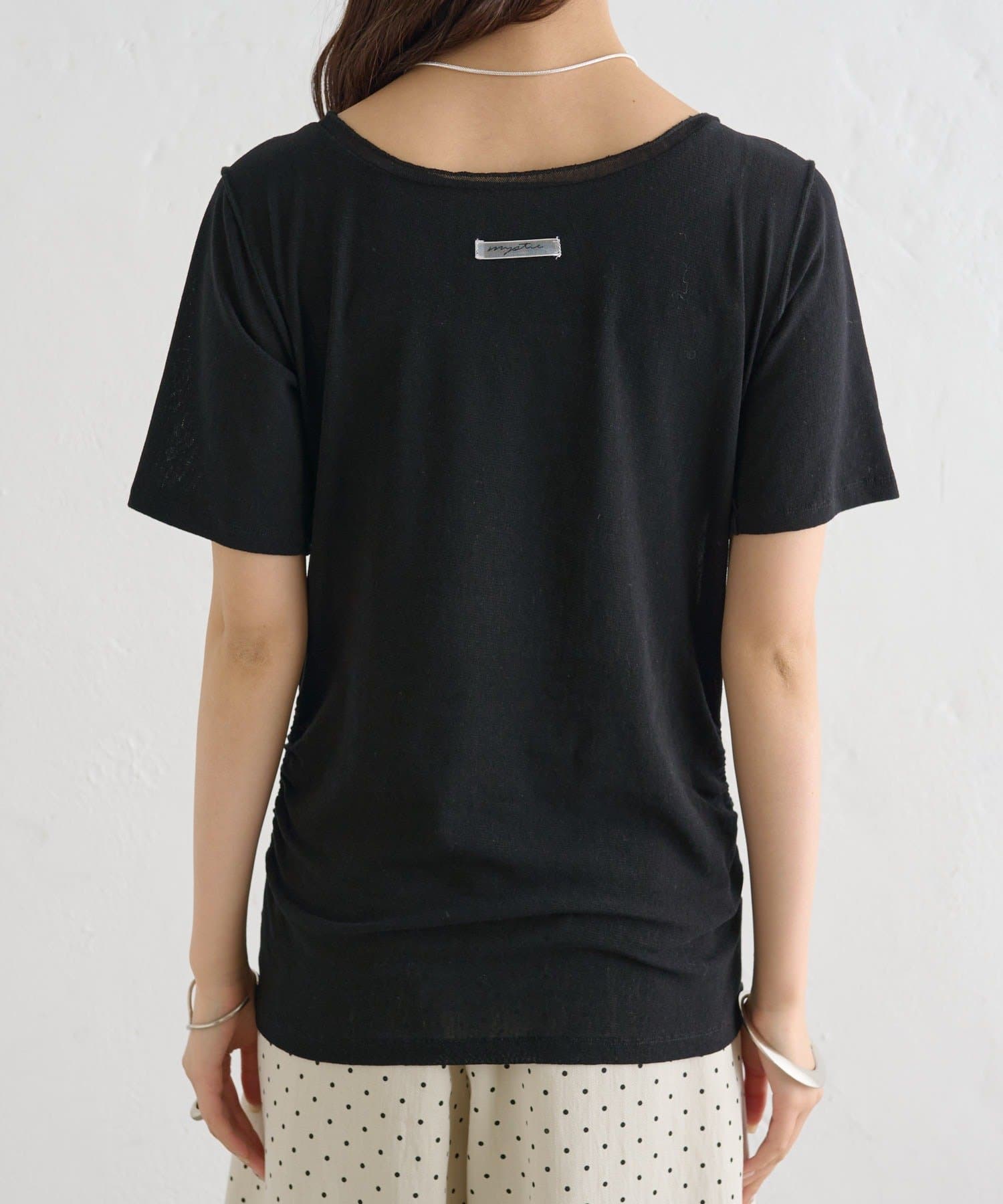ワンポイントプレート付き サイドギャザーシアーTシャツ
