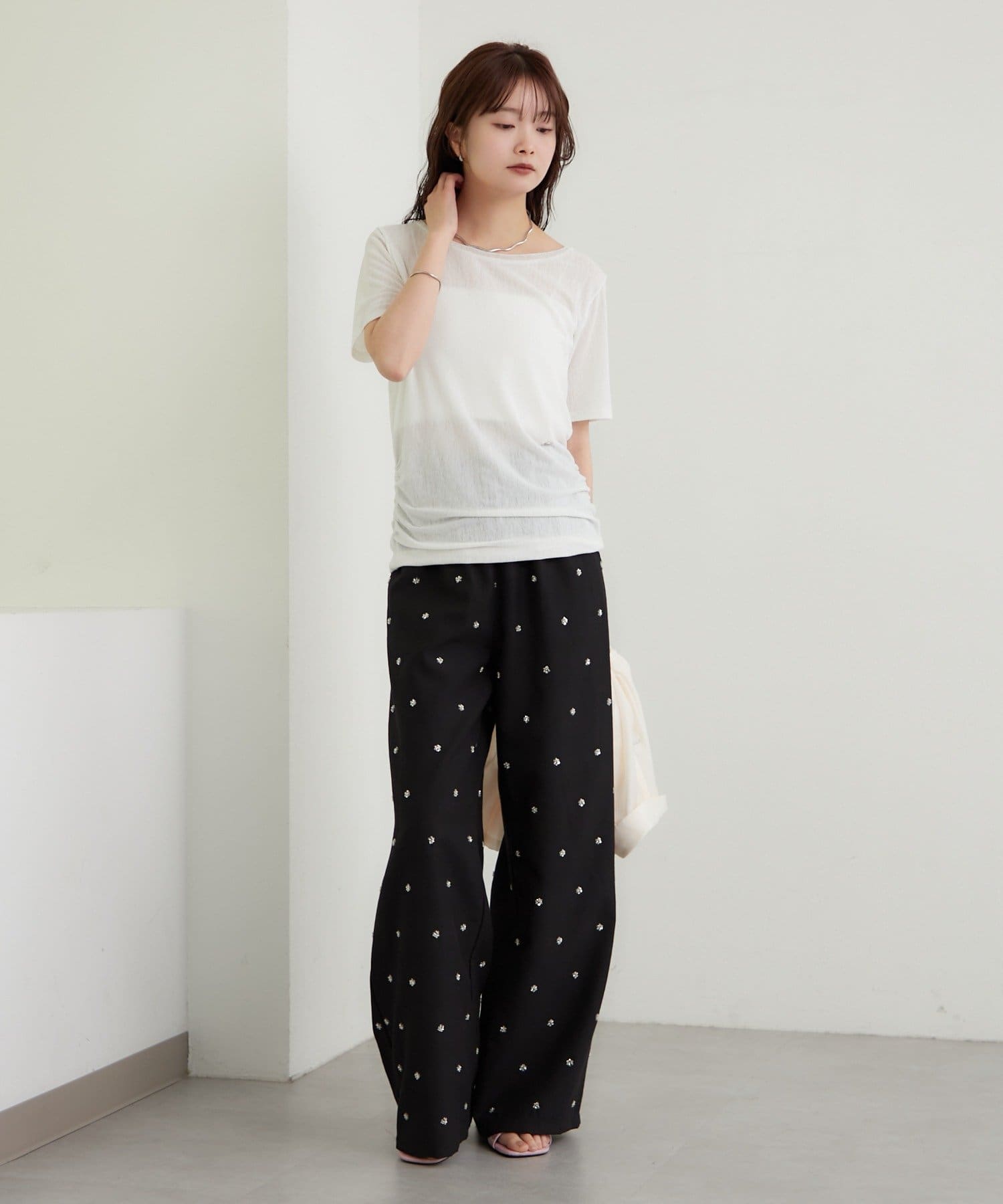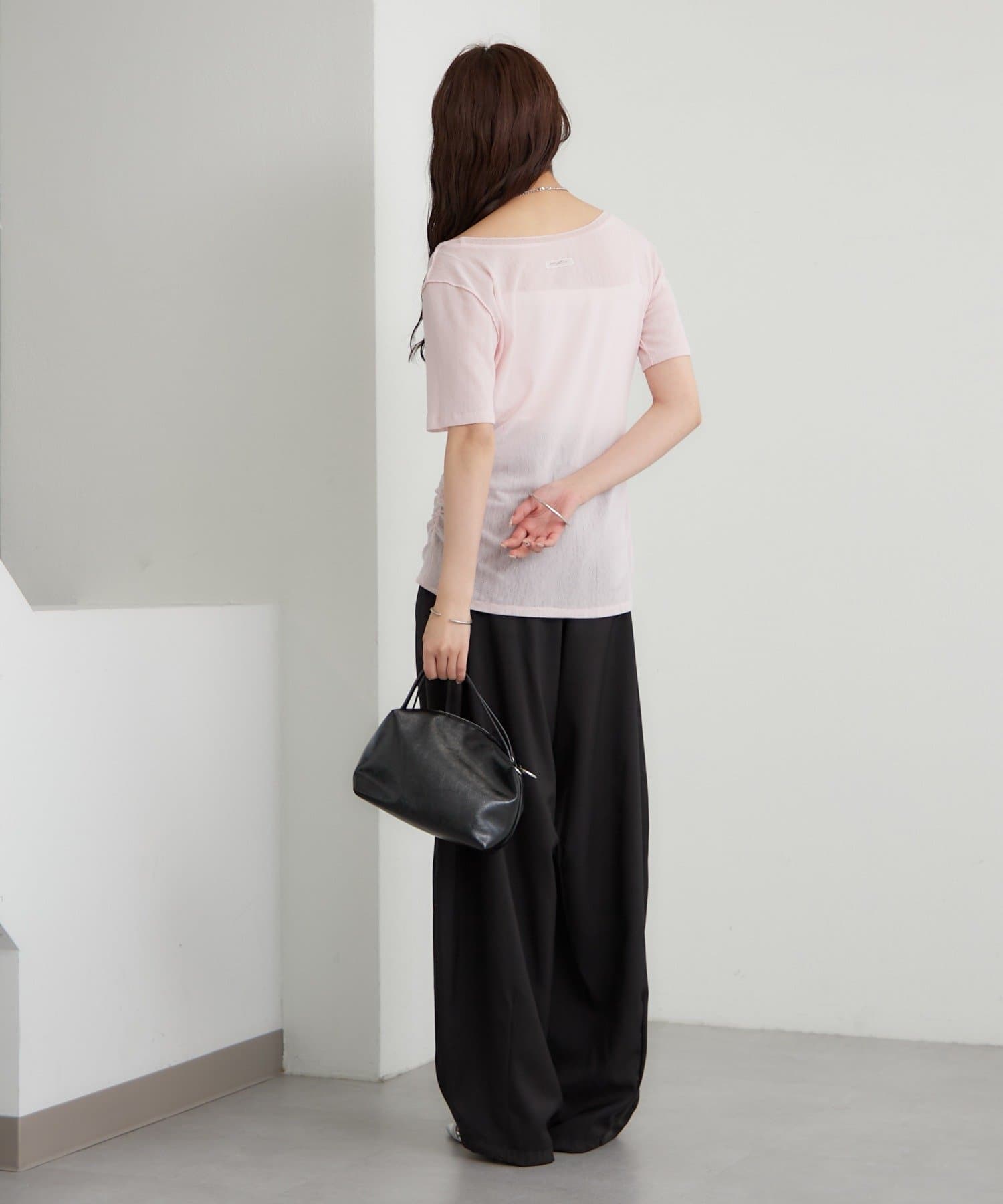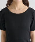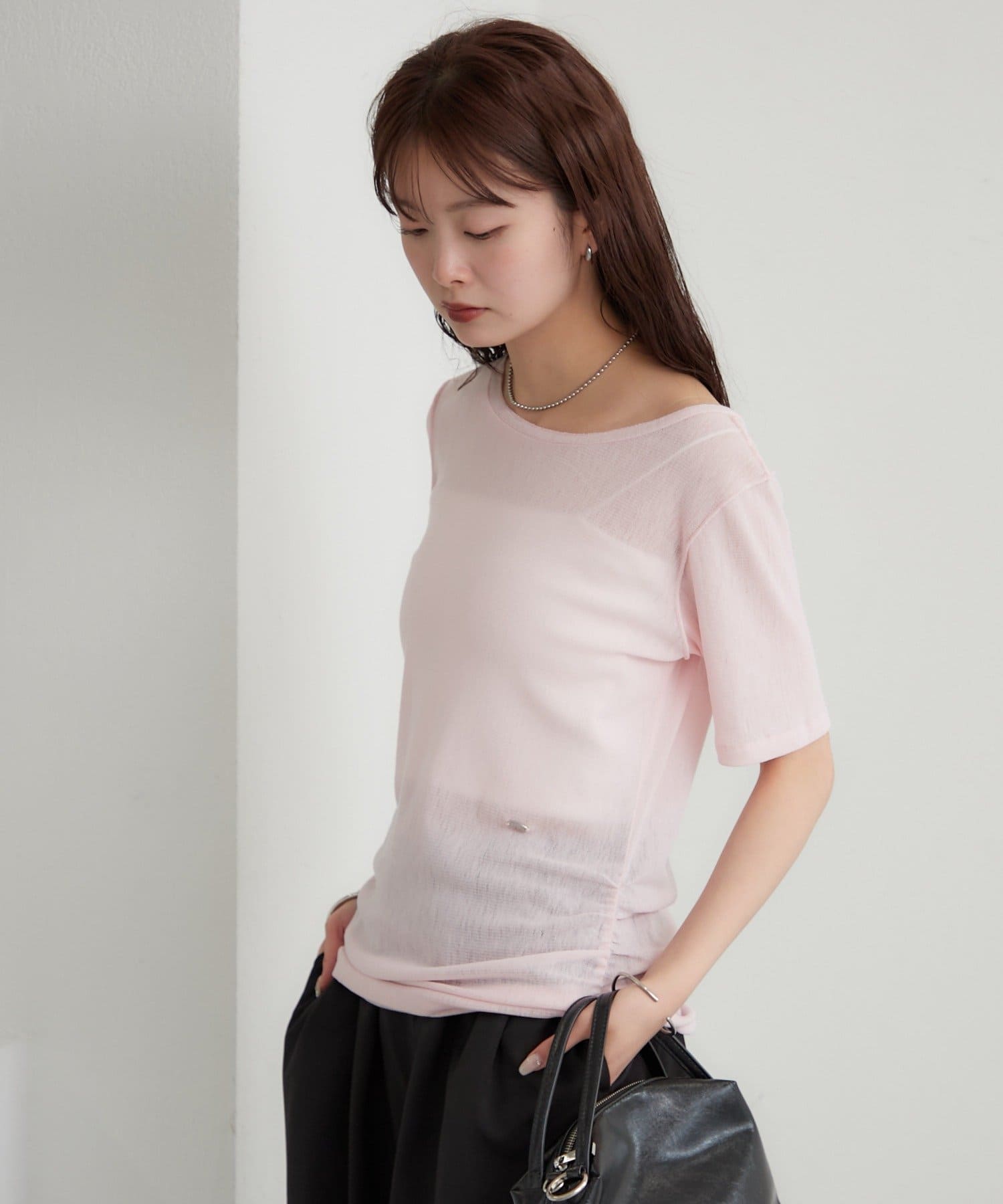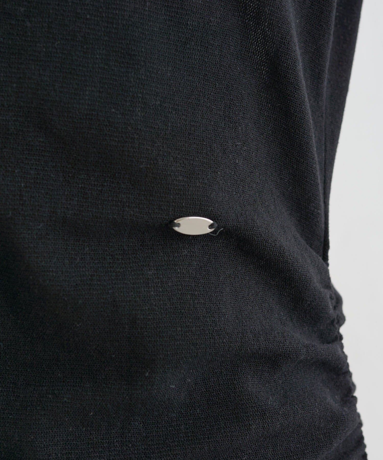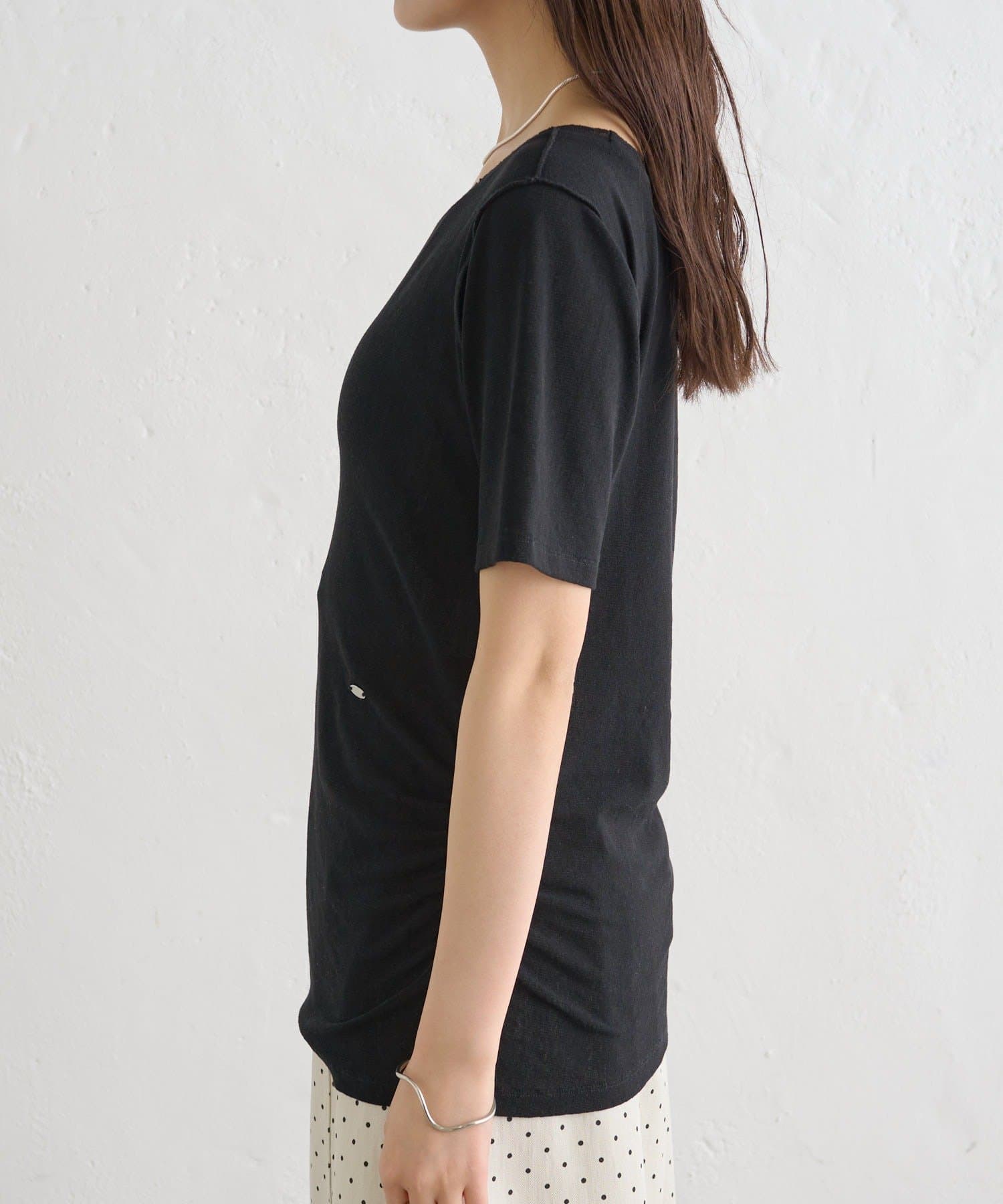 ワンポイントプレート付き サイドギャザーシアーTシャツ