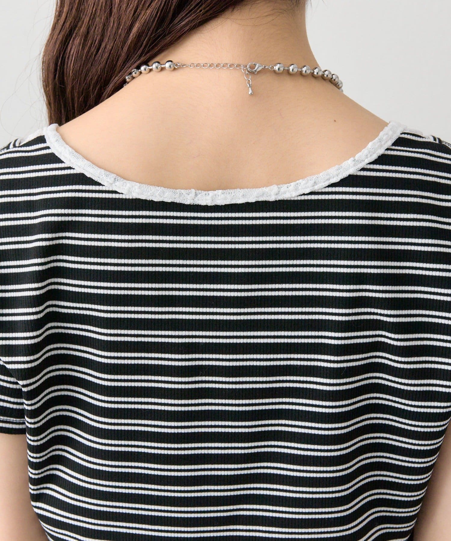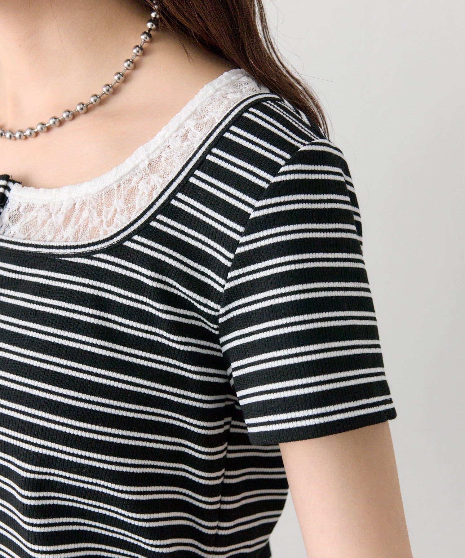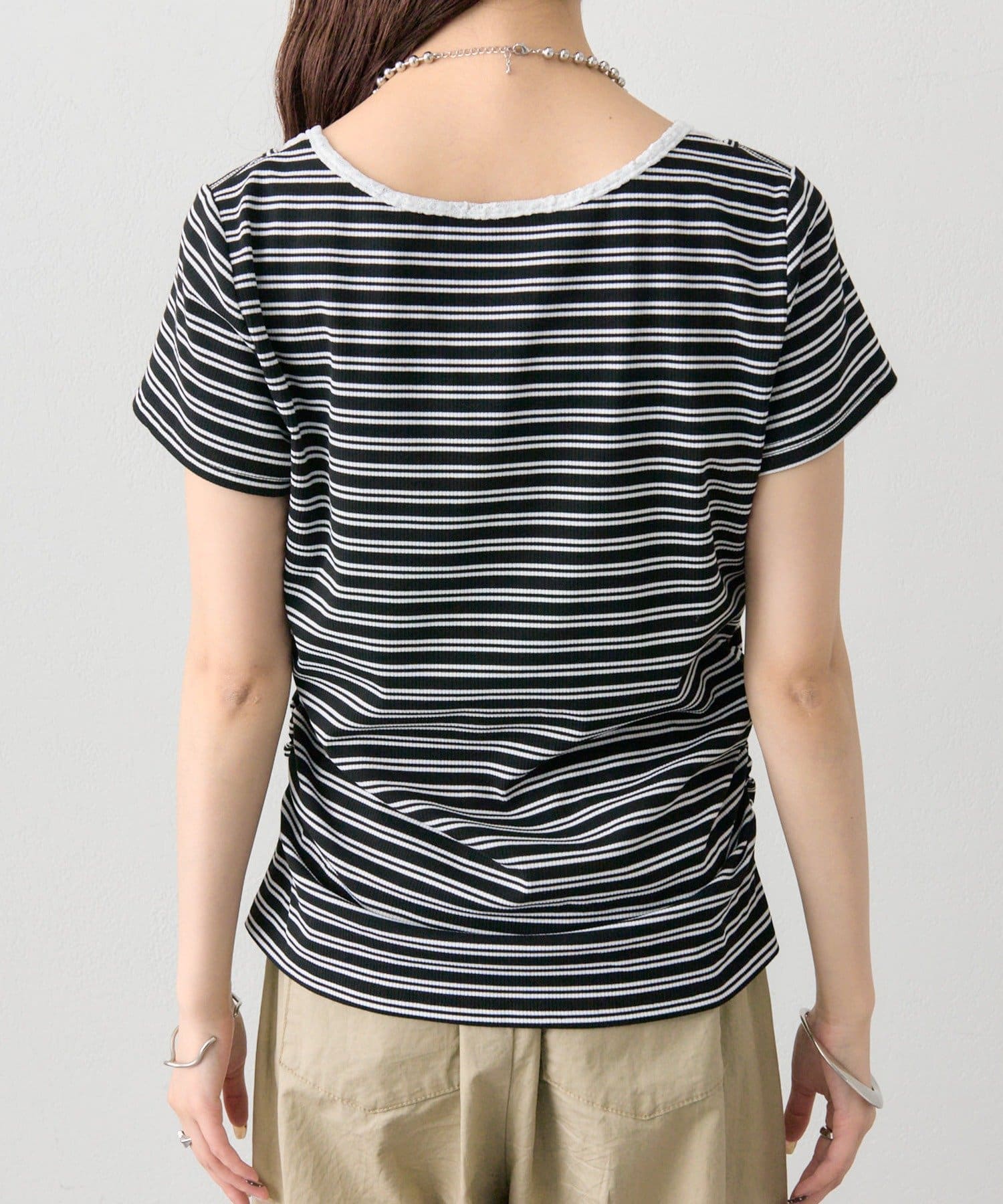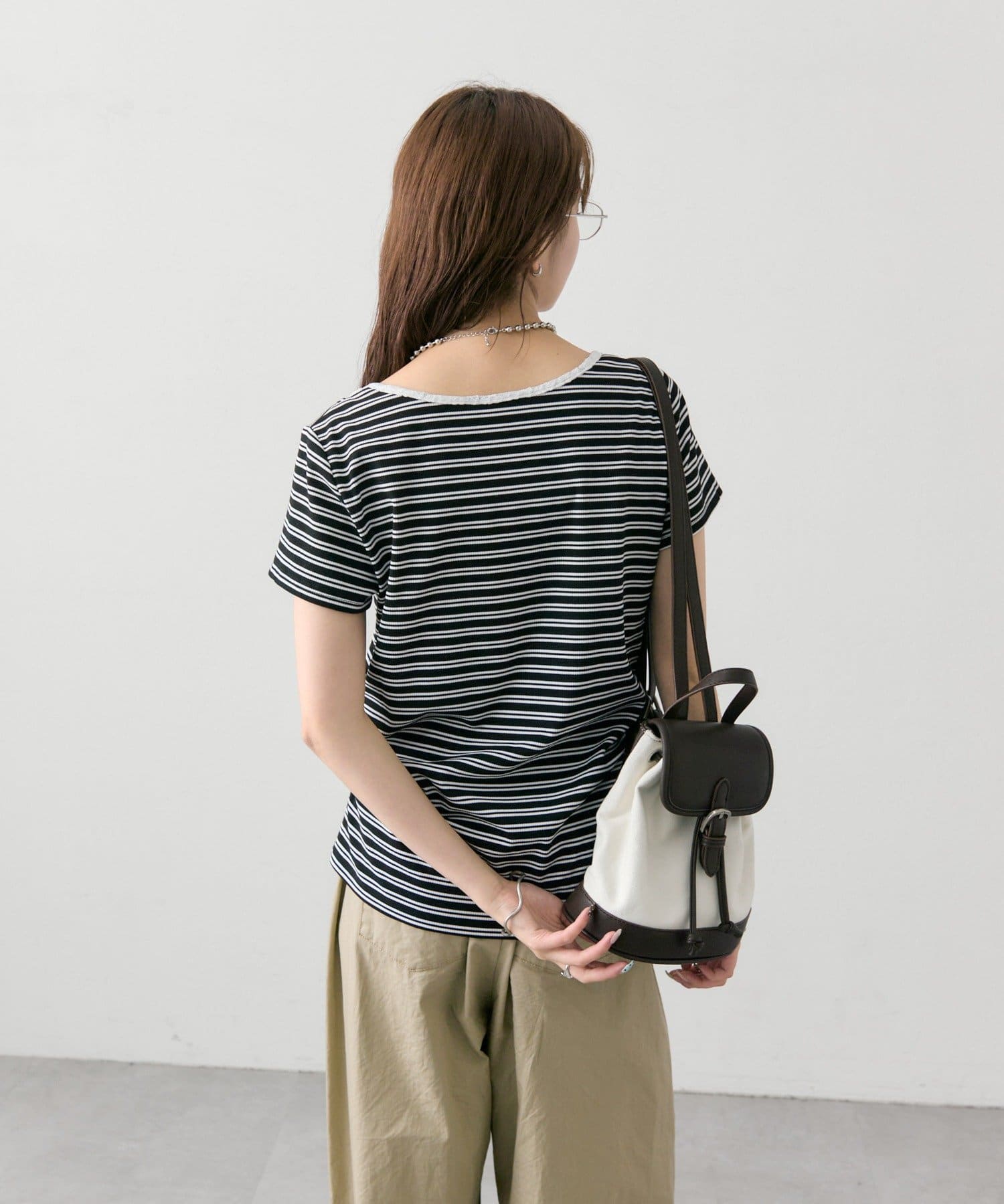 ・リブ素材で程よくフィットし、ボディラインをすっきり見せてくれる一枚です。