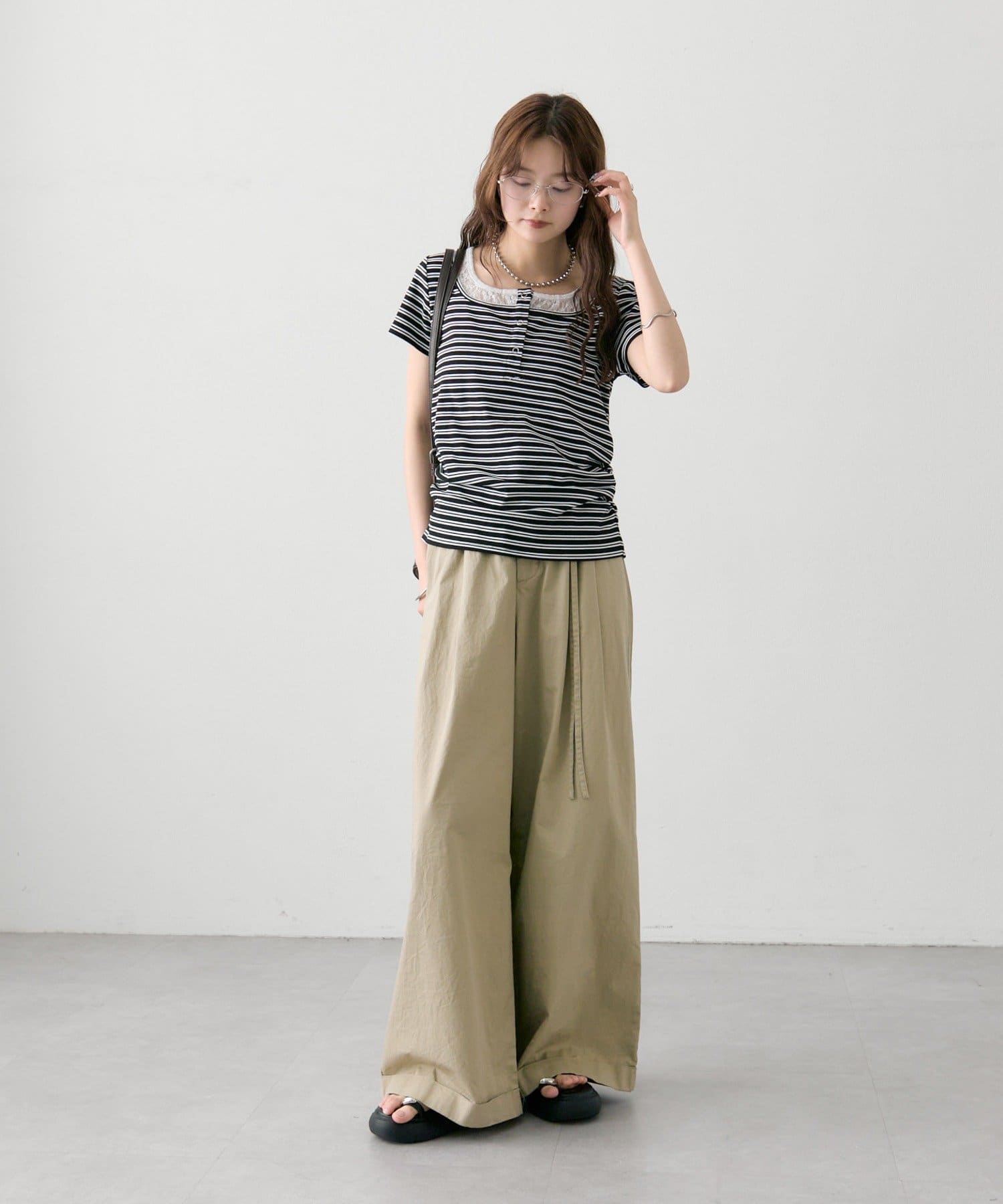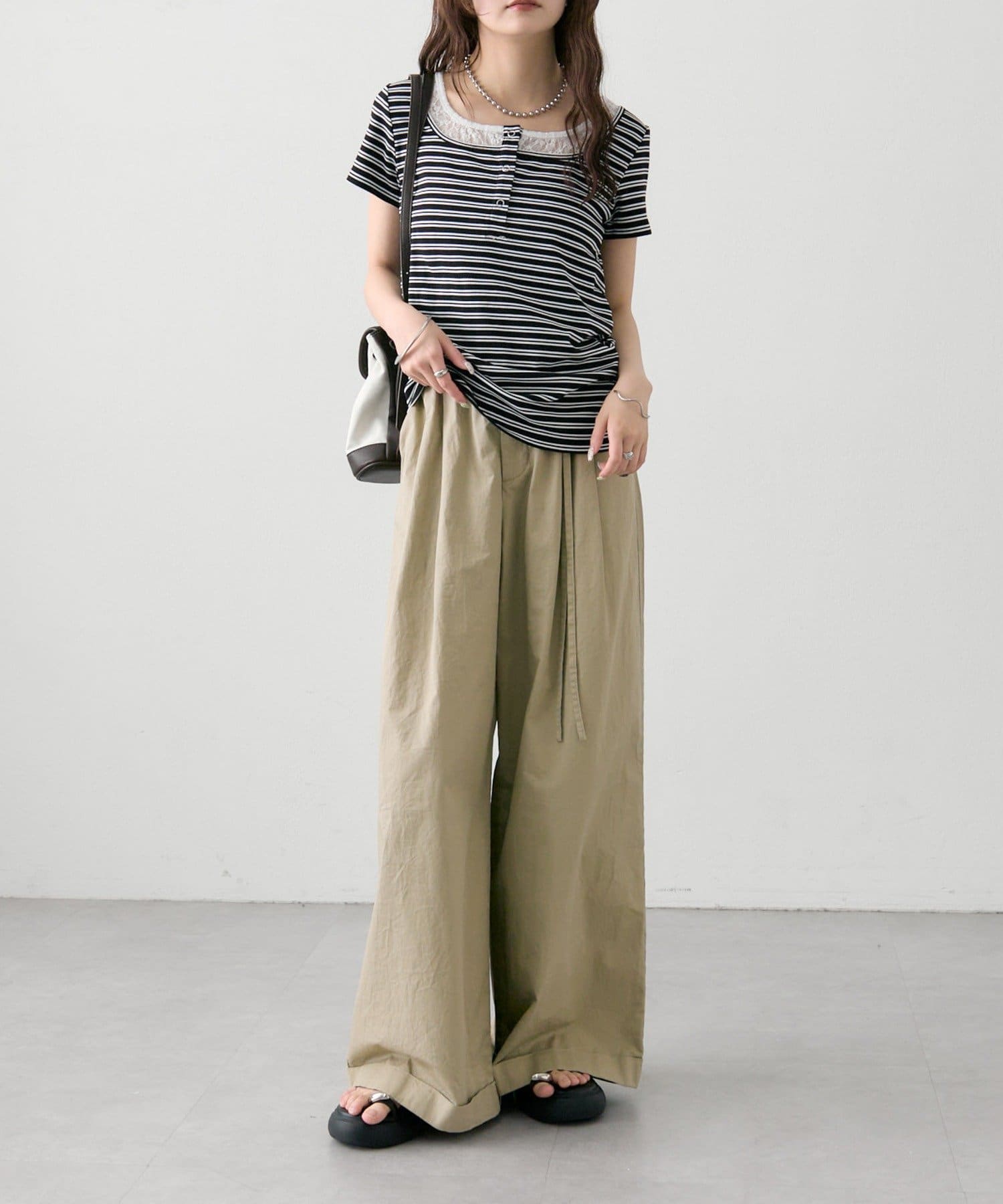 ワイドベルトタックパンツ