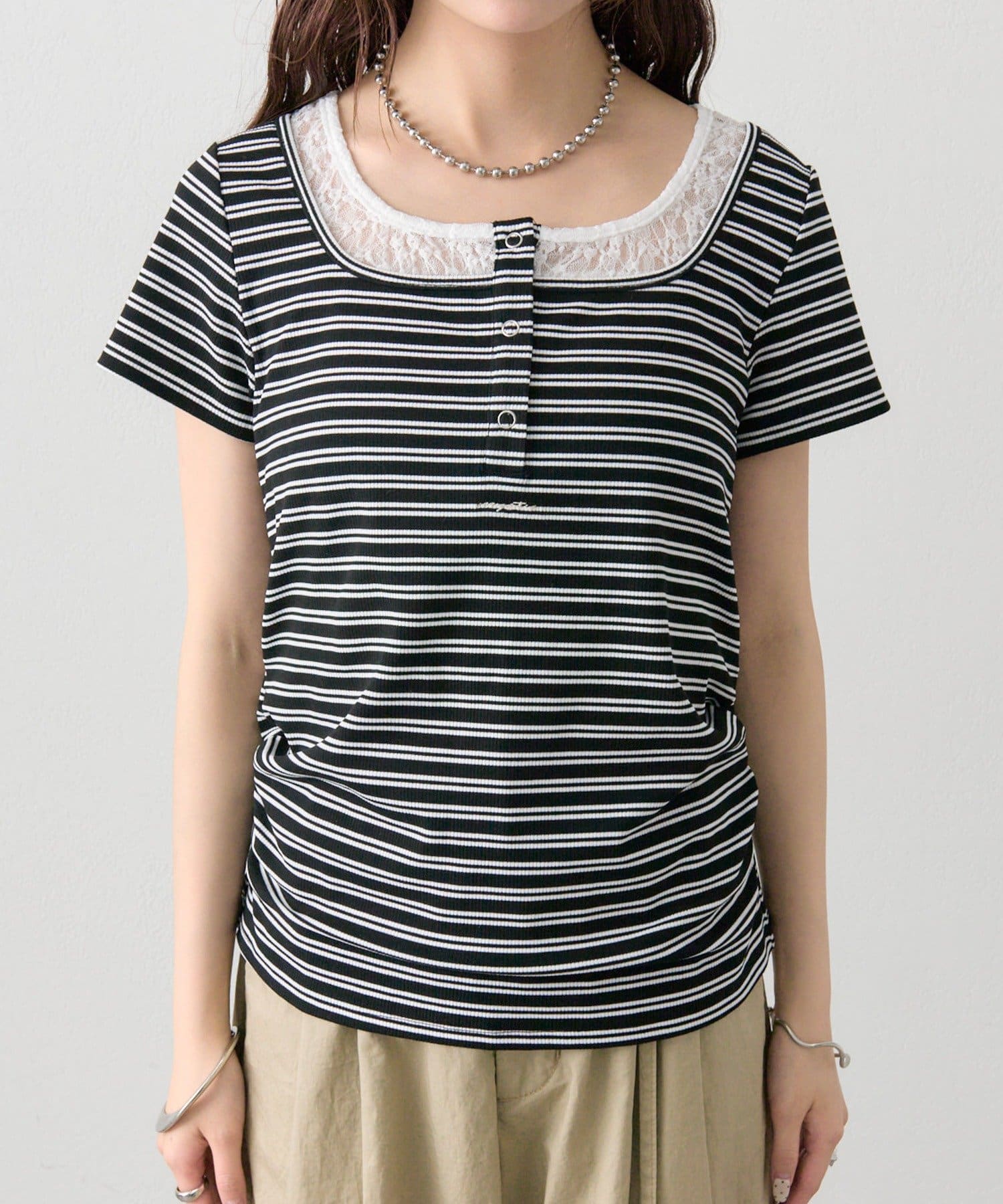 TOP > mystic > レディース > トップス > Tシャツ/カットソー > スクエアネックヘンリーTシャツ