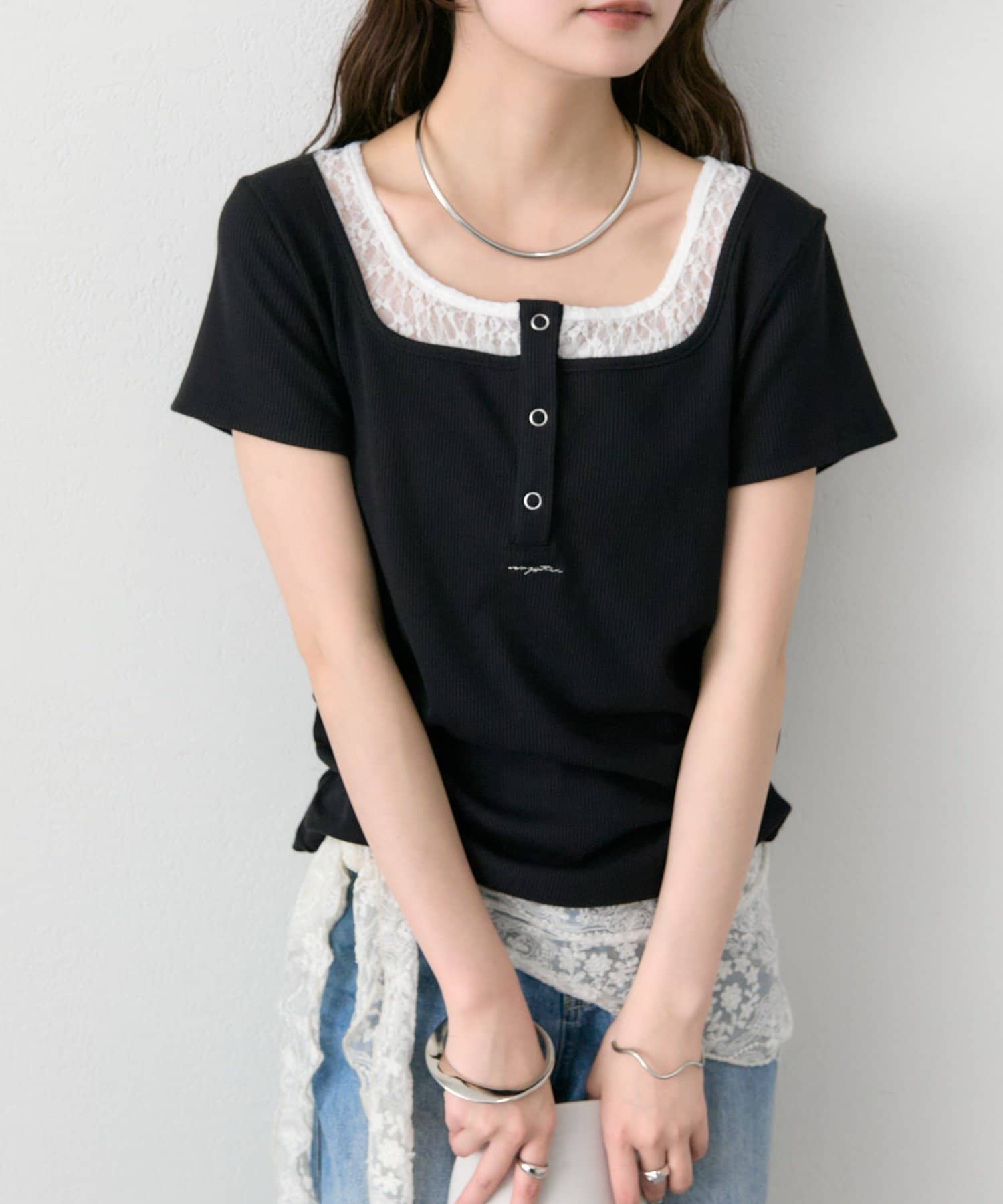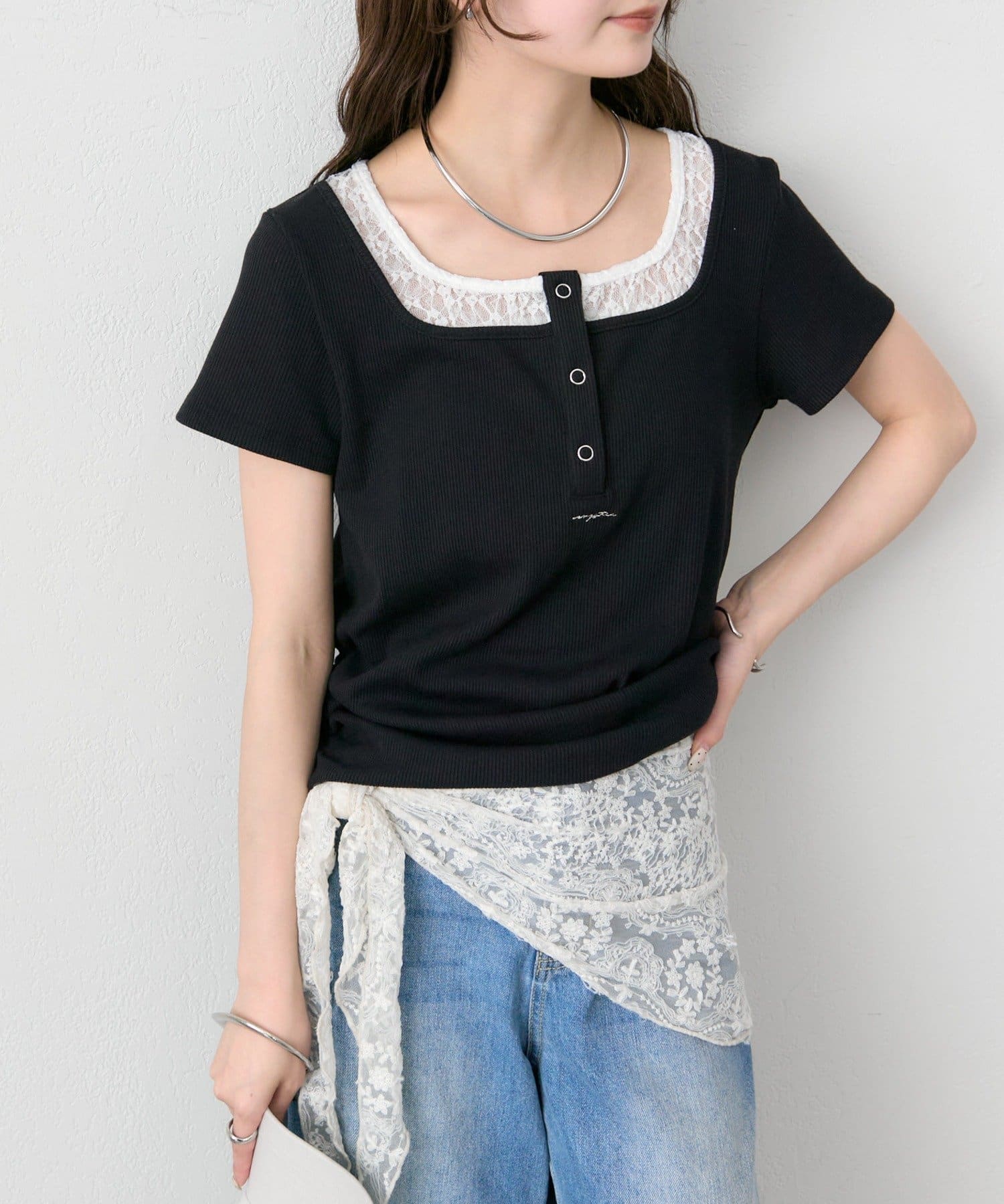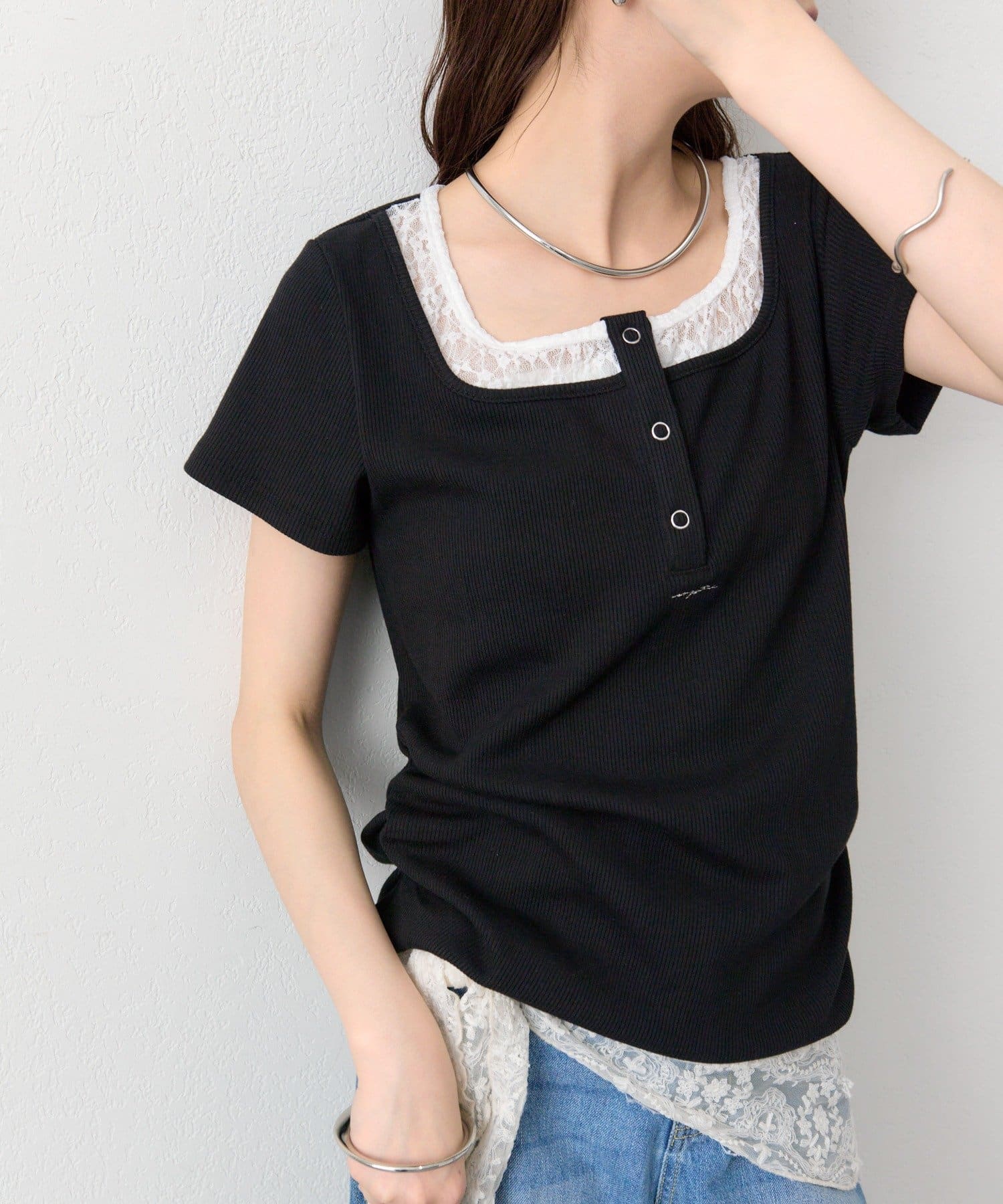 スクエアネックヘンリーTシャツ
