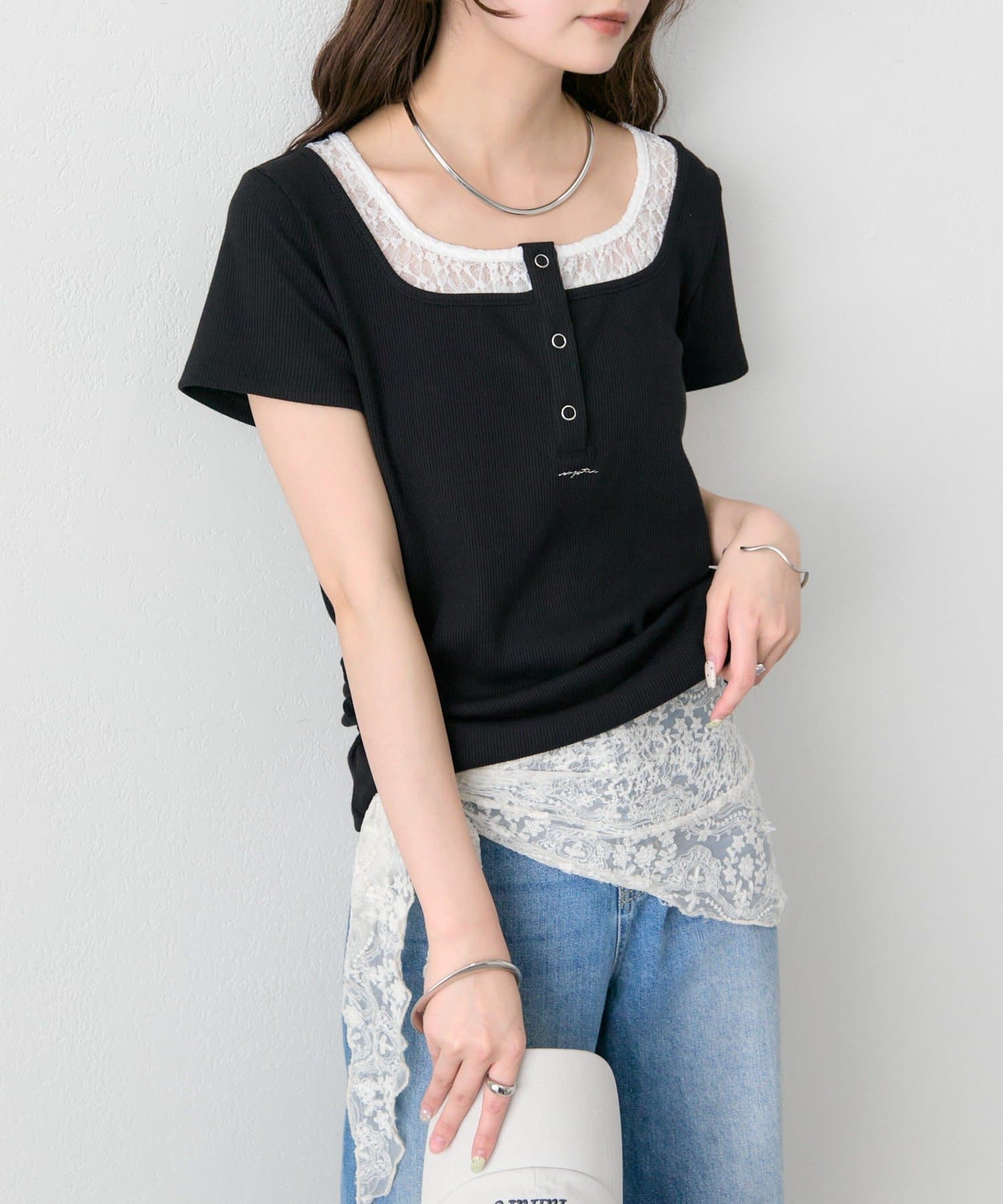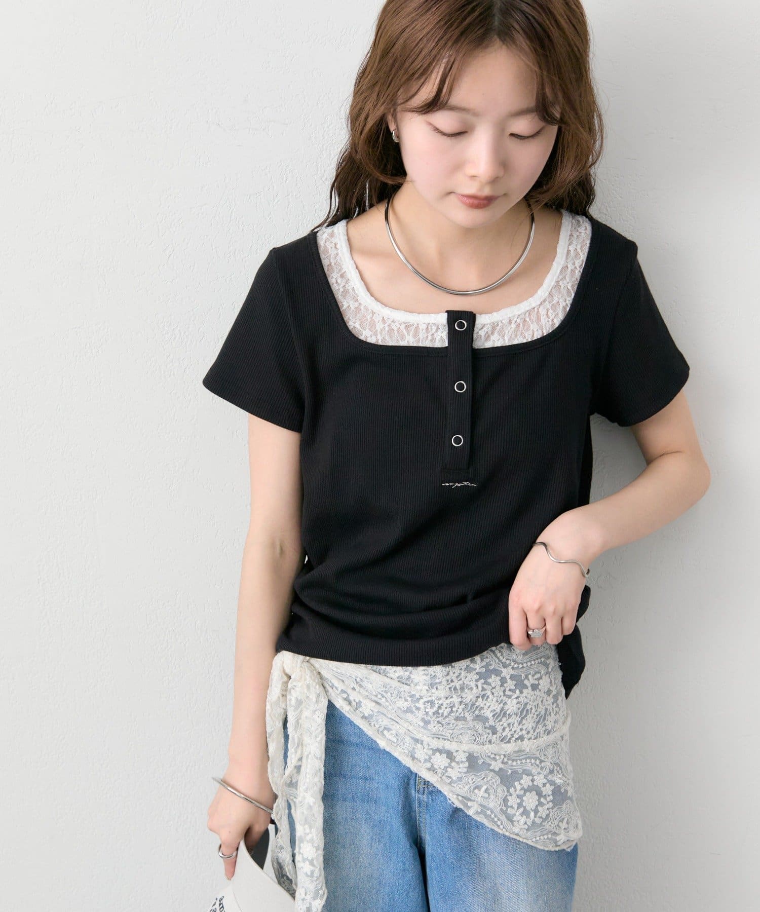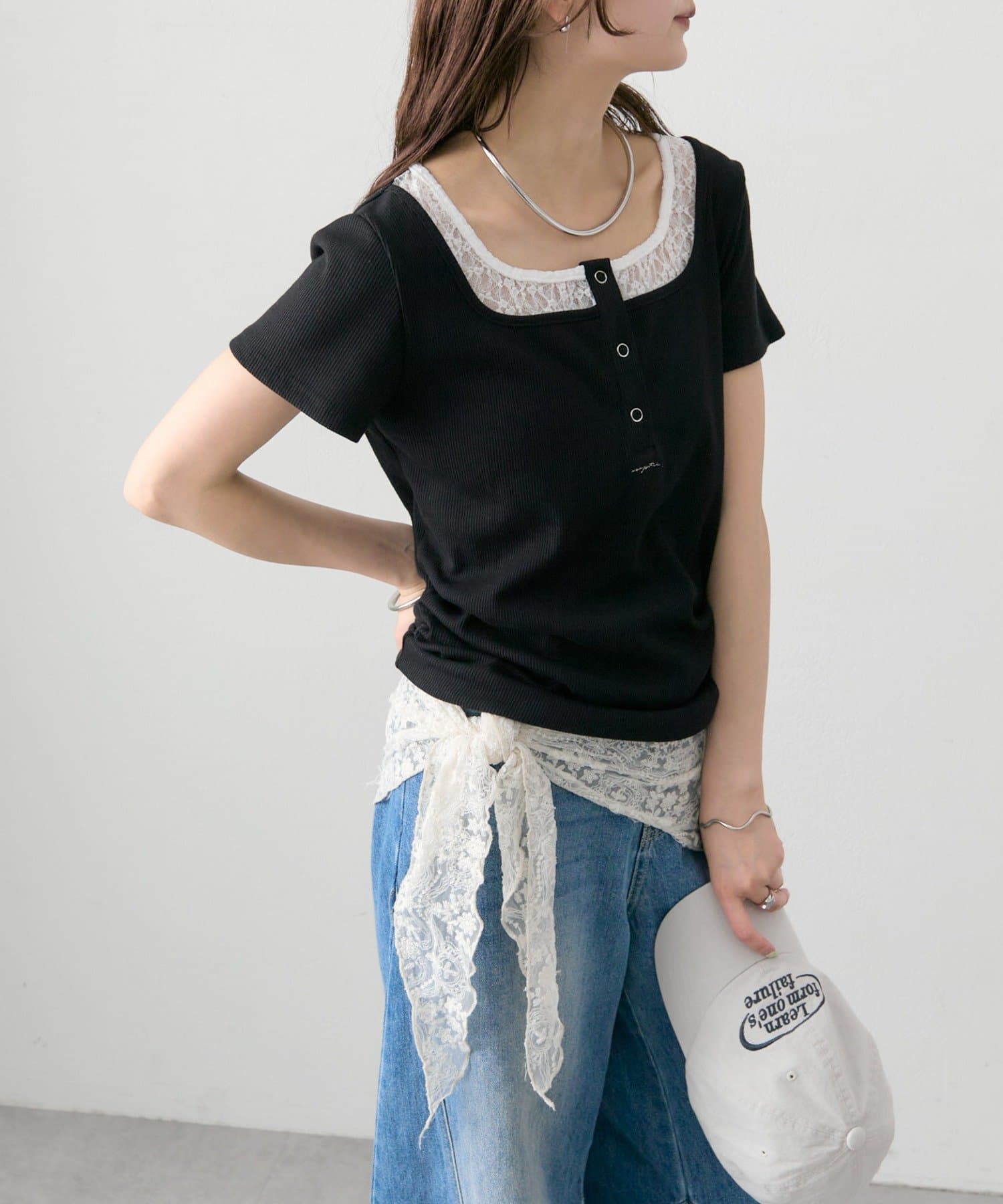 スクエアネックヘンリーTシャツ