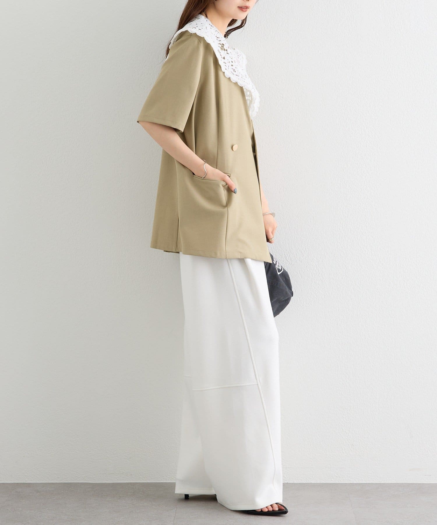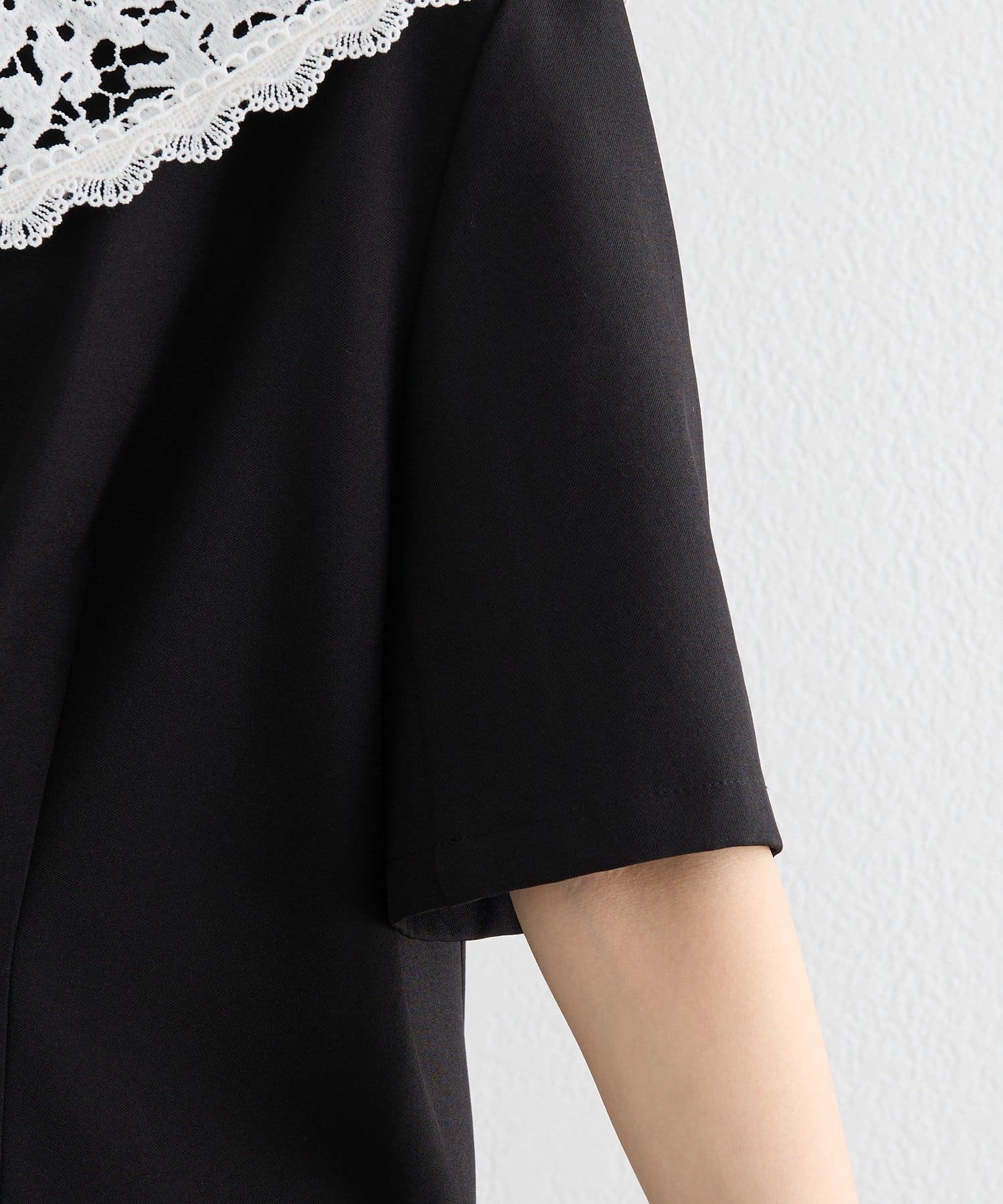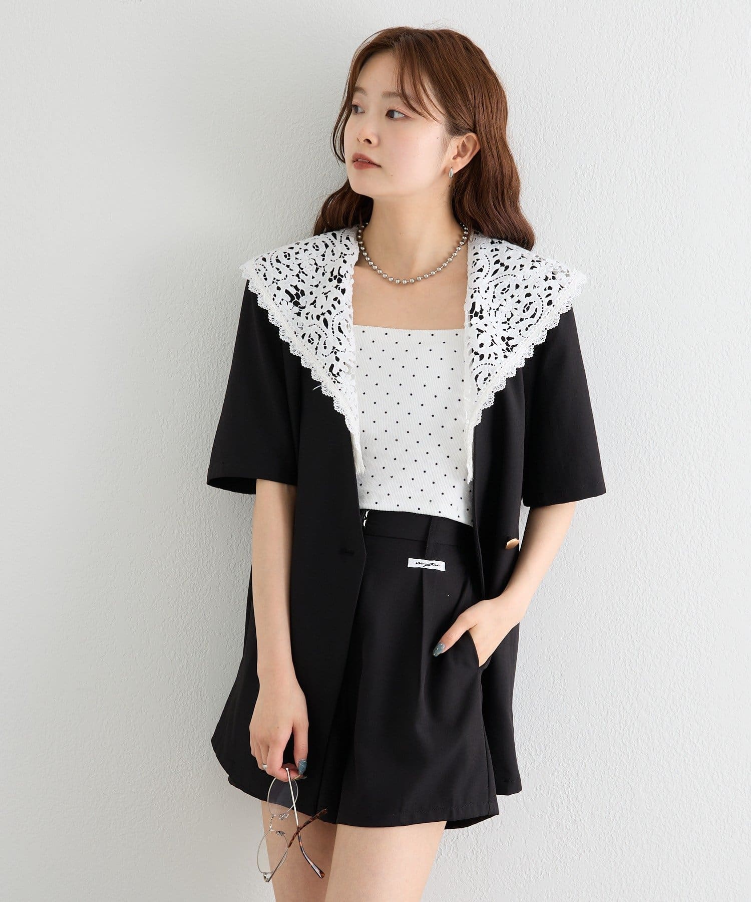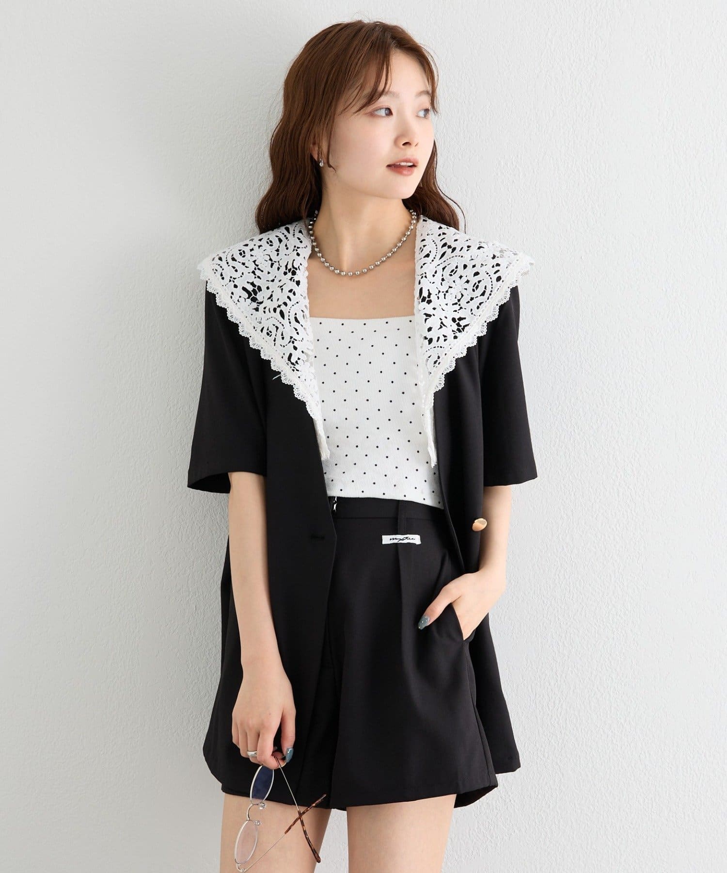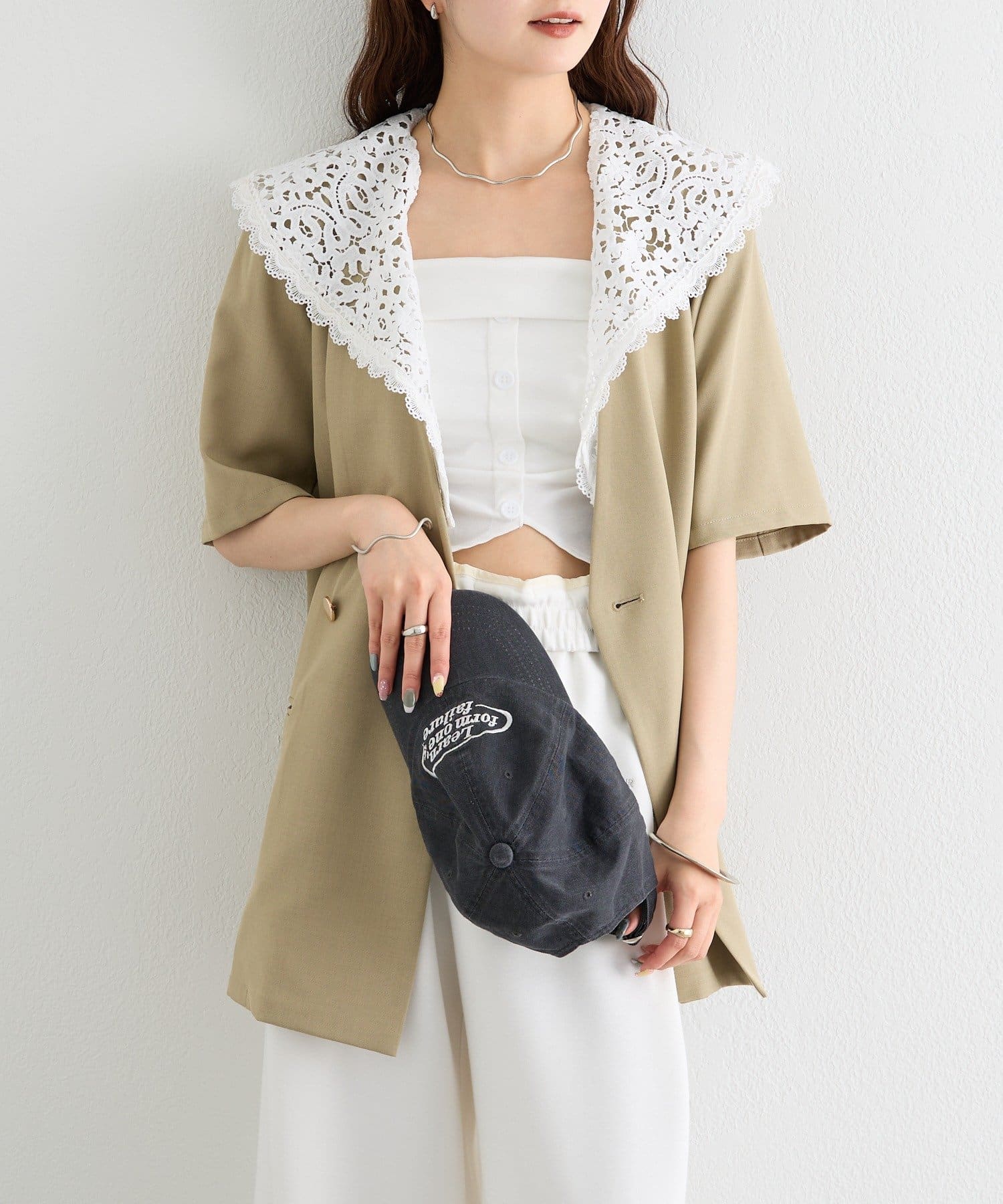 レースの付け襟でクラシカルも抜け感も叶う半袖ジャケット