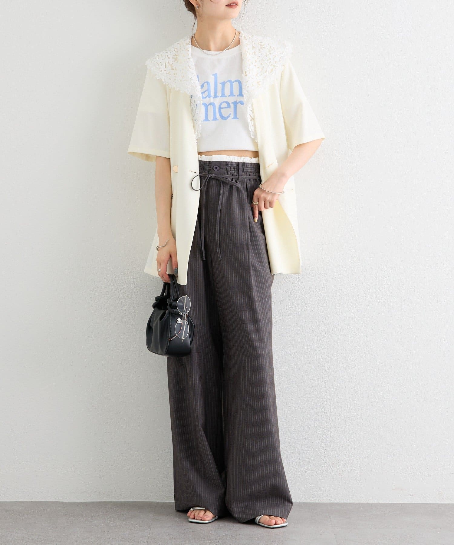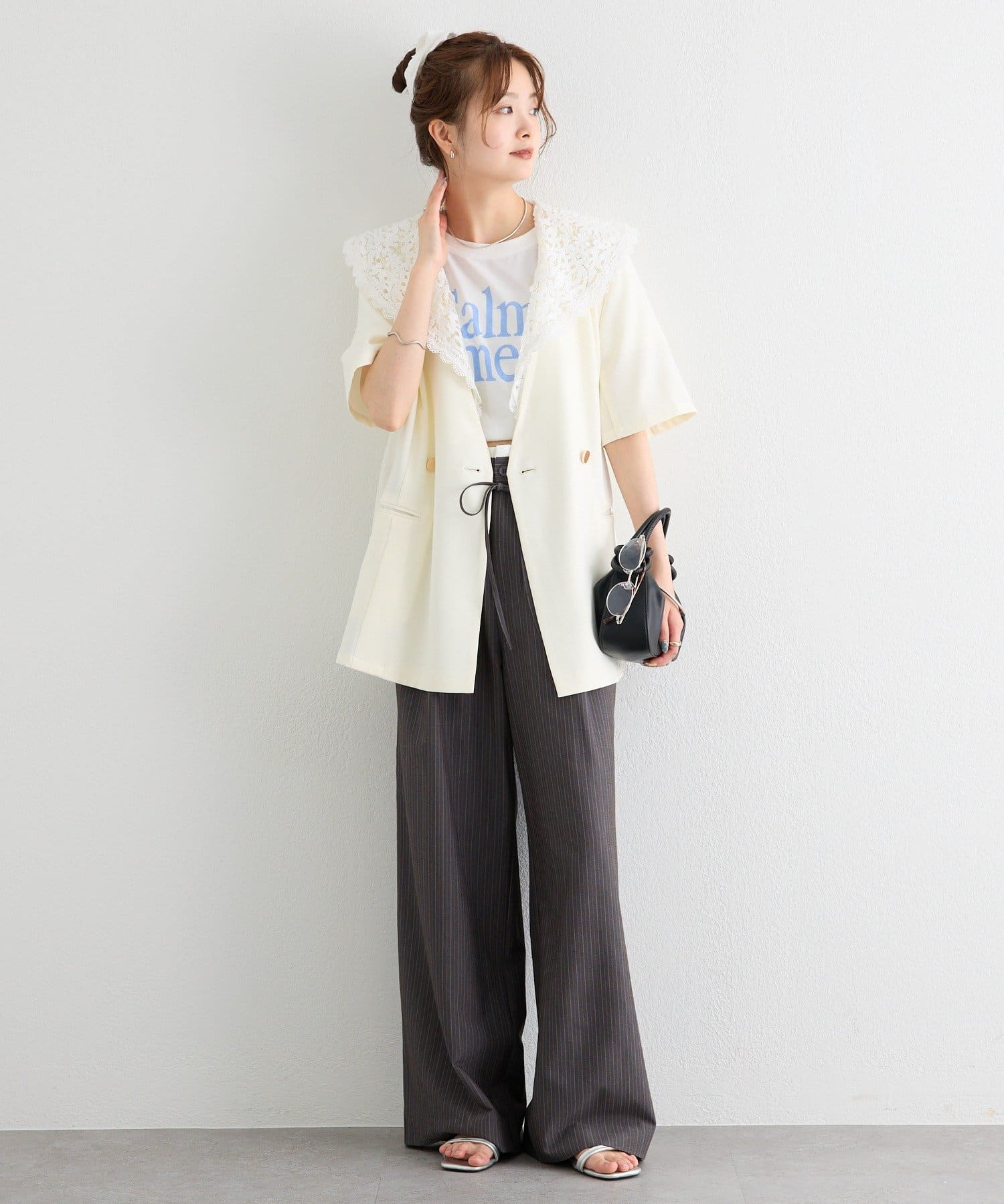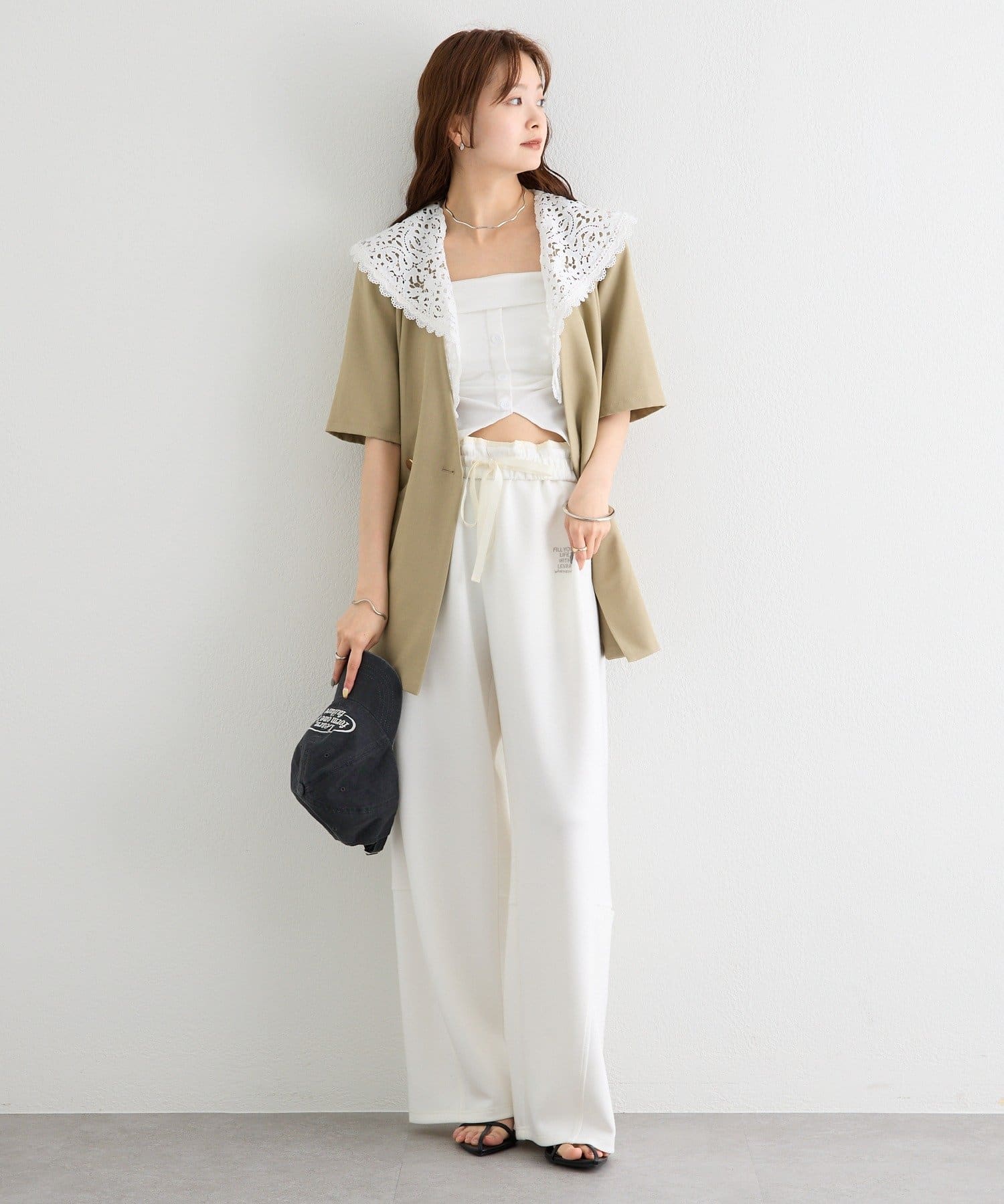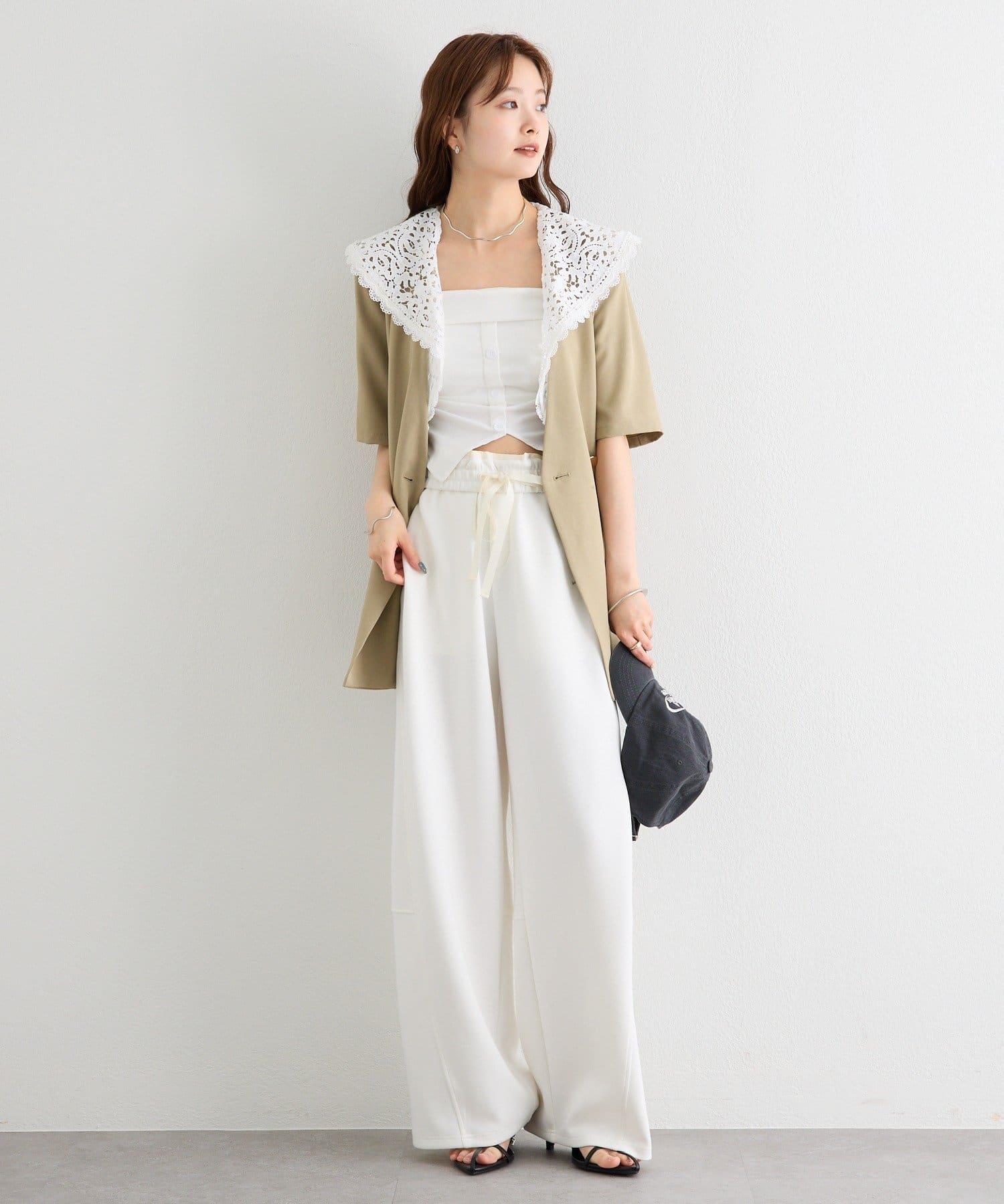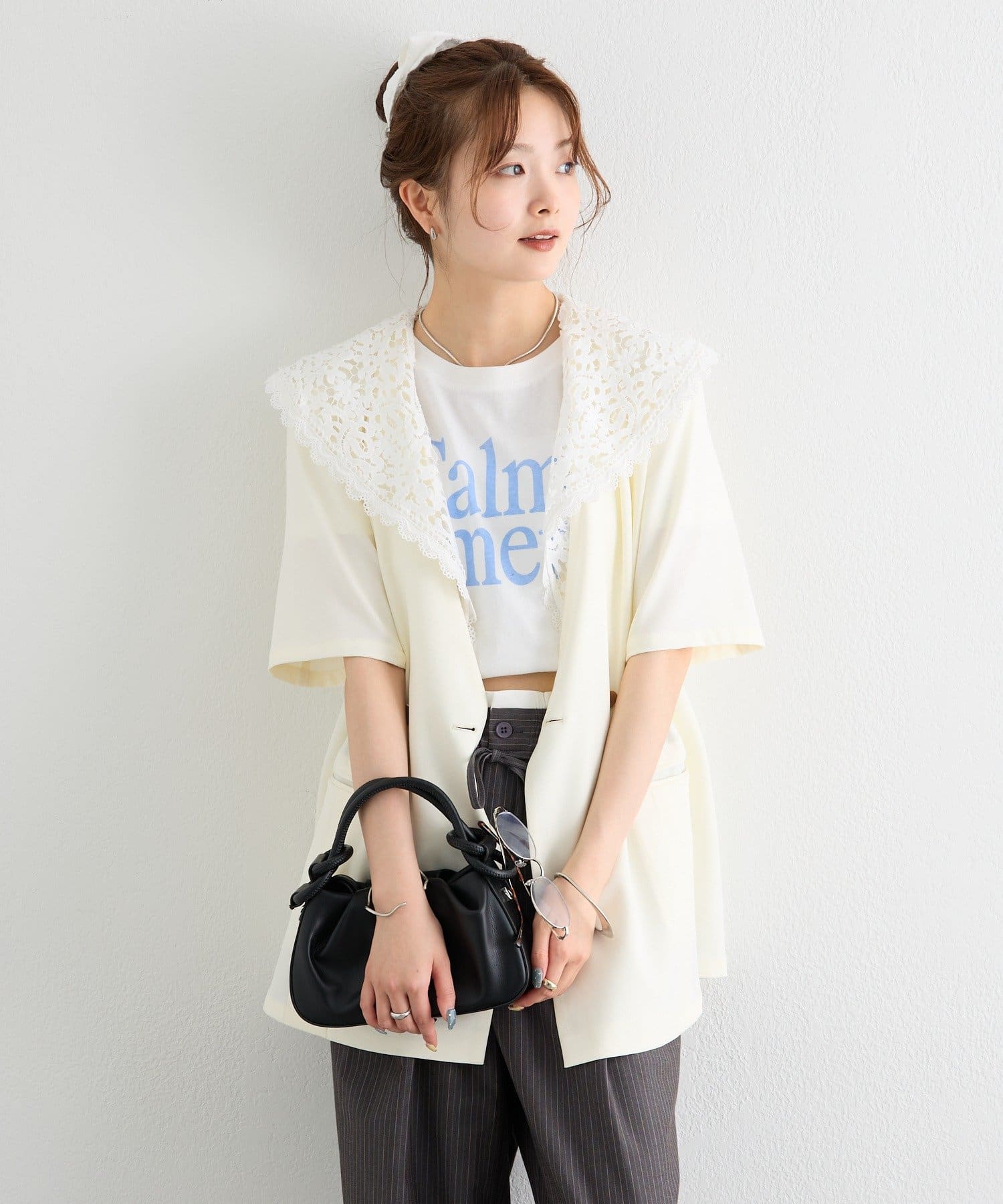 ・クラシカルなレースディティールが顔周りを華やかに見せつつ、外せばシンプルでミニマルな印象にも。
