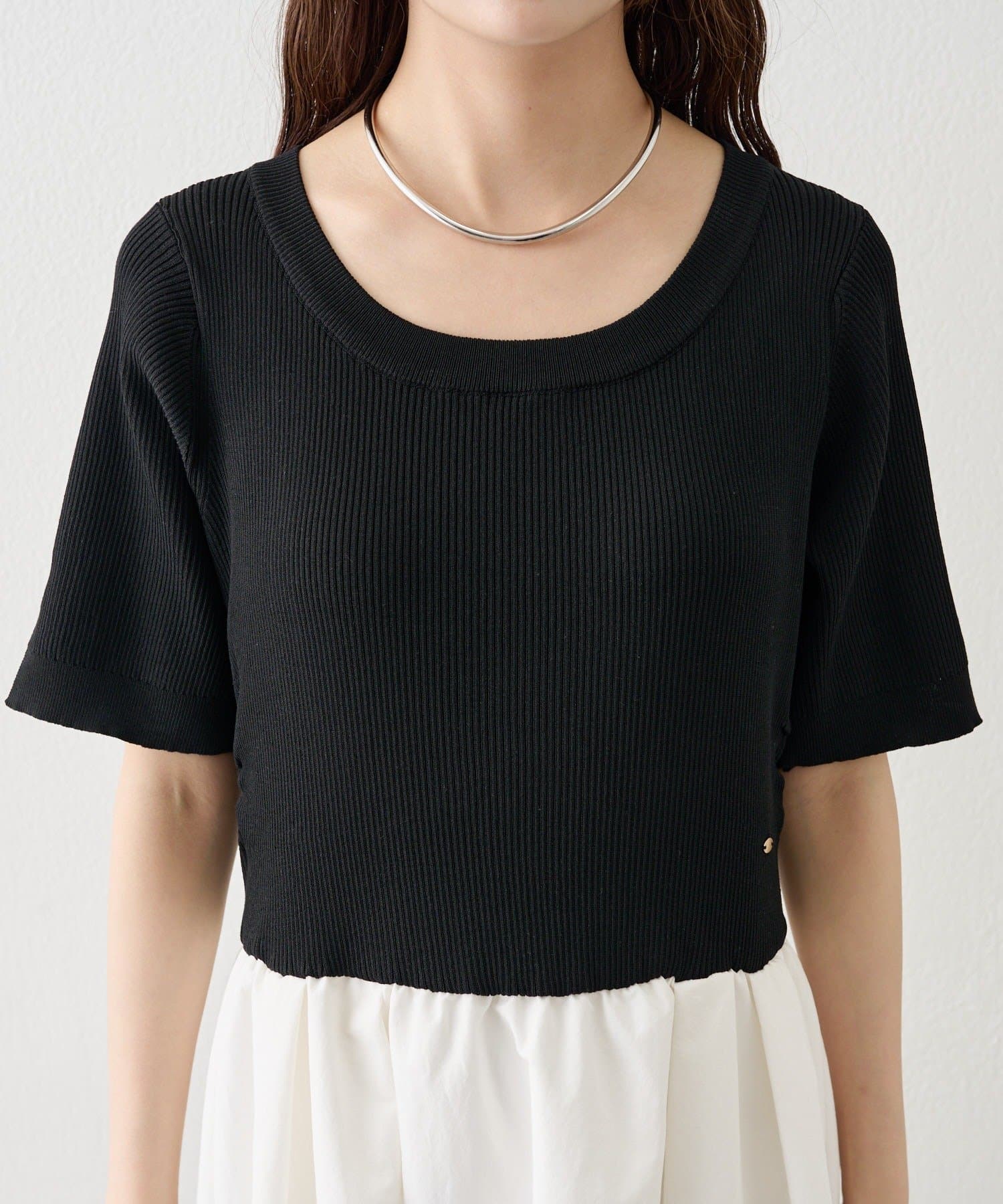 ・気になる腕周り、肩周りも強調され過ぎないような程よいリブニット素材です。