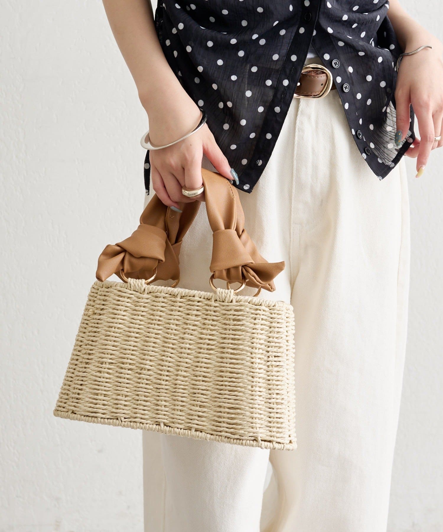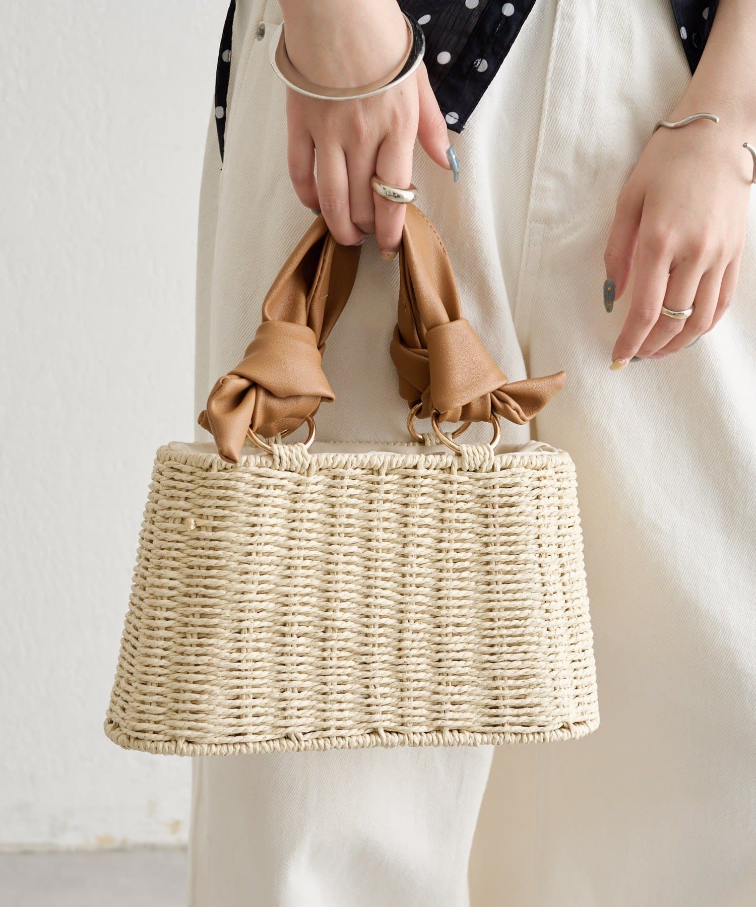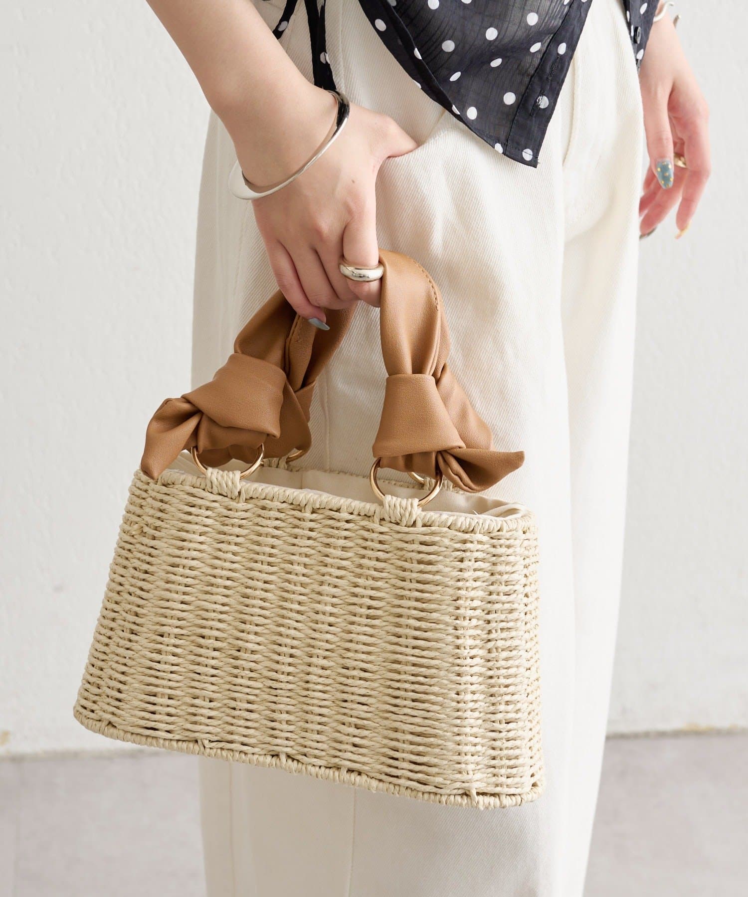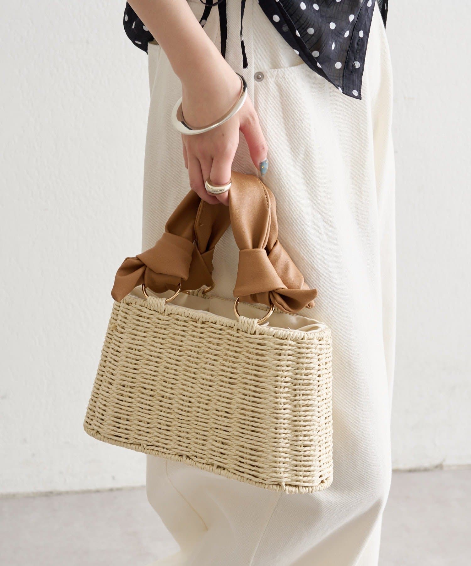 トレンド感のある結び目デザインがポイントのかごBAG