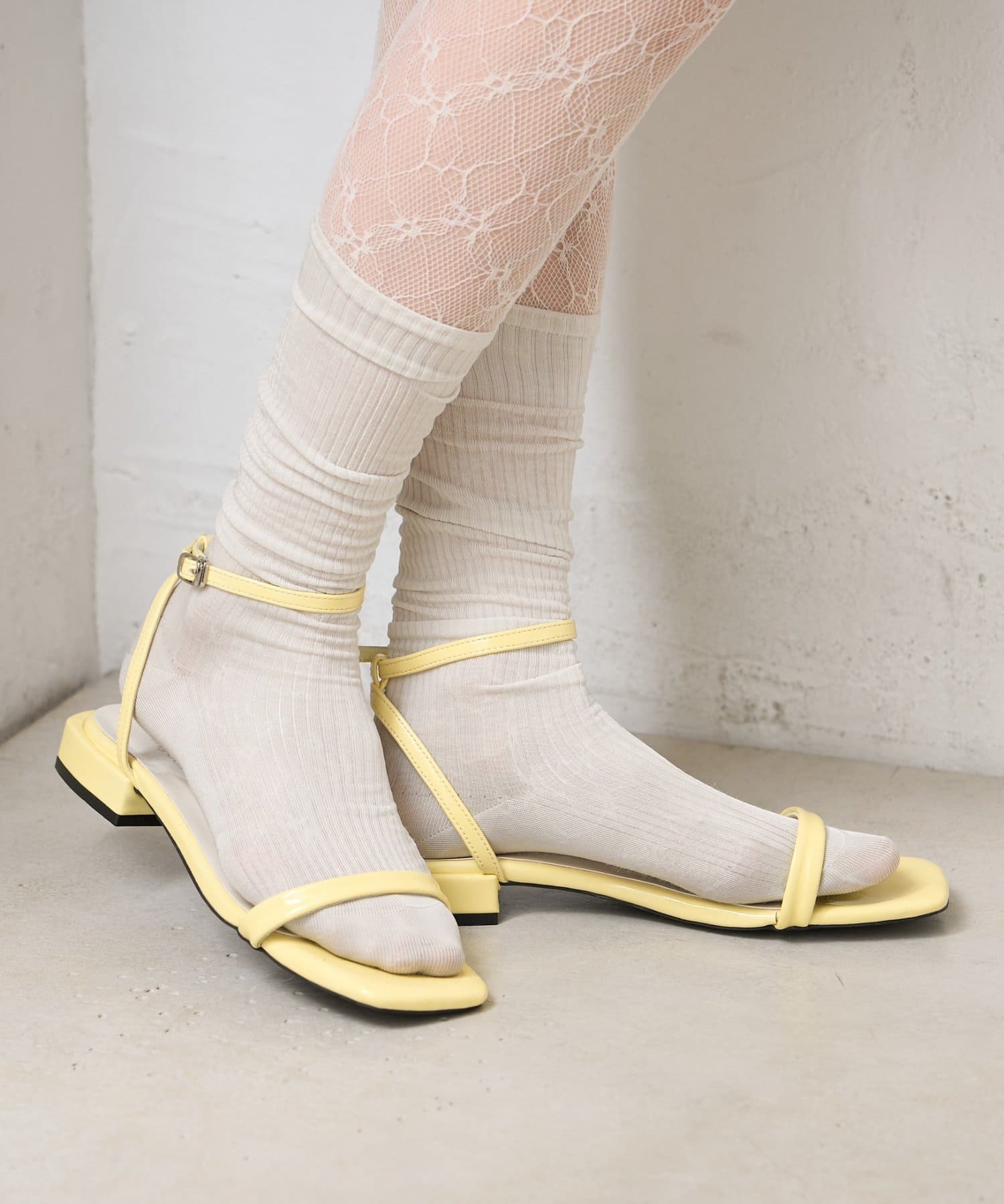 ・細目のストラップなのでロング丈のボトムスと合わせて足元に抜け感を出すのが◎
