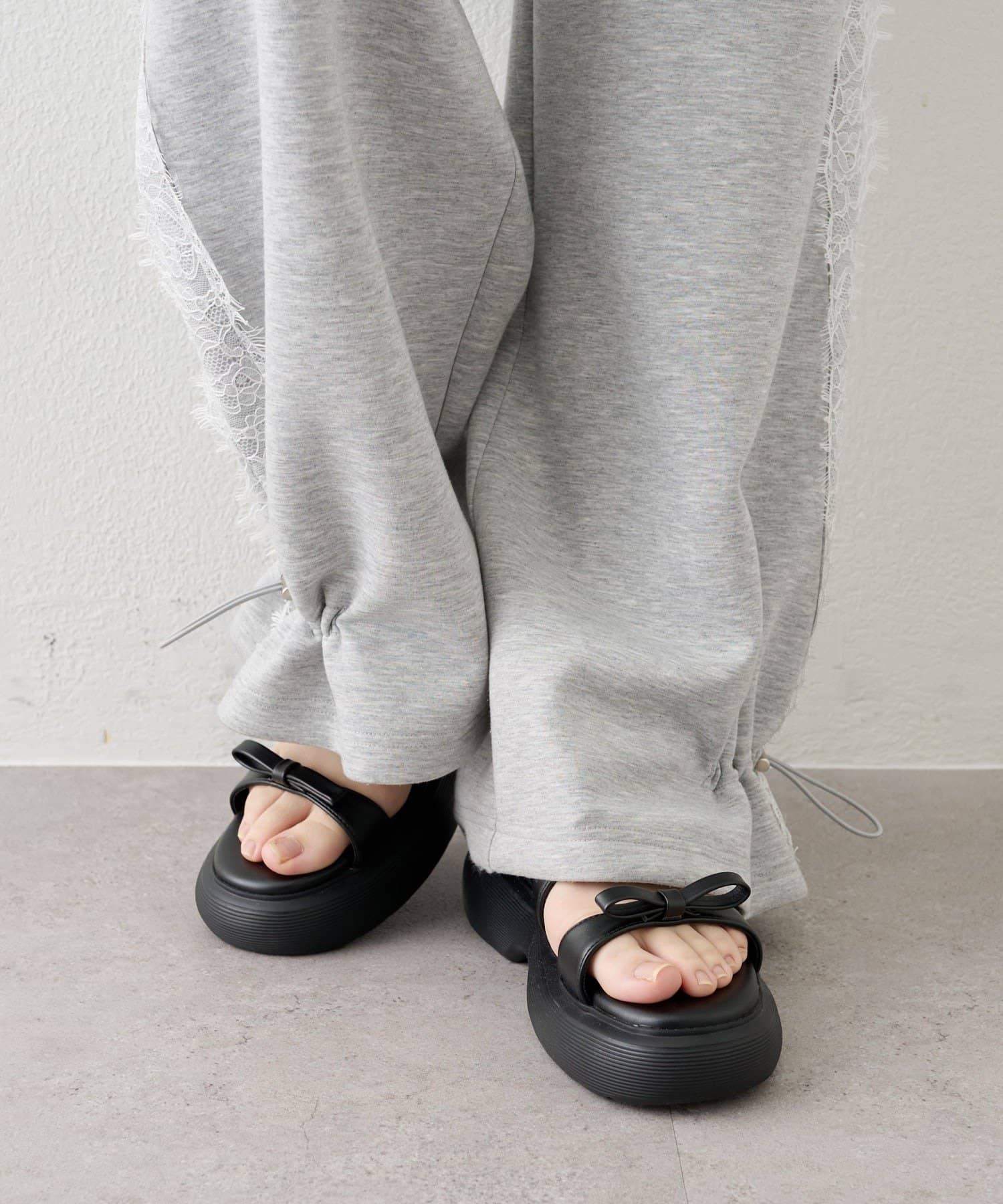 リボンディテールが足元に甘さをプラスするボリュームソールサンダル