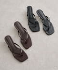 ・トングデザインで軽やかな印象に仕上げたヒールサンダル。