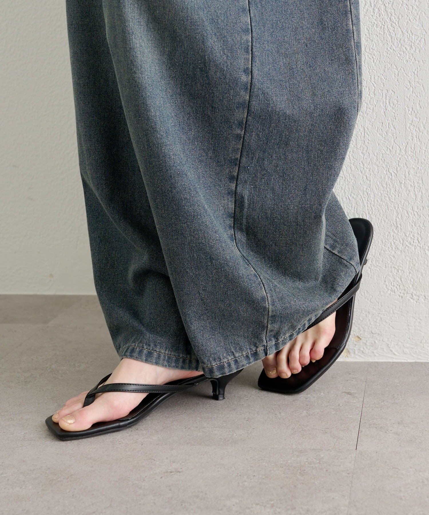 トングデザインが抜け感と女性らしさを両立するヒールサンダル