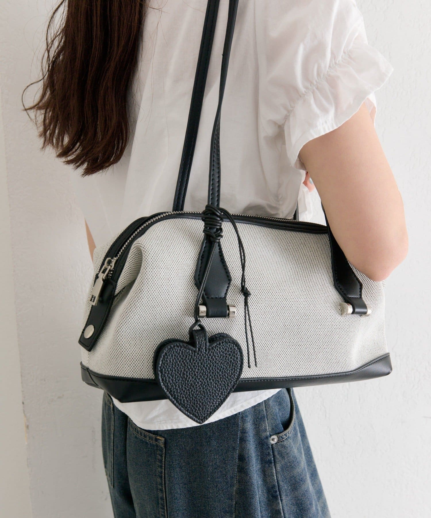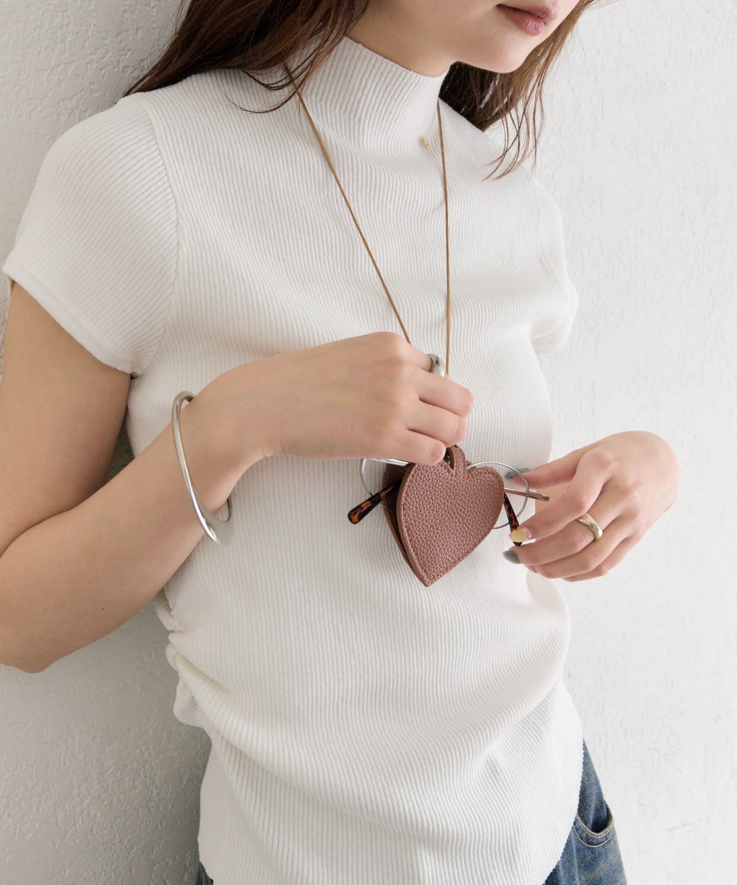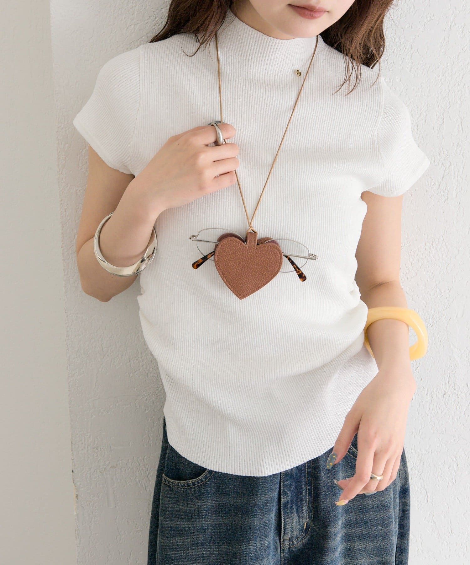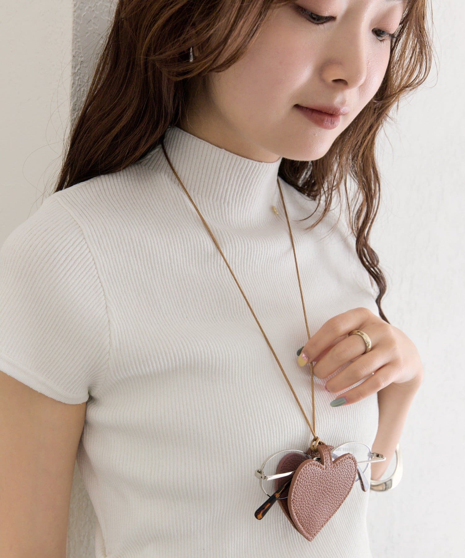 ハート形のモチーフが、コーディネートのアクセントに。