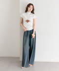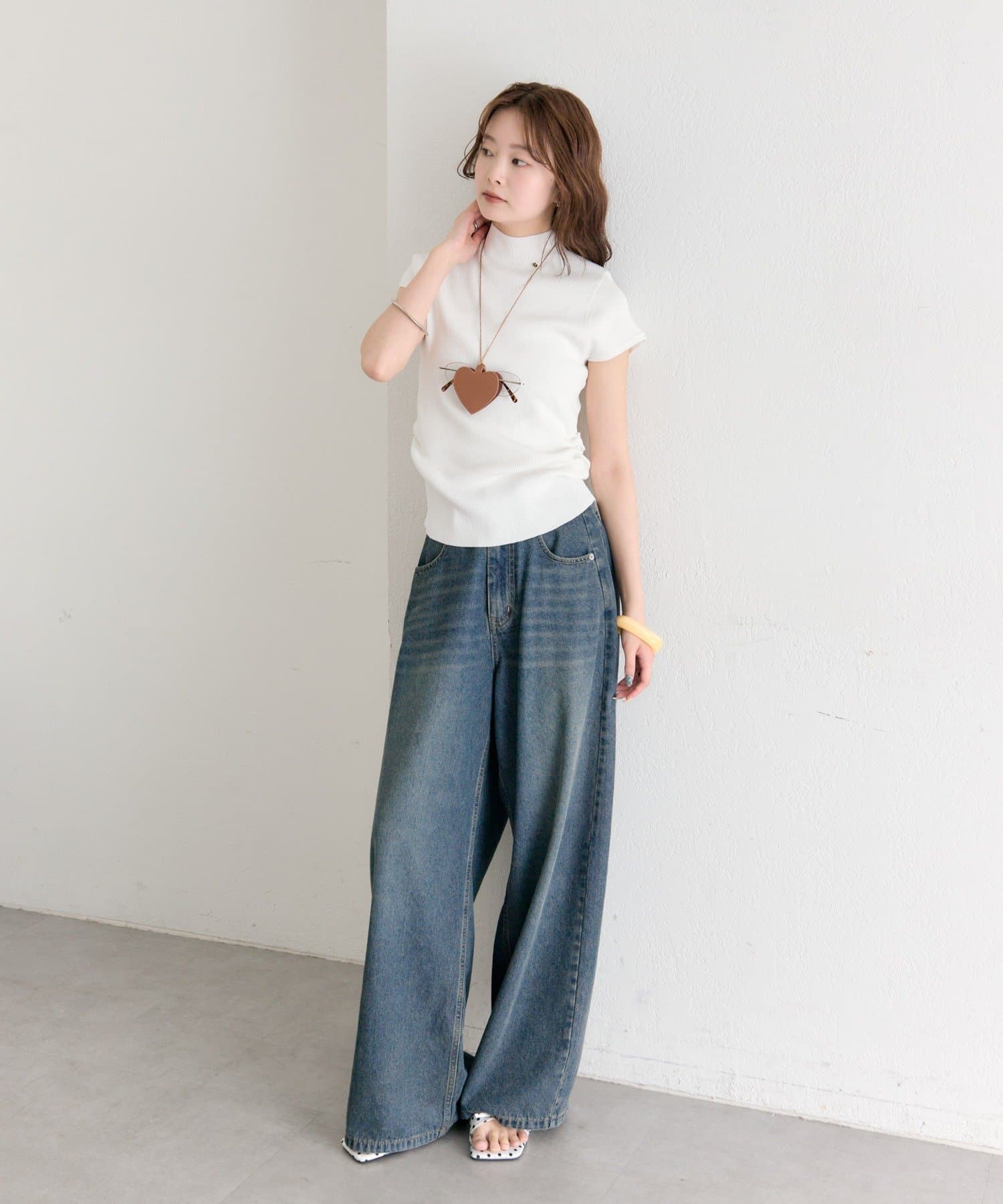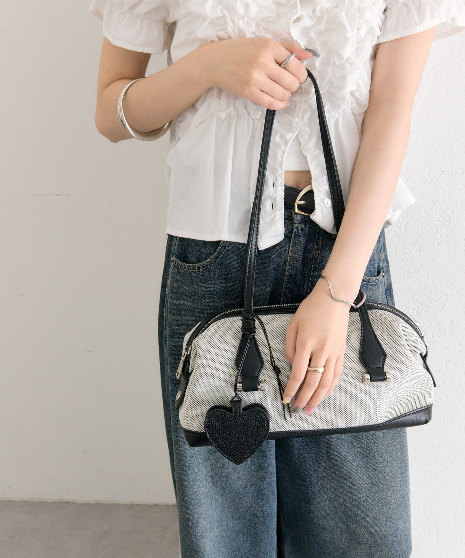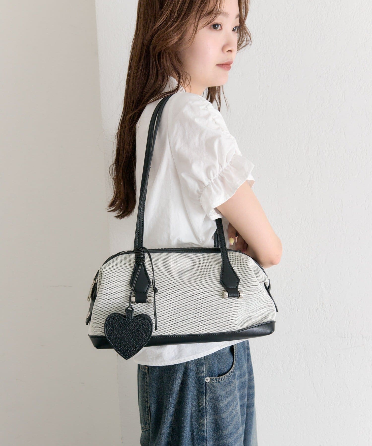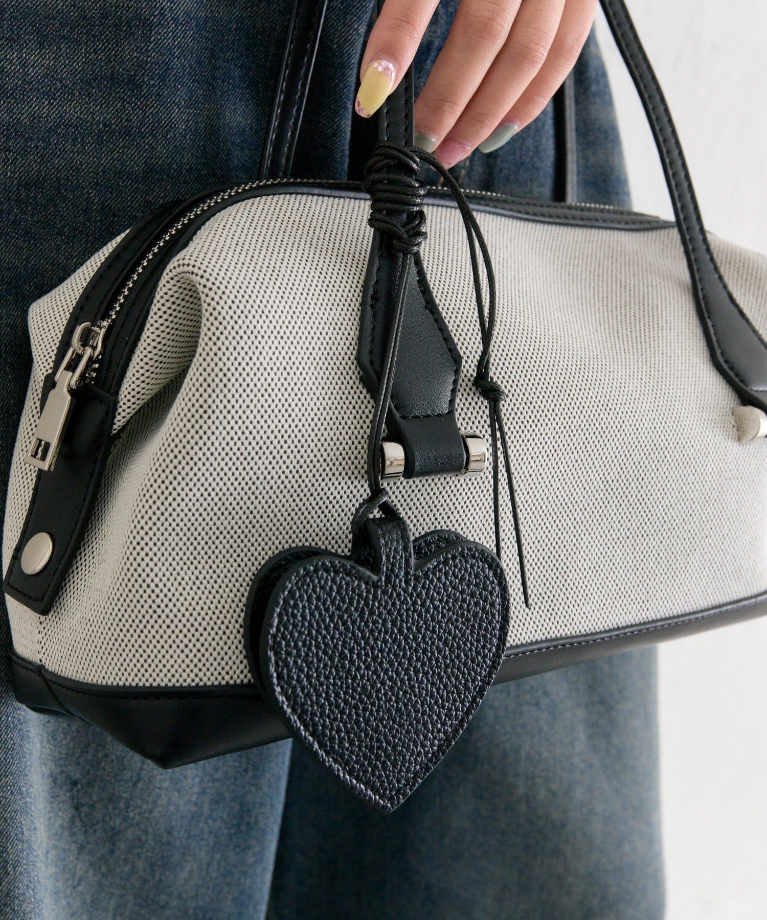 ハート形のモチーフが、コーディネートのアクセントに。
