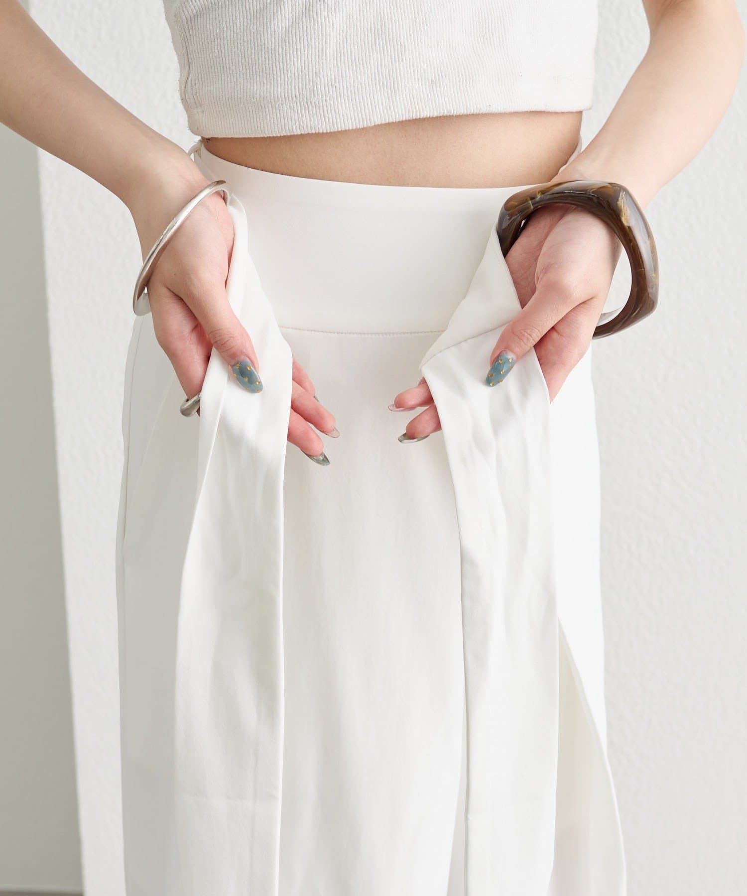 ・ウエスト部分にラップ仕様を取り入れた、立体感があるデザインのパンツ。