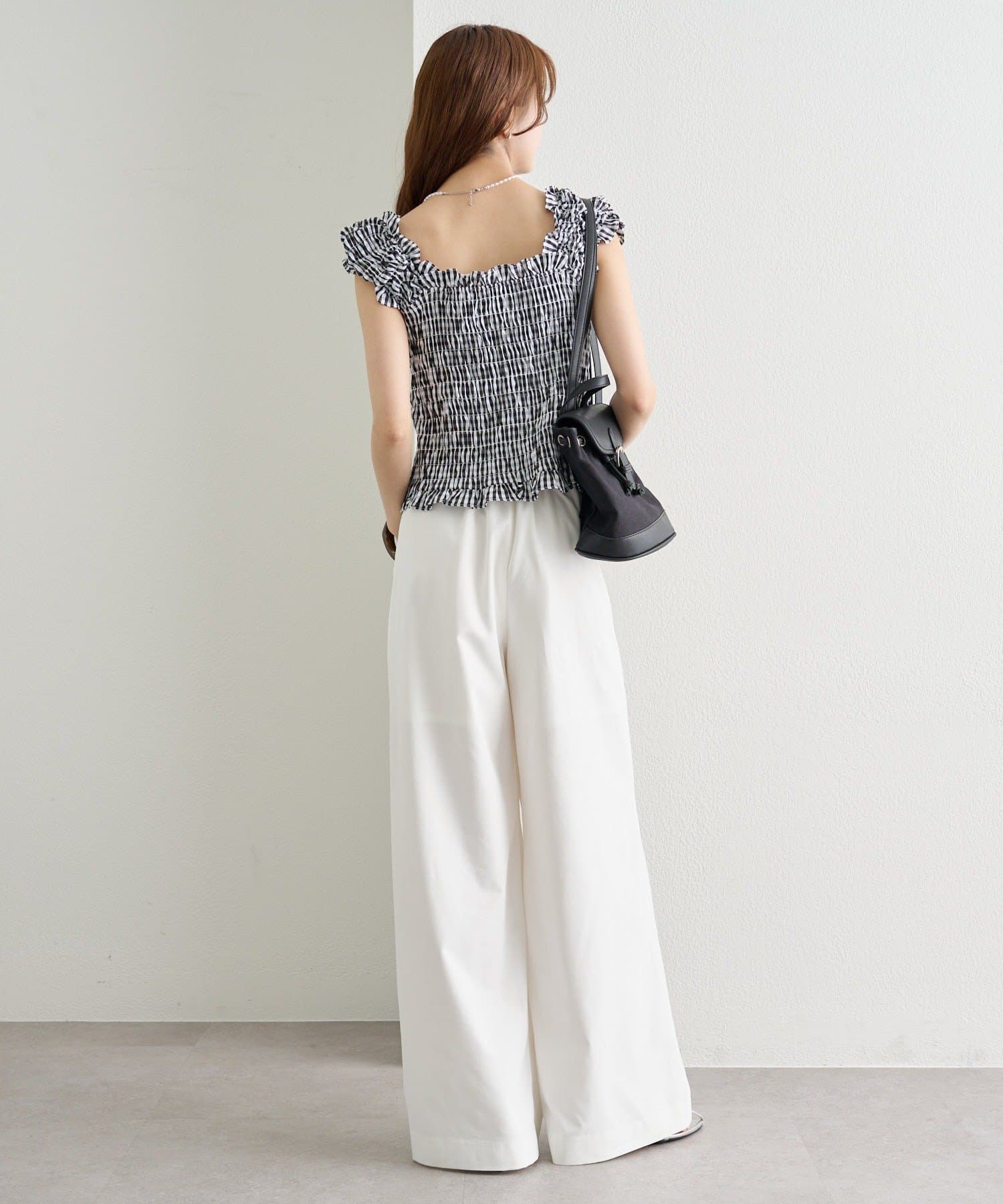 ・コンパクトなトップスを合わせてウエストデザインを引き立てるのがおすすめです。