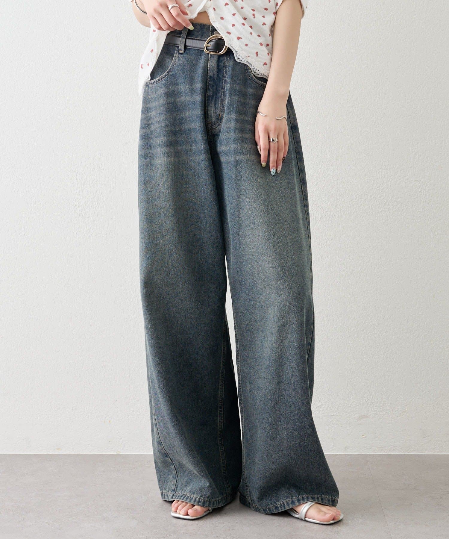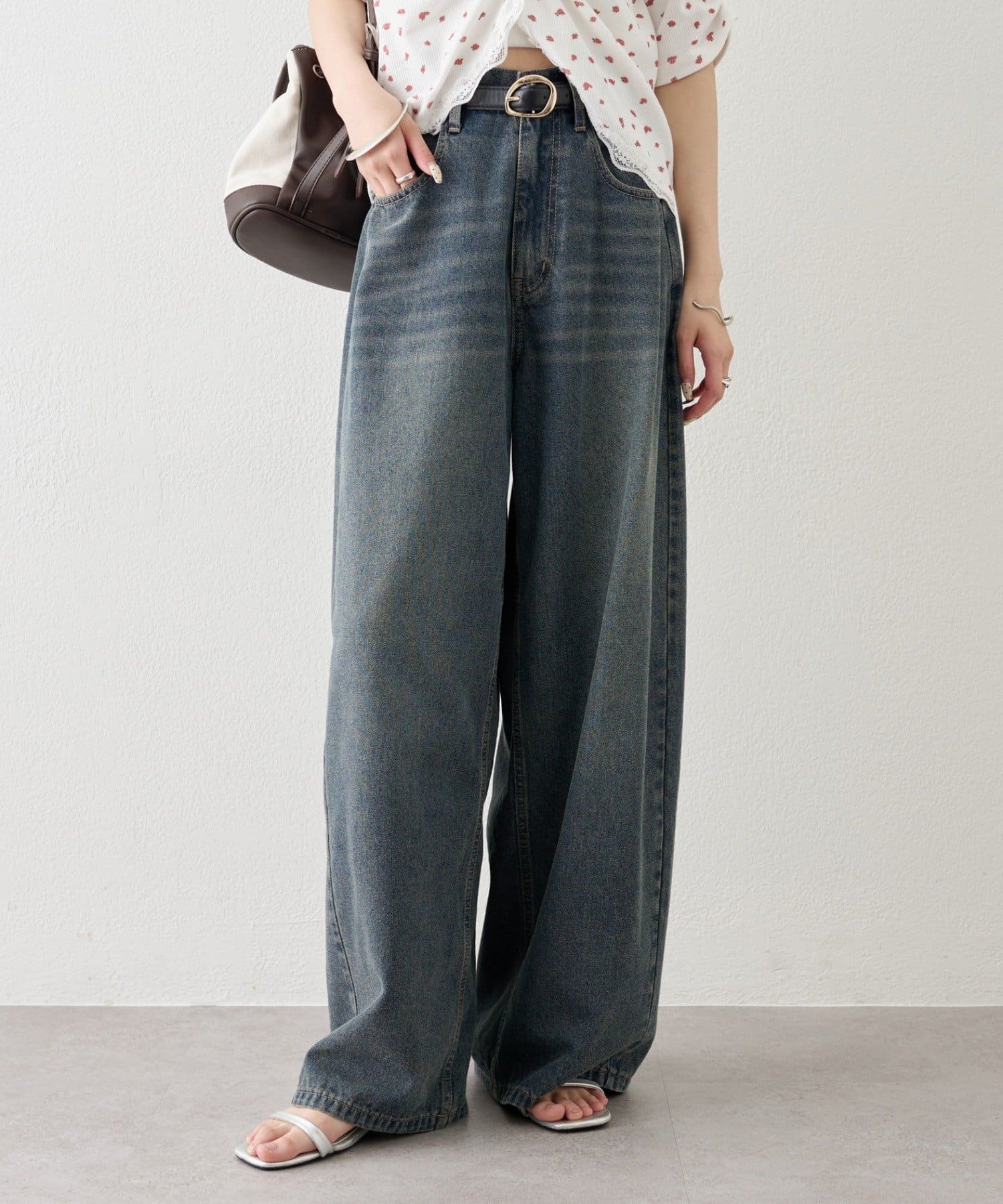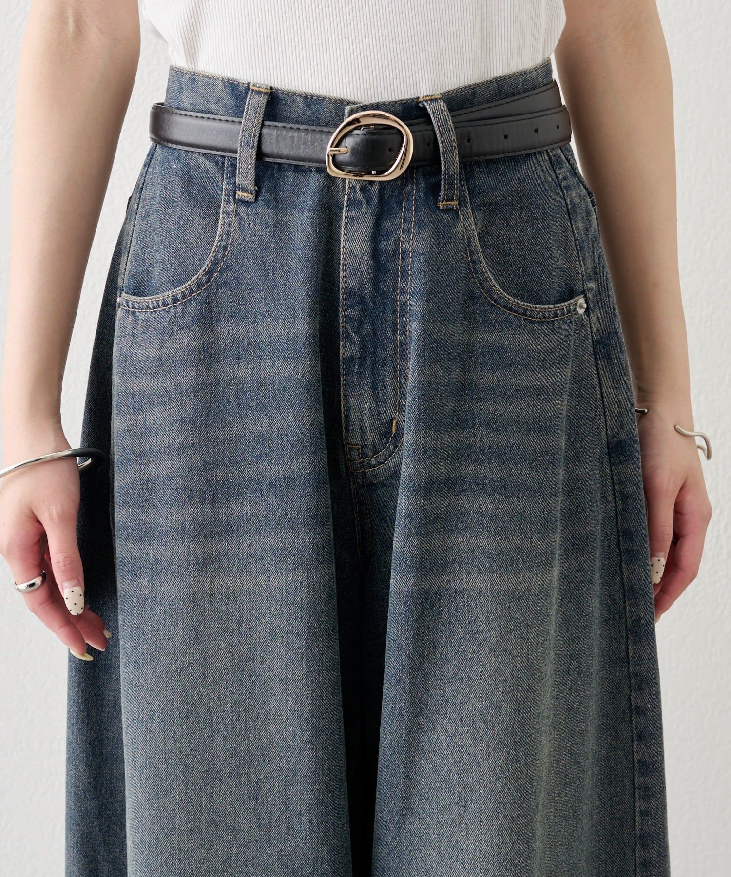 カーブシルエットでスタイルアップが叶うベルト付きワイドデニム
