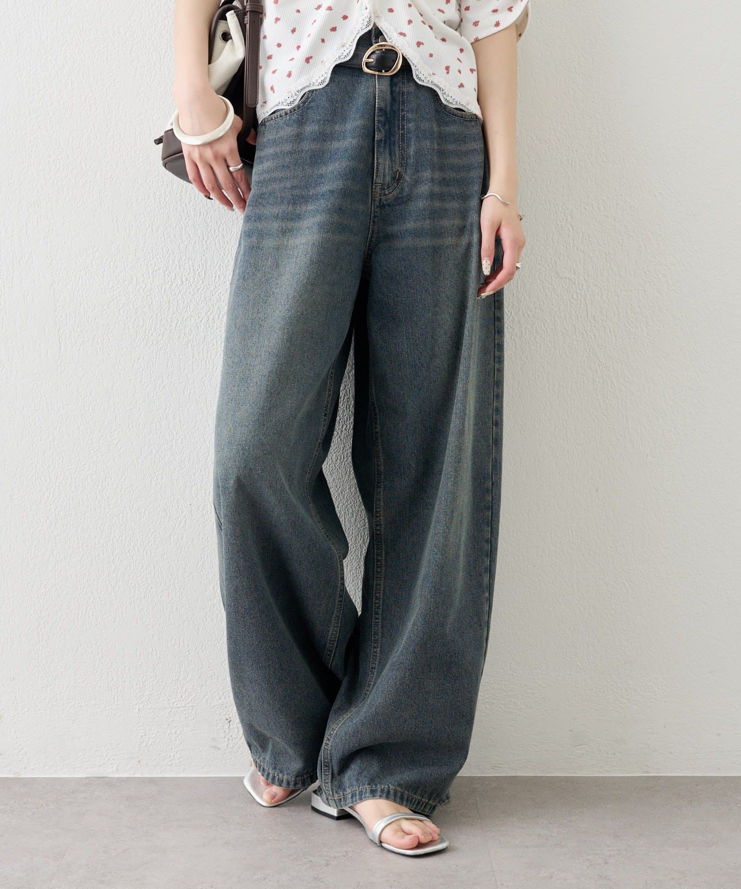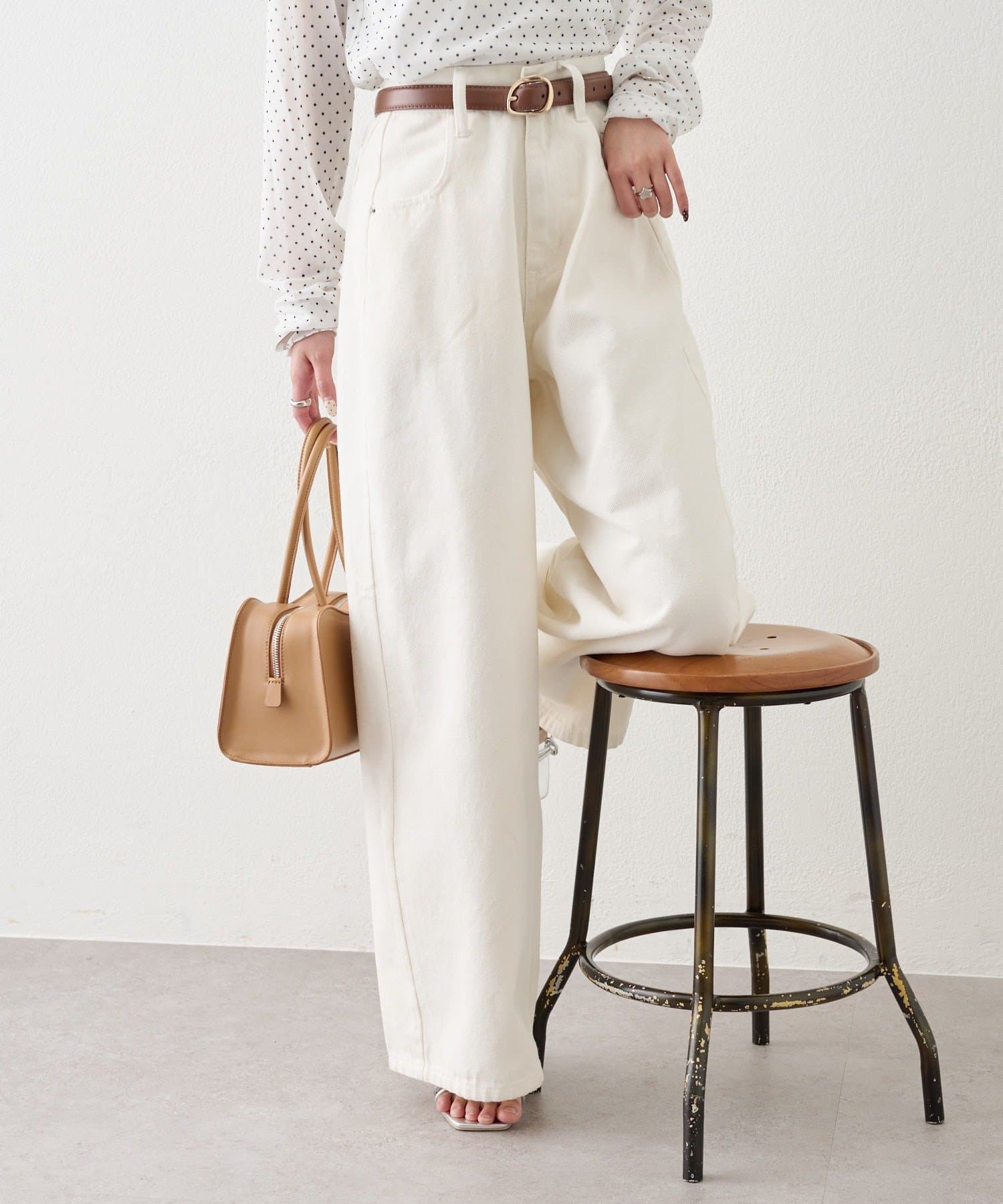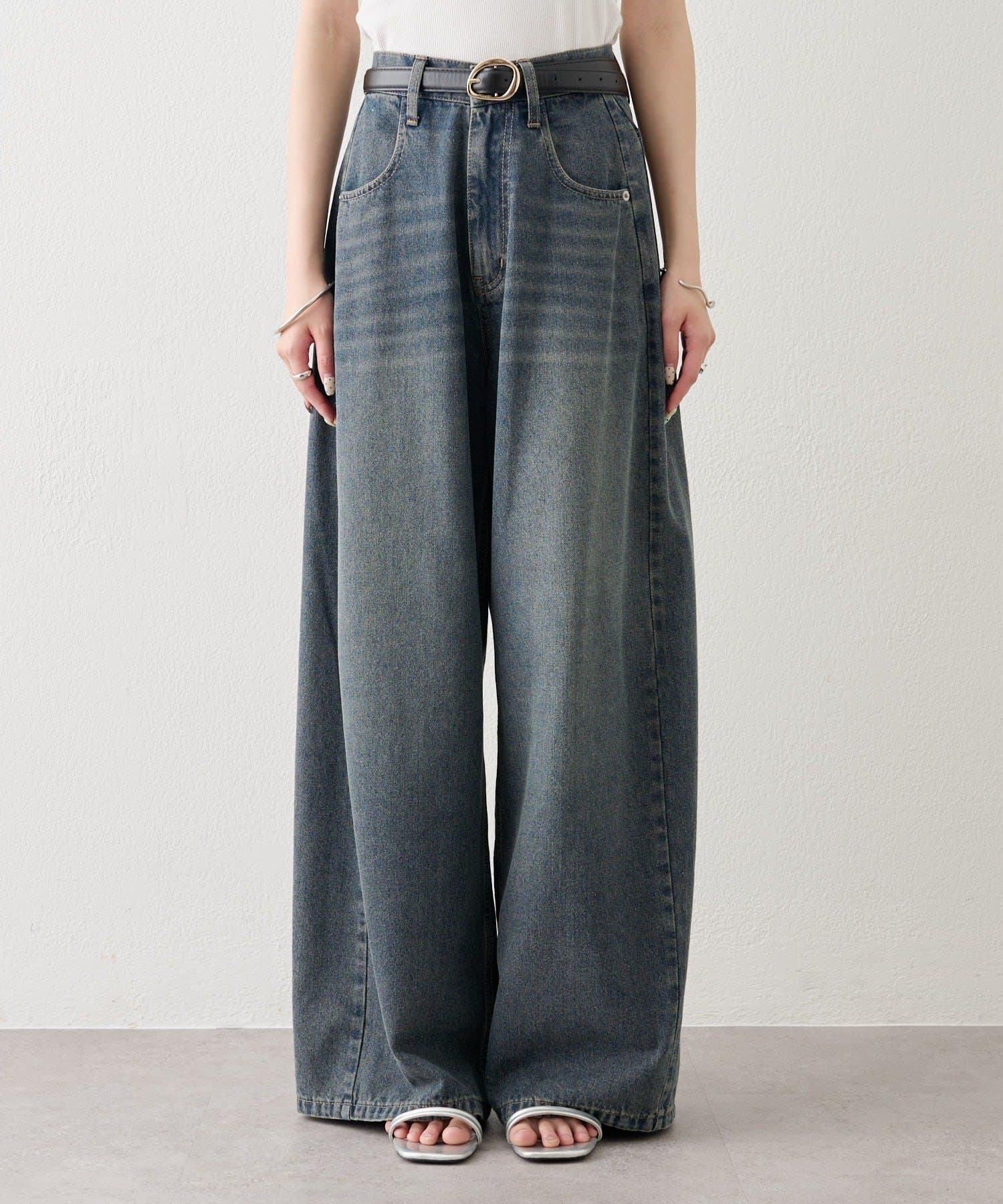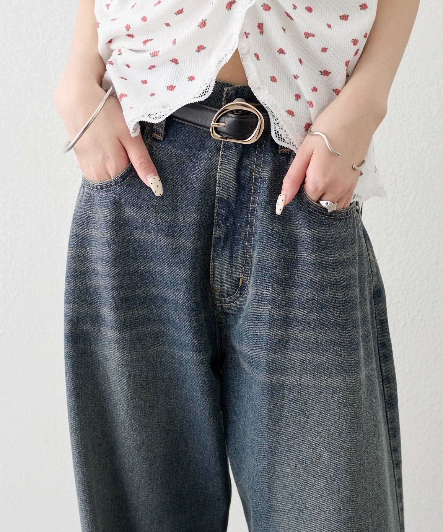 カーブシルエットでスタイルアップが叶うベルト付きワイドデニム