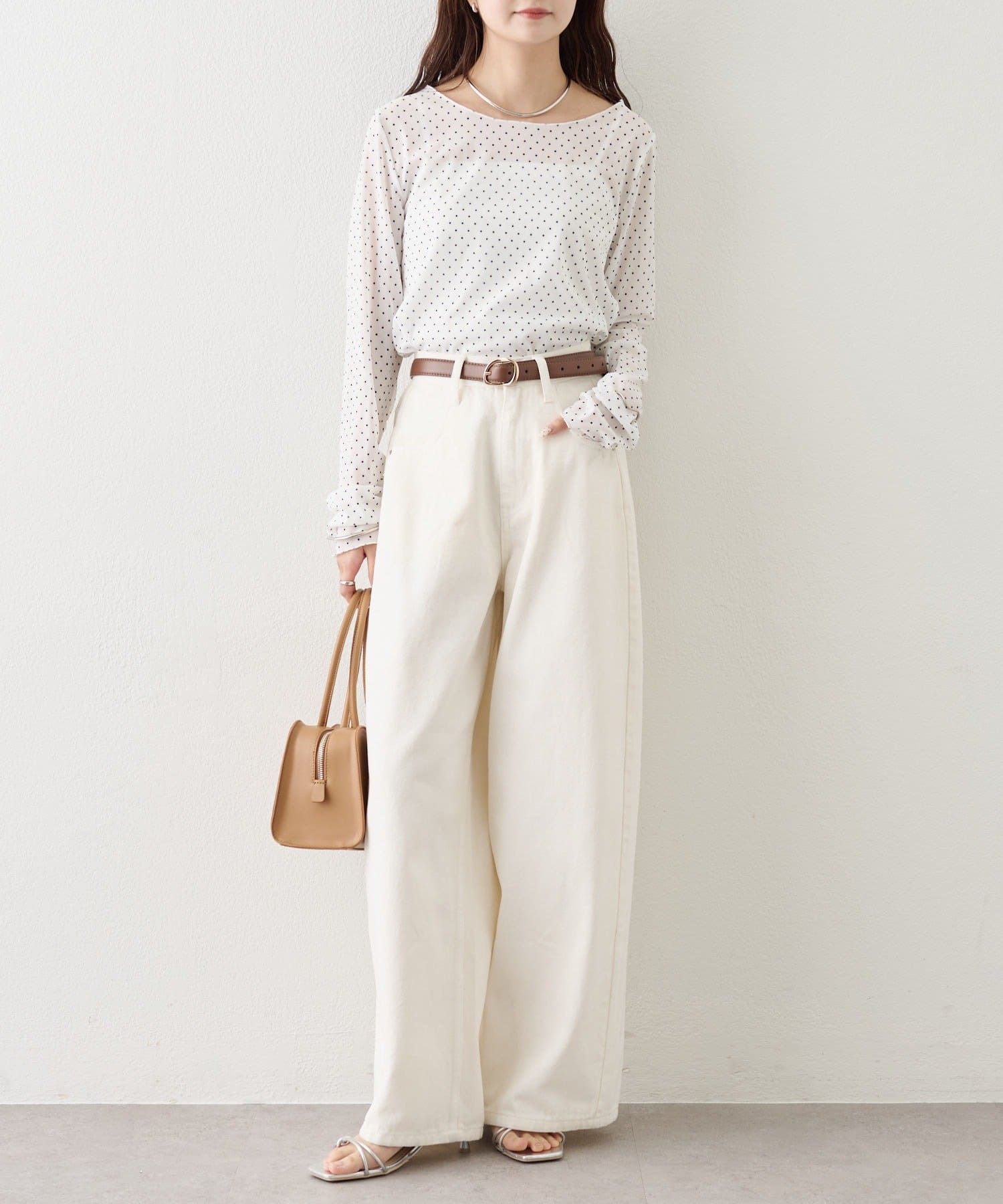 ・ワイドなシルエットで、体のラインを拾いにくく、リラックス感のある履き心地。