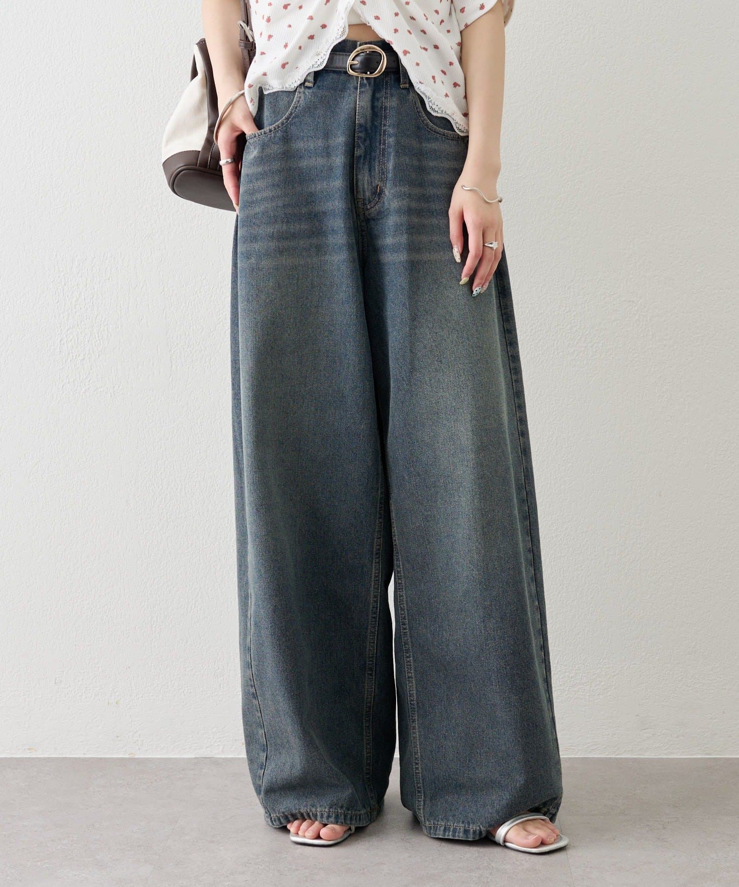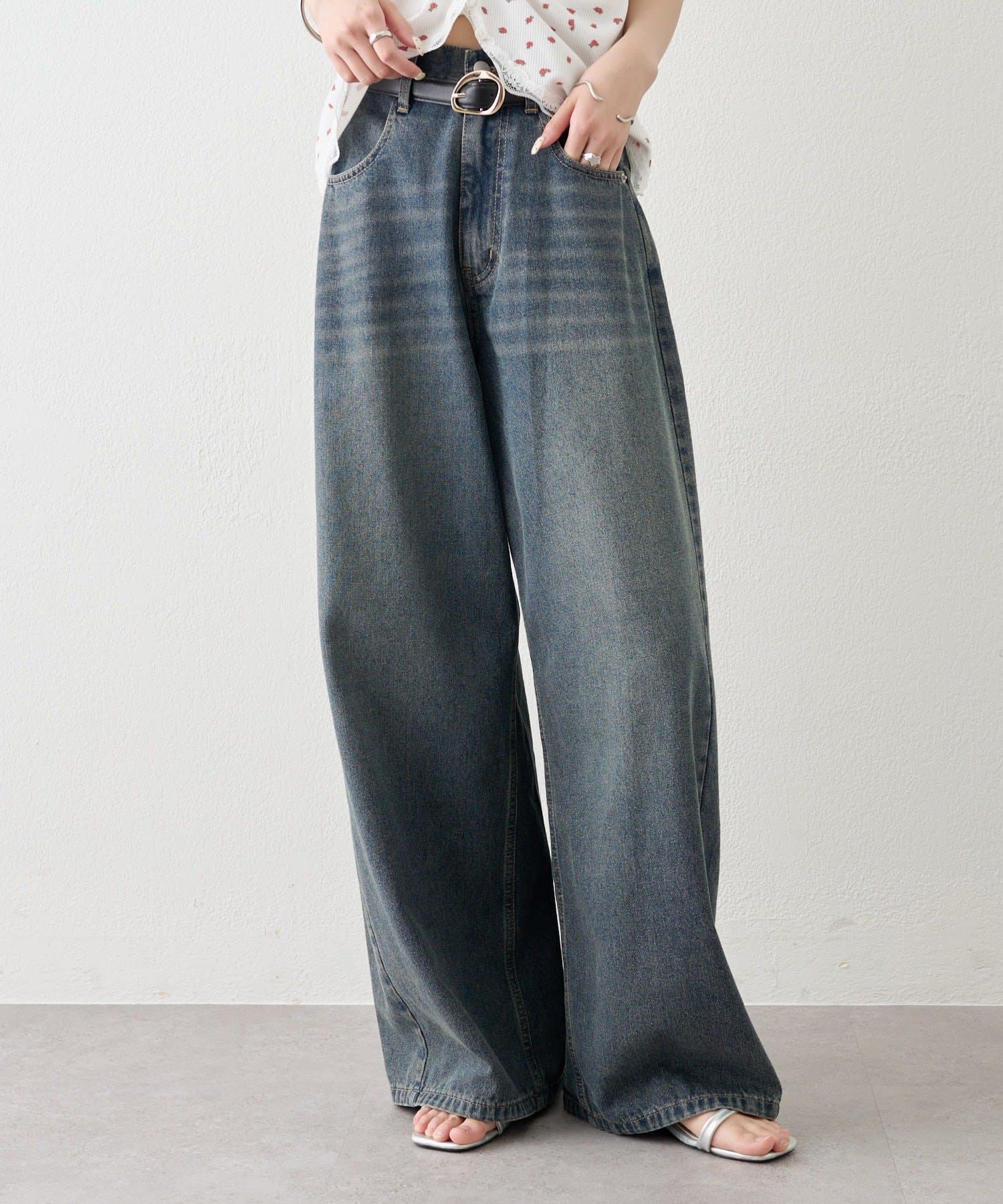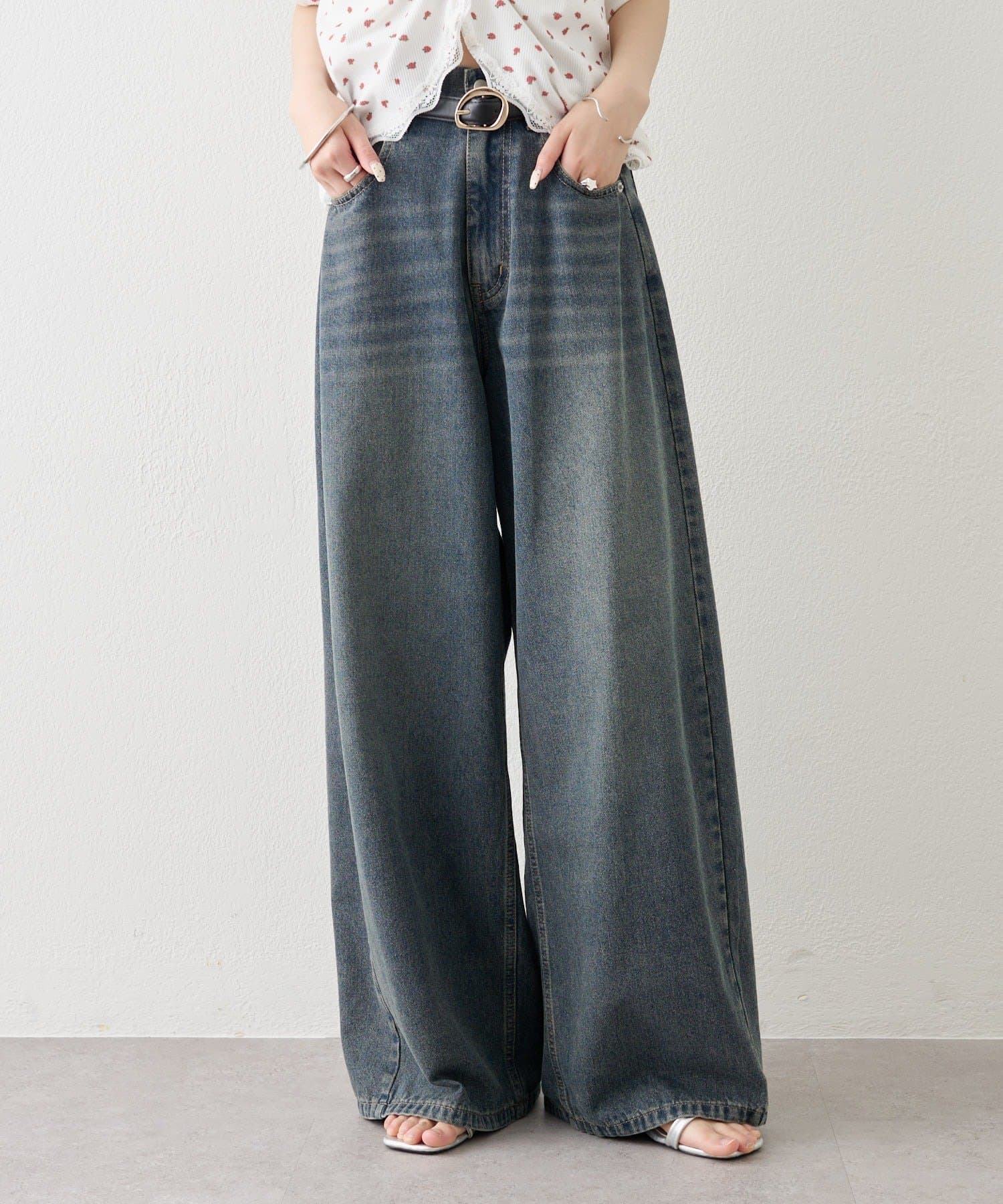 • mystic(ミスティック) ベルト付きカーブワイドデニム