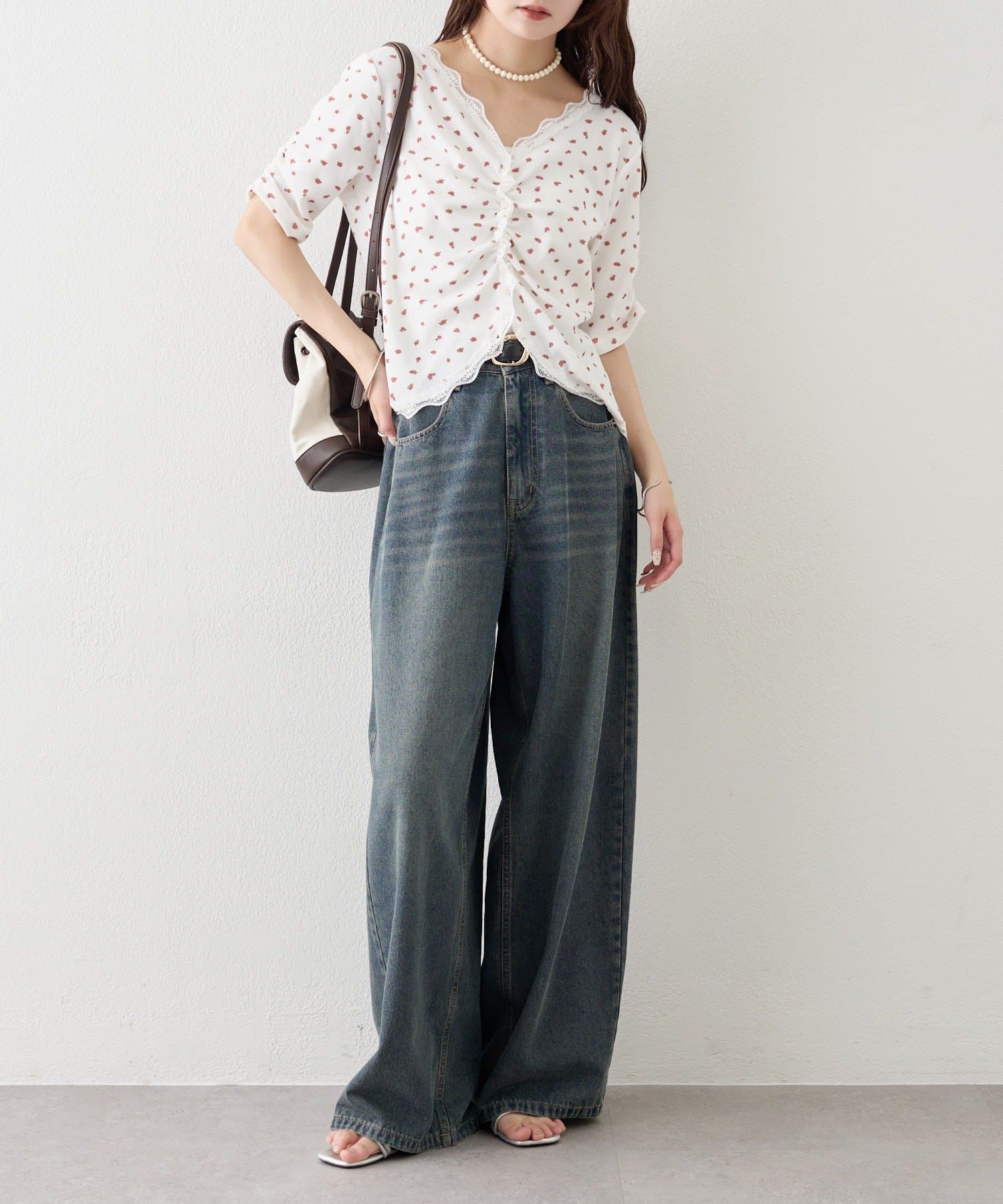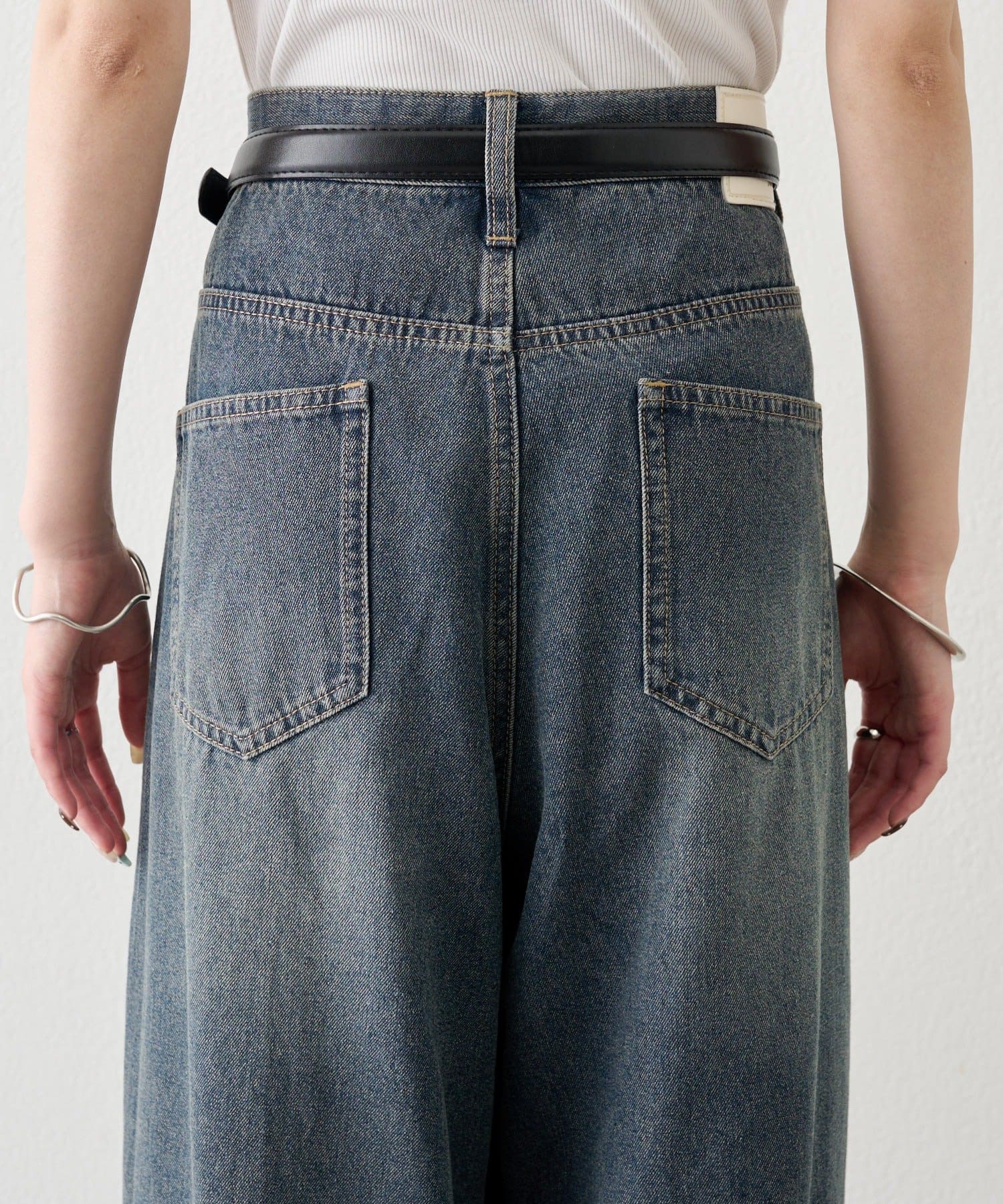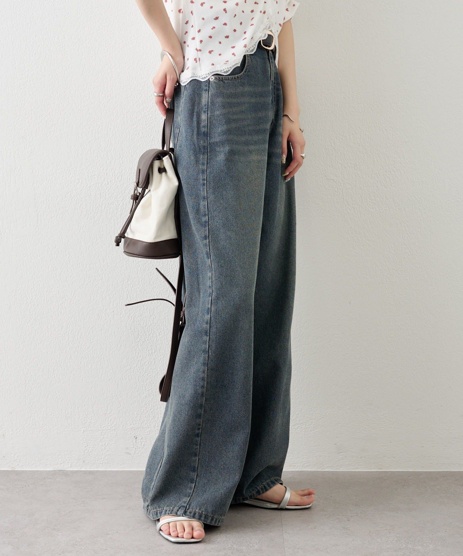 • mystic(ミスティック) ベルト付きカーブワイドデニム