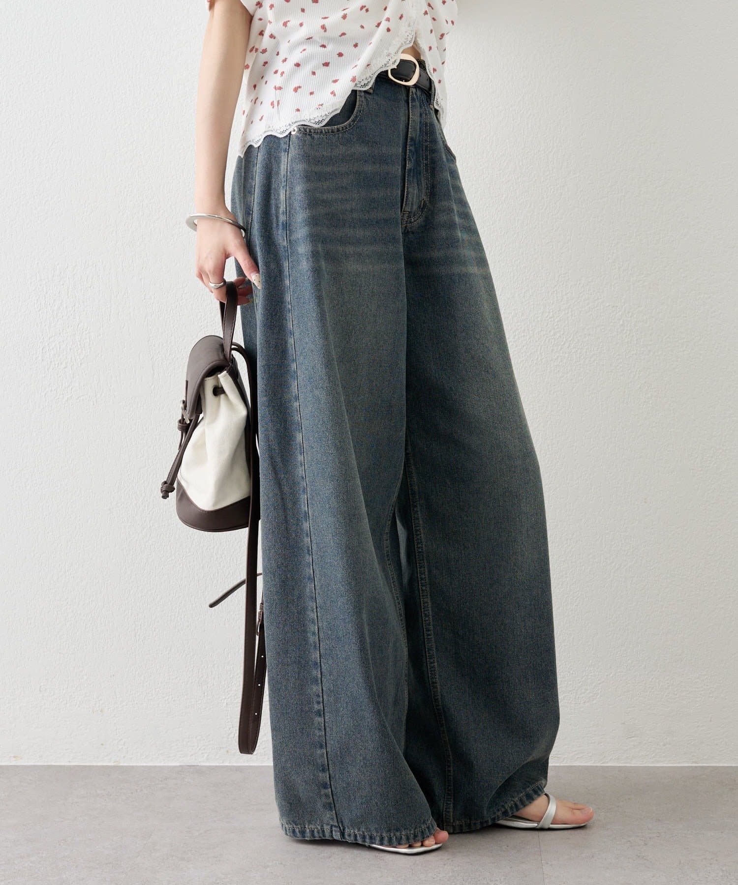 TOP > mystic > レディース > パンツ > デニムパンツ > ベルト付きカーブワイドデニム
