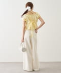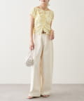 ・コンパクトなトップスを合わせて、シルエットを引き立てた着こなしに。