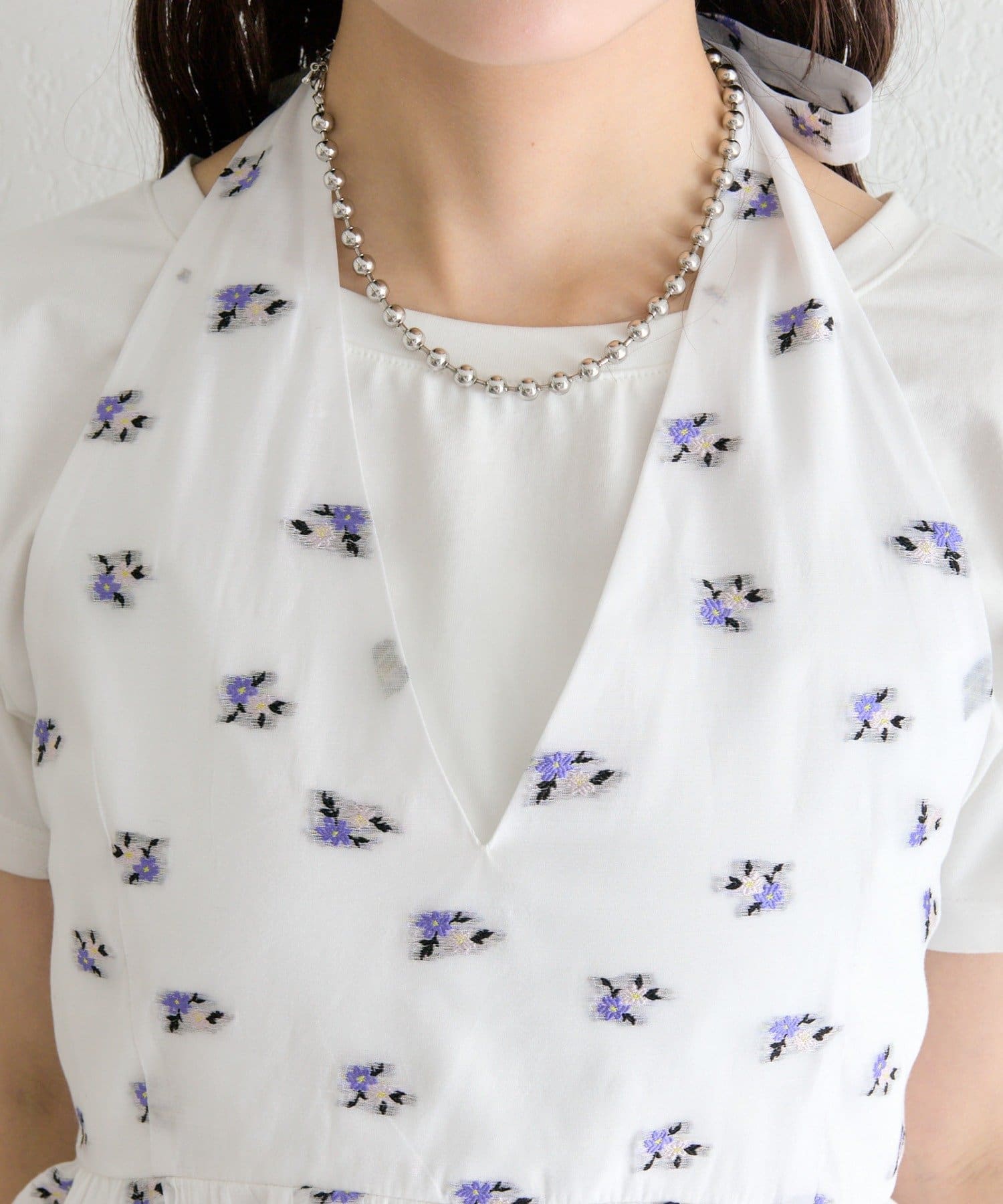 ・フラワー柄が散りばめられた、女性らしいホルターデザイン。