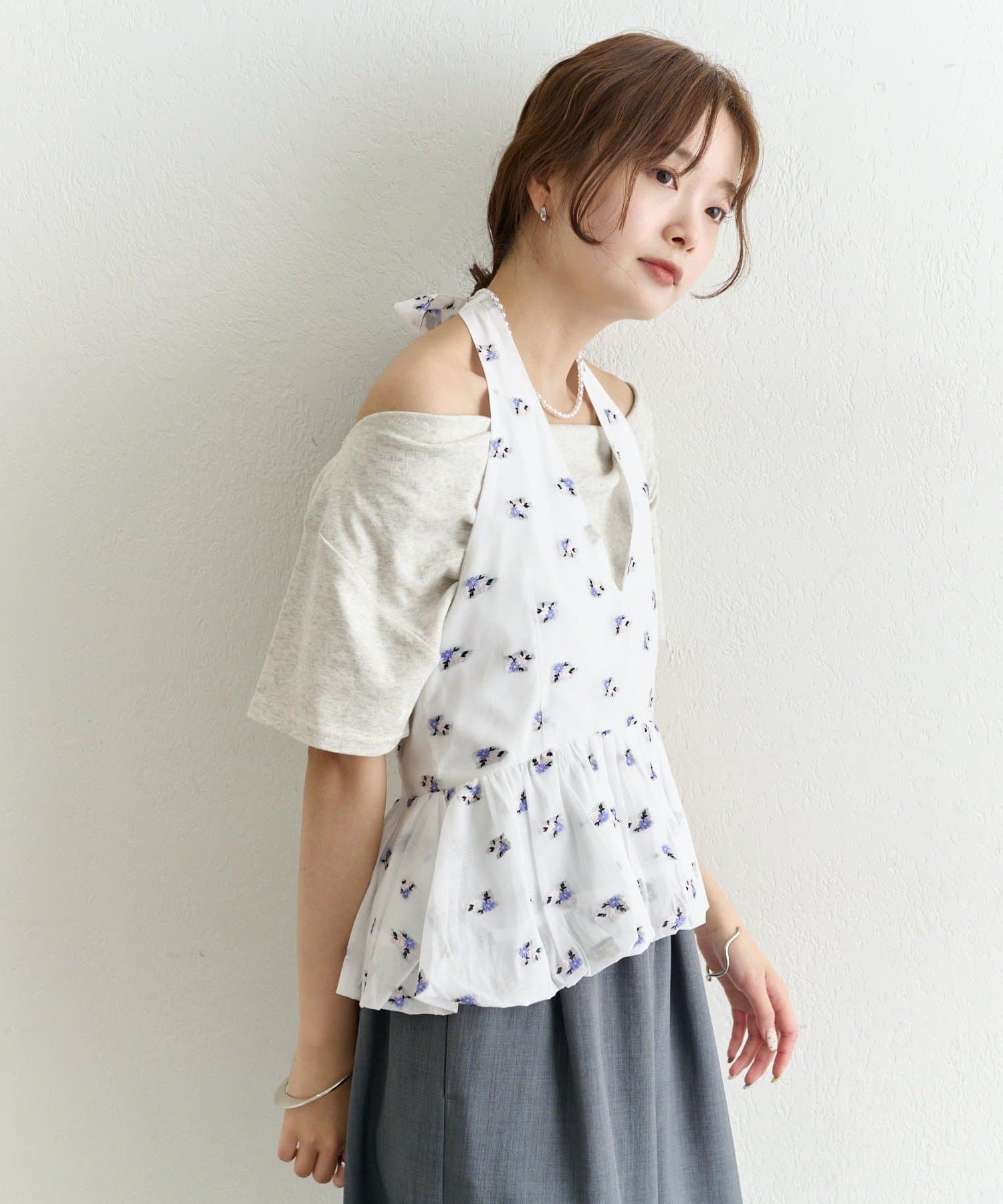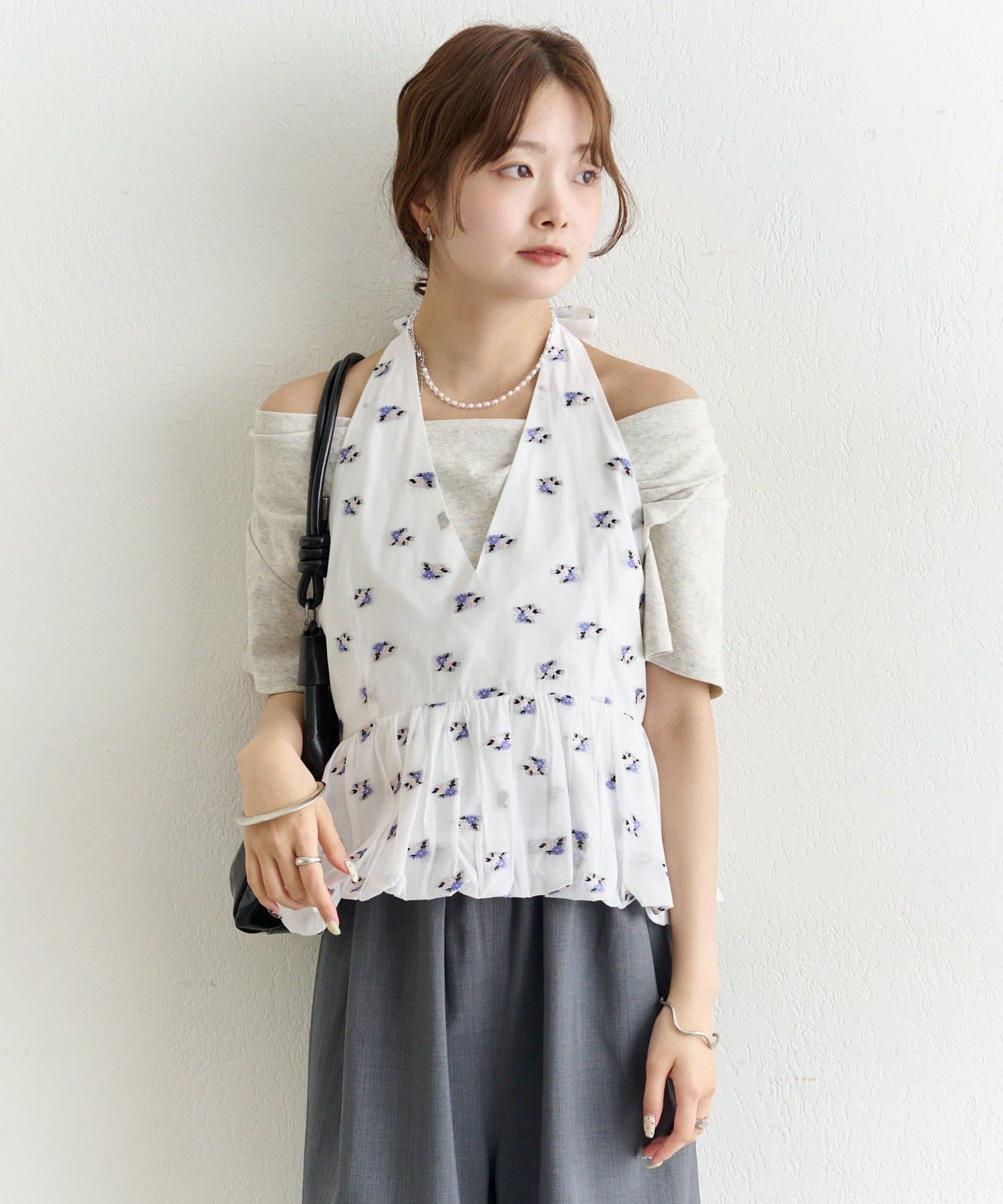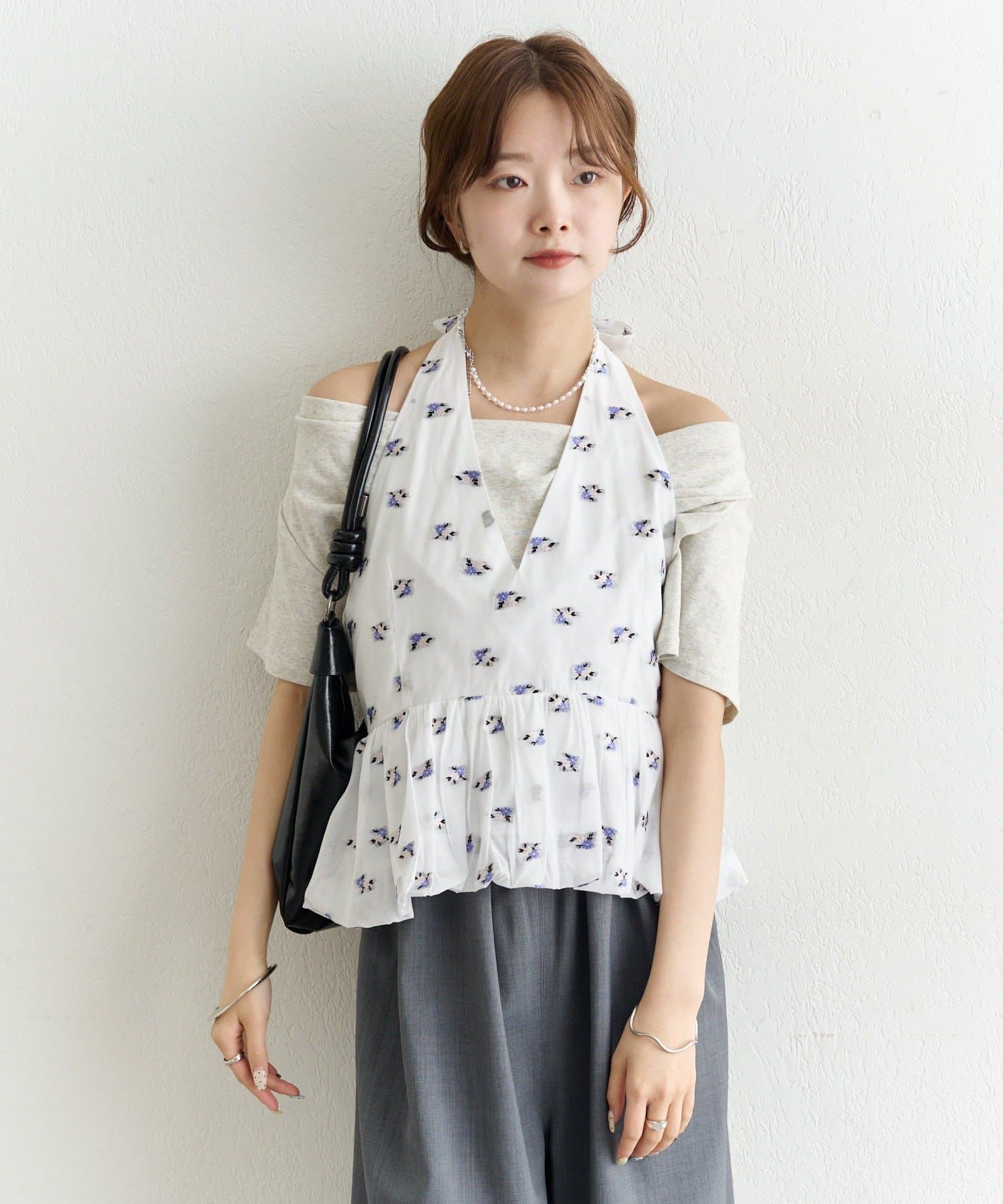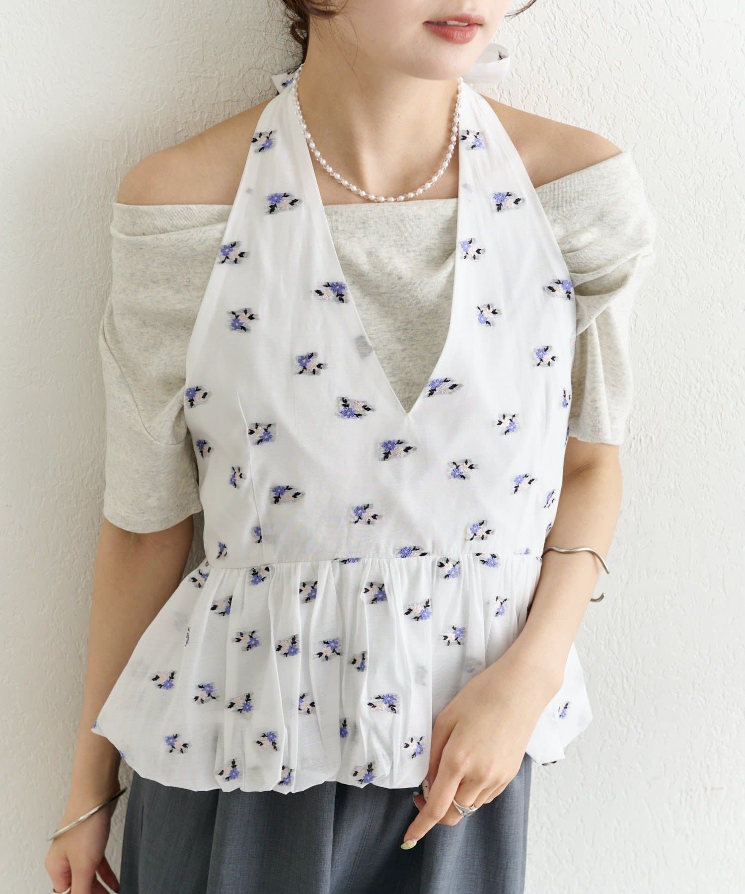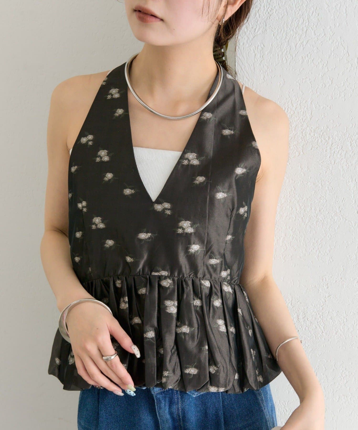 フラワーデザインが女性らしく華やかなホルターブラウス