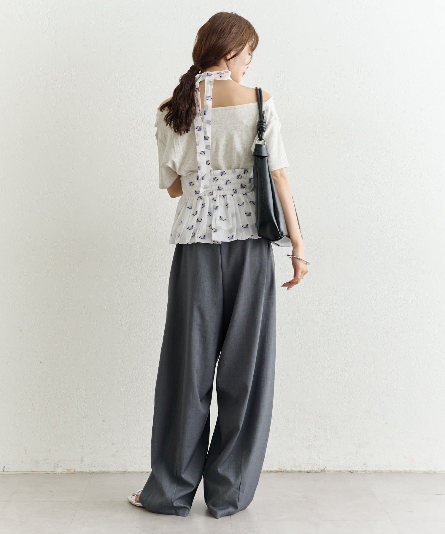 ・ウエスト切り替えから広がるペプラムシルエットが、スタイルアップ効果も◎