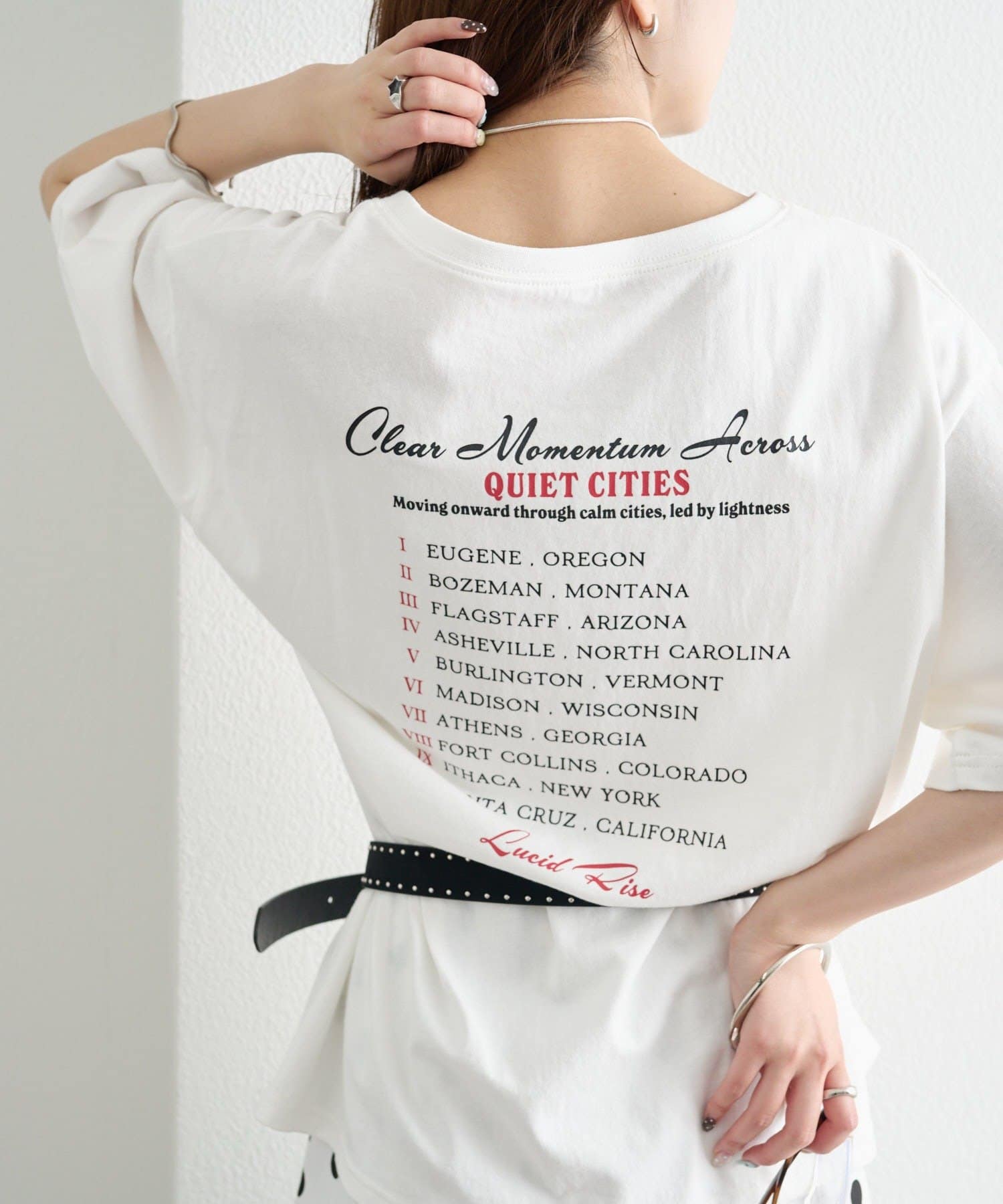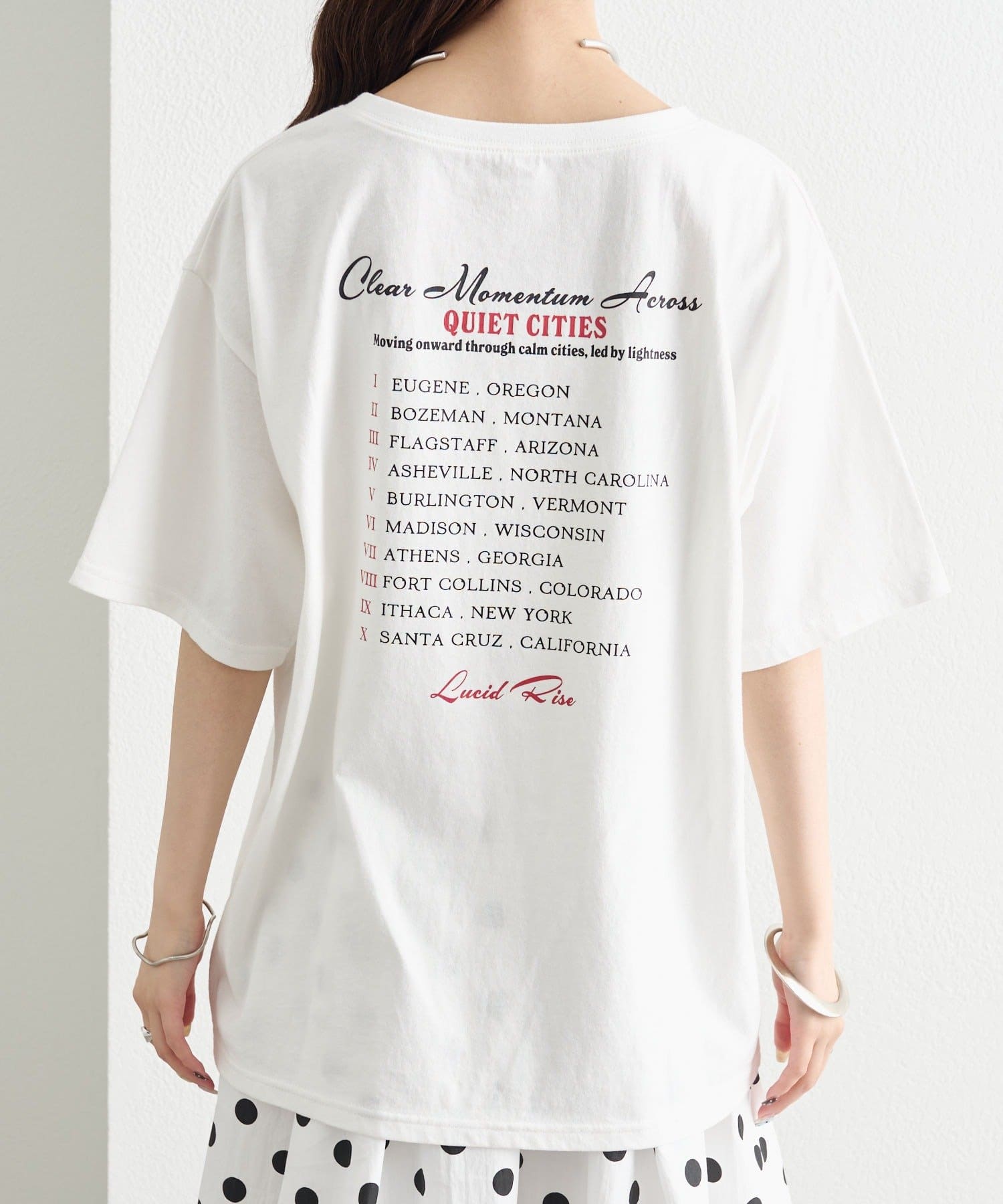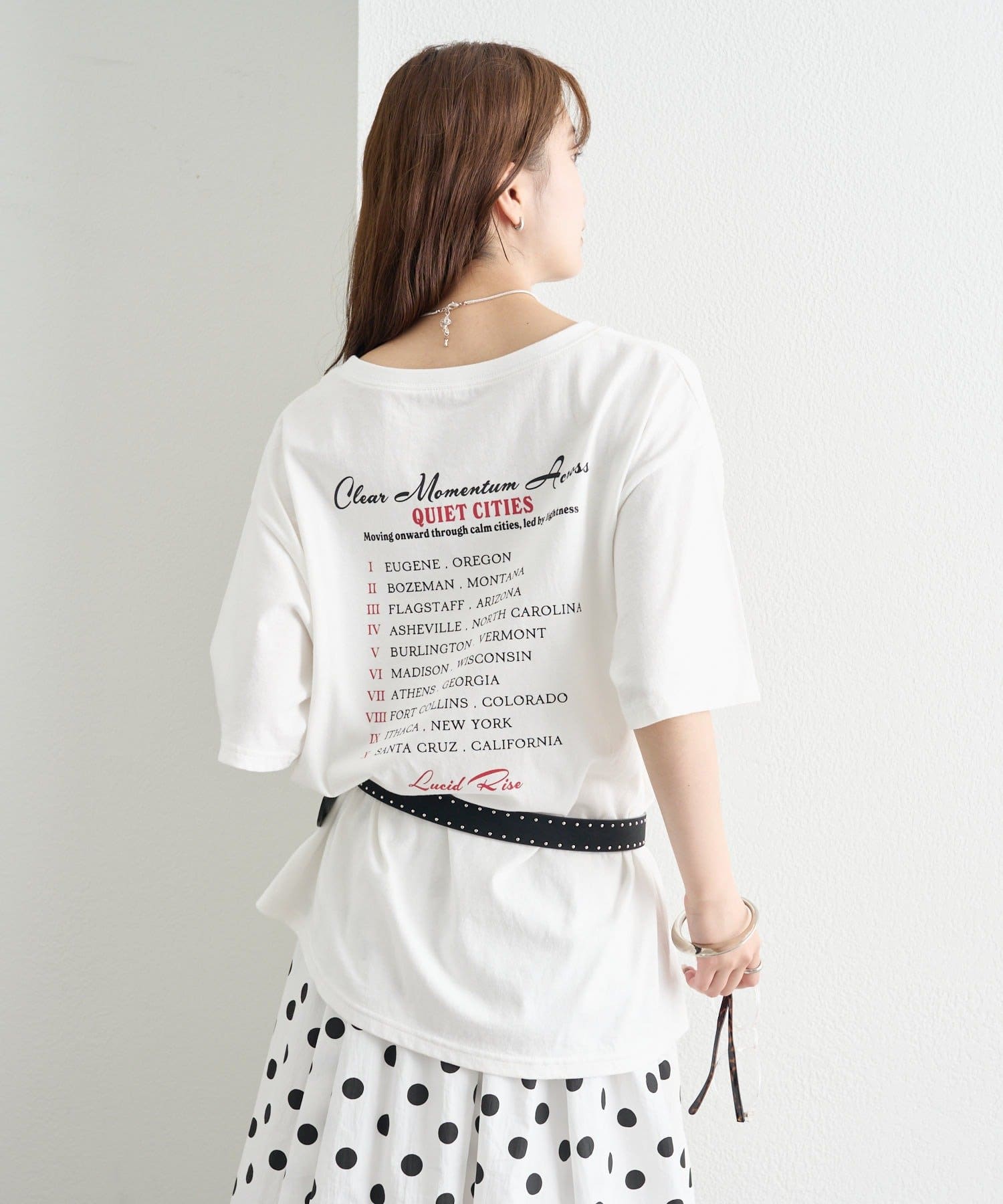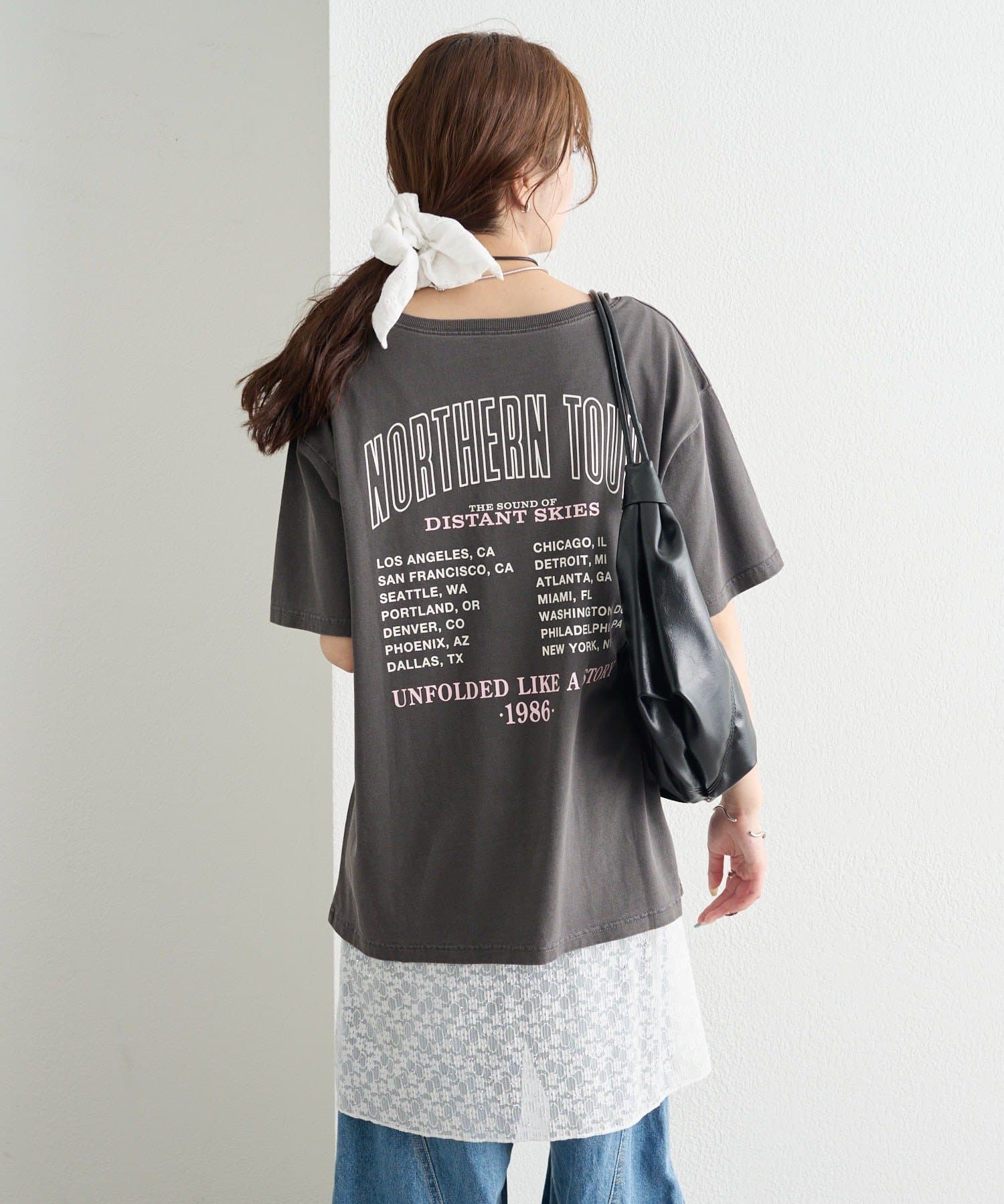 ・フロントのロック調プリントが、スタイリングの主役になる一枚。